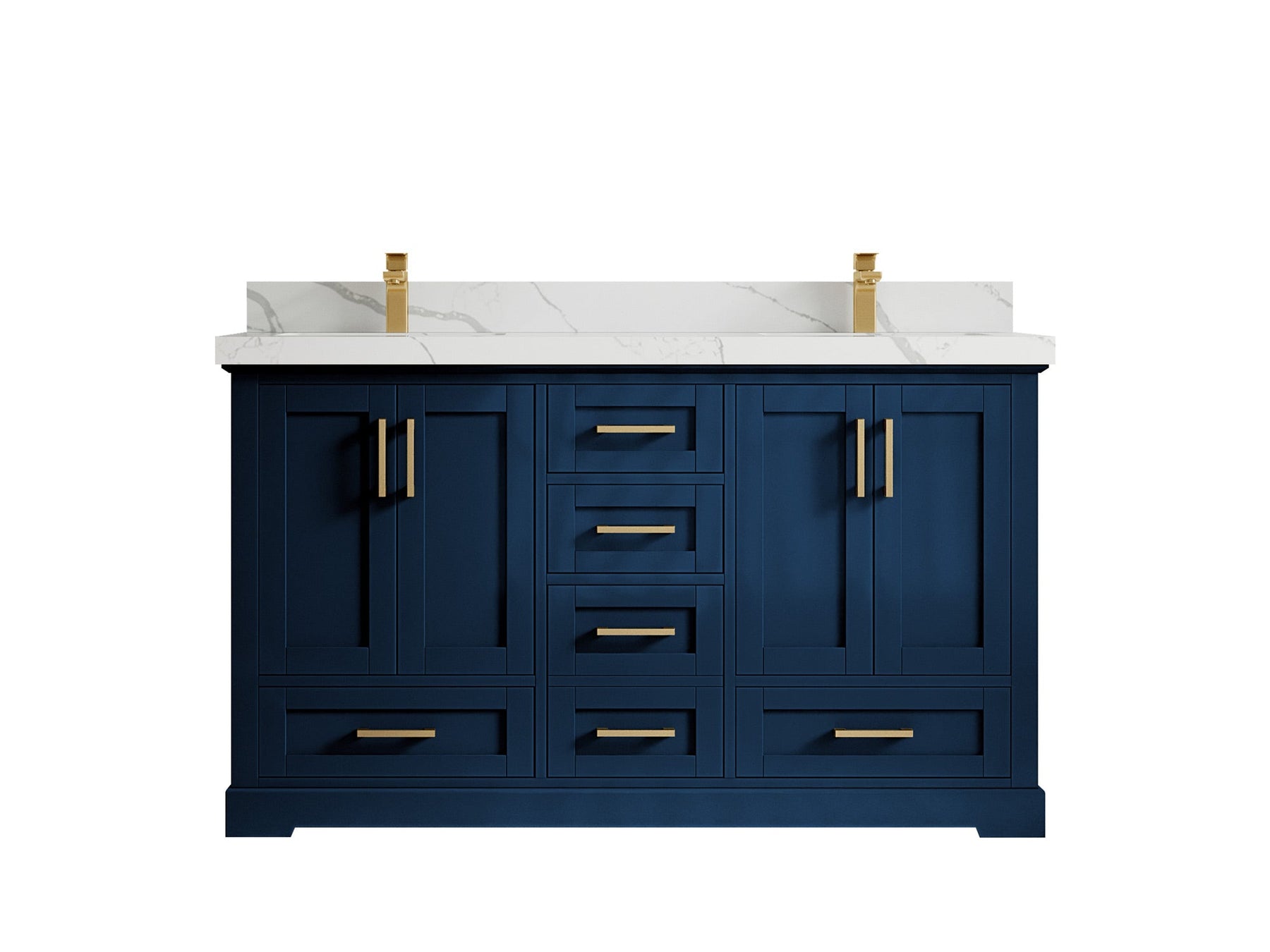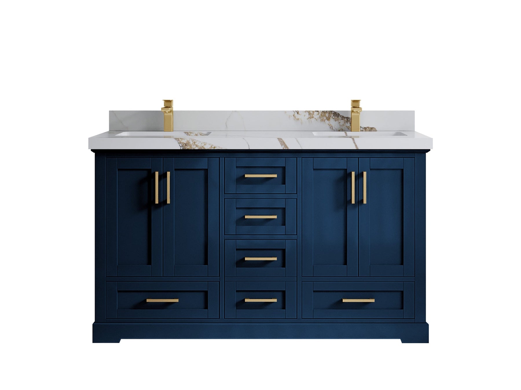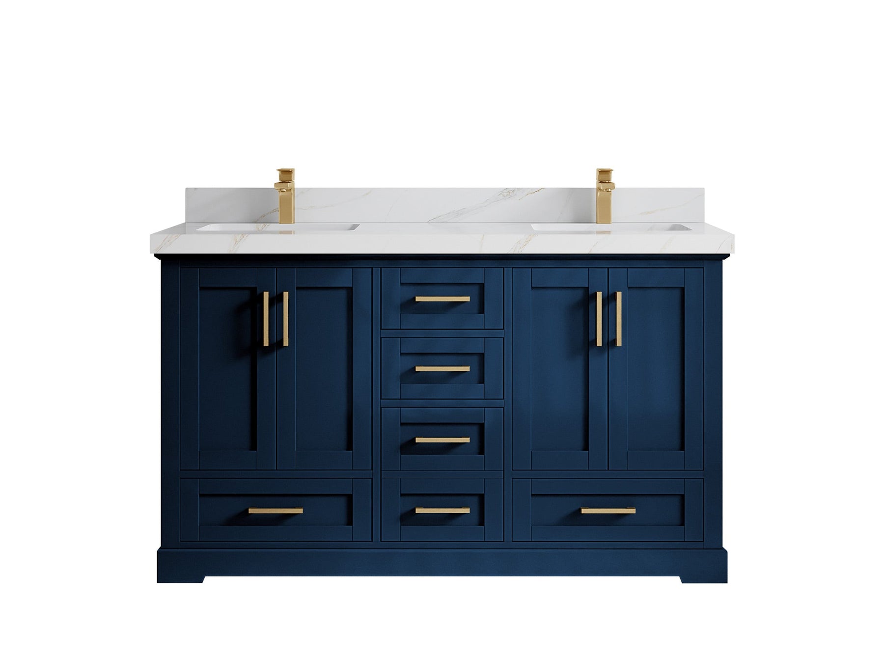 Boston 60 in. W x 22 in. D Double Sink Bathroom Vanity in Navy Blue with 2 in Calacatta Gold Quartz Countertop - Top View