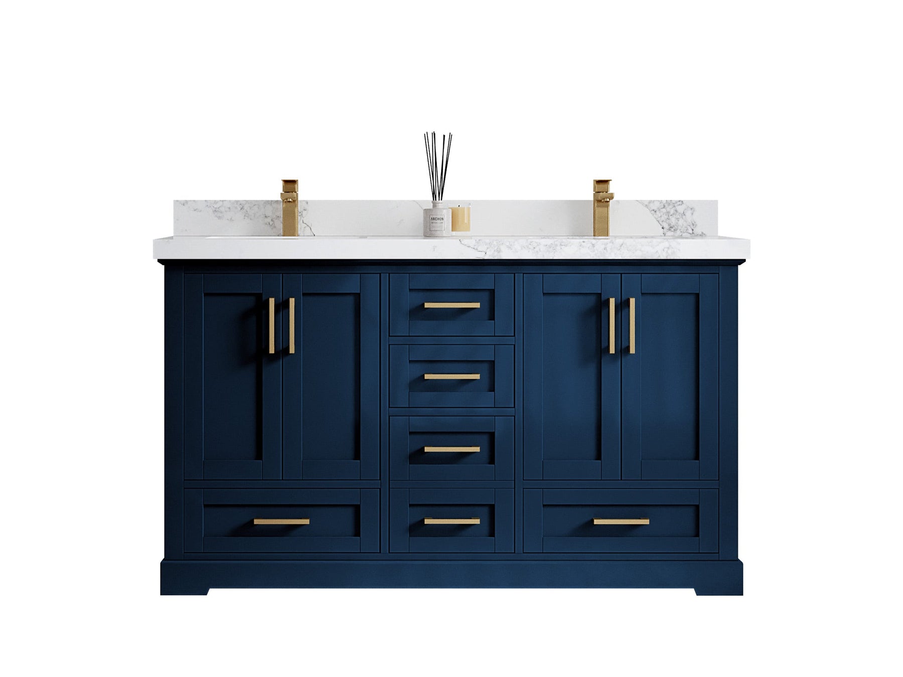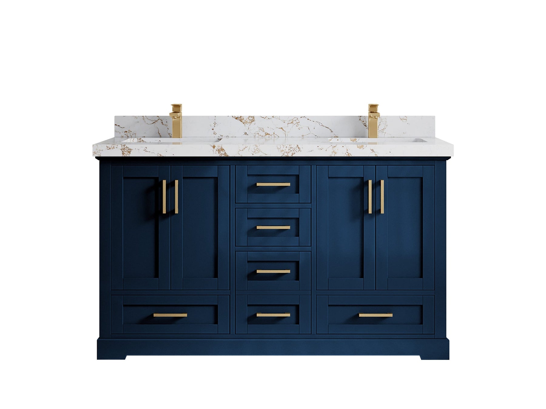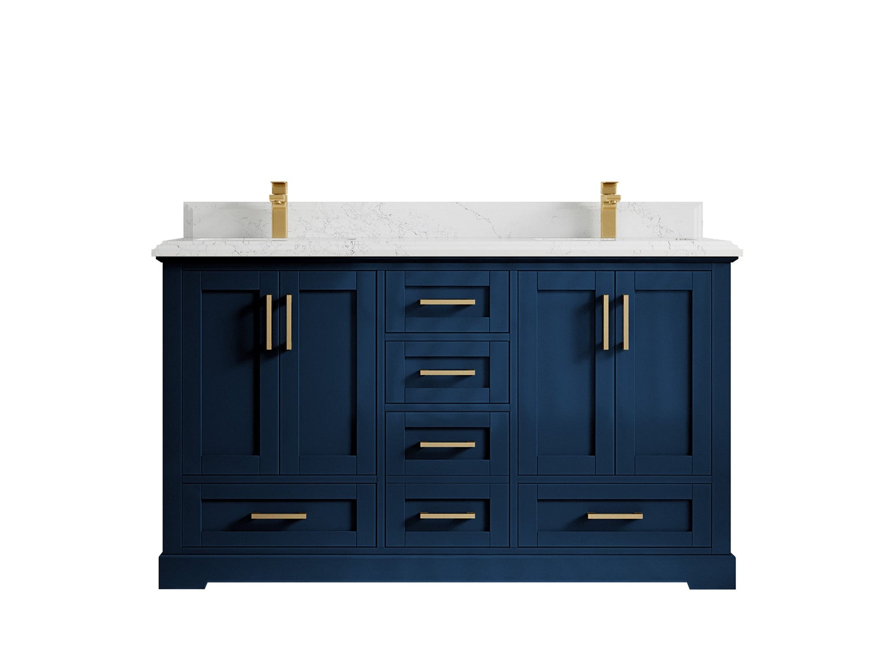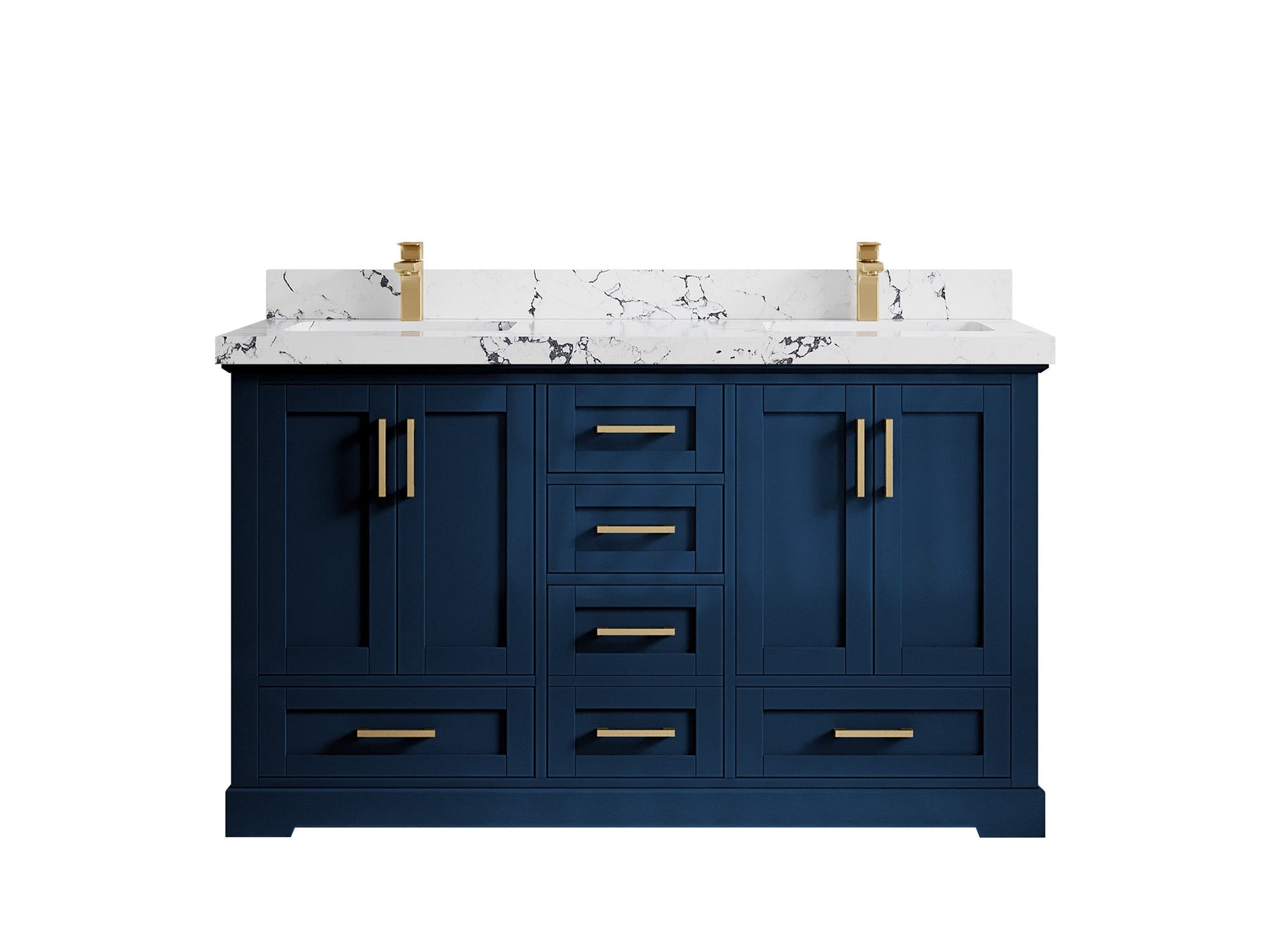 Boston 60 in. W x 22 in. D Double Sink Bathroom Vanity in Navy Blue with 2 in Calacatta Gold Quartz Countertop - Top View
