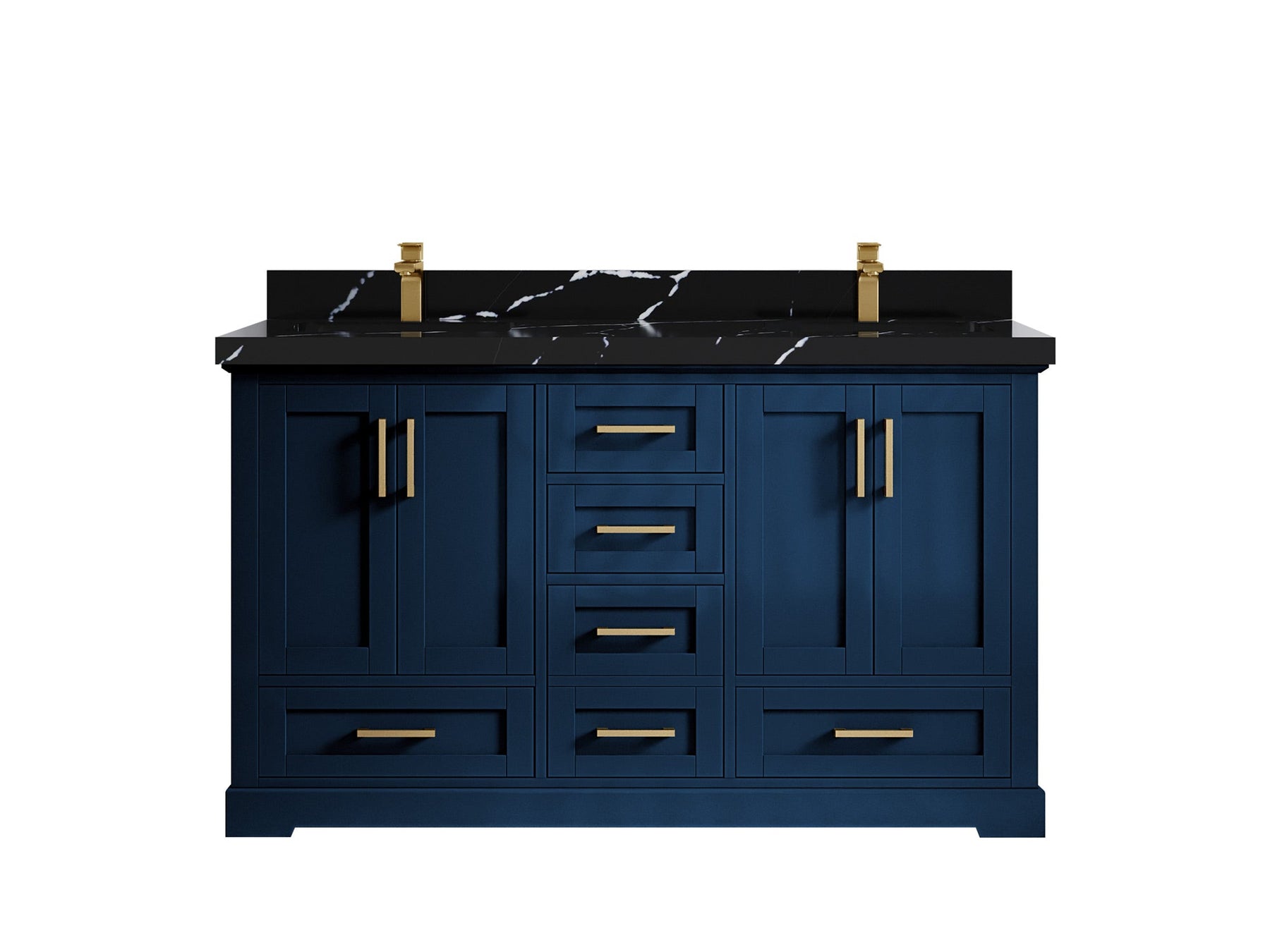 Boston 60 in. W x 22 in. D Double Sink Bathroom Vanity in Navy Blue with 2 in Calacatta Black Quartz Countertop - Top View