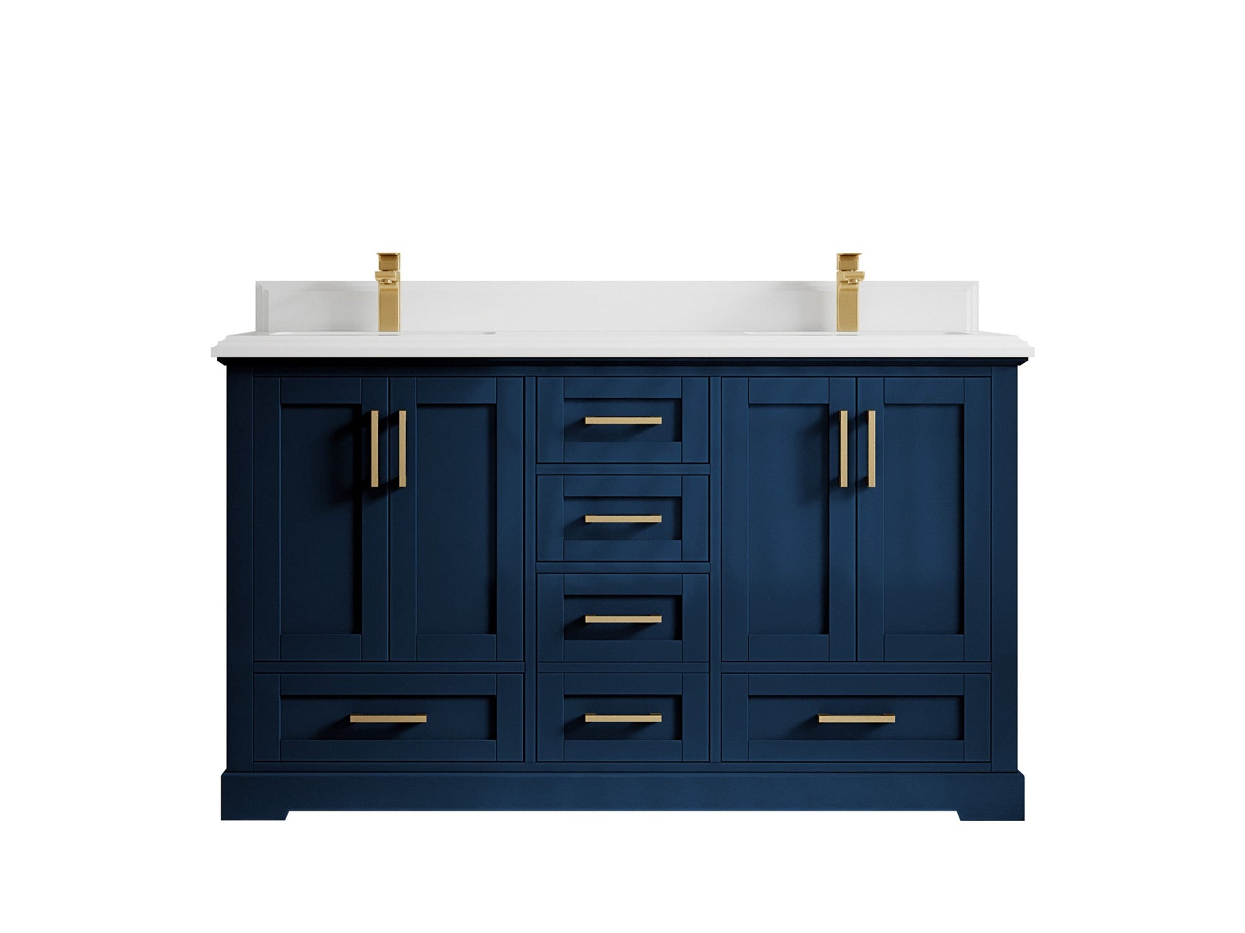 Boston 60 in. W x 22 in. D Double Sink Bathroom Vanity in Navy Blue with 2 in White Quartz Countertop - Top View