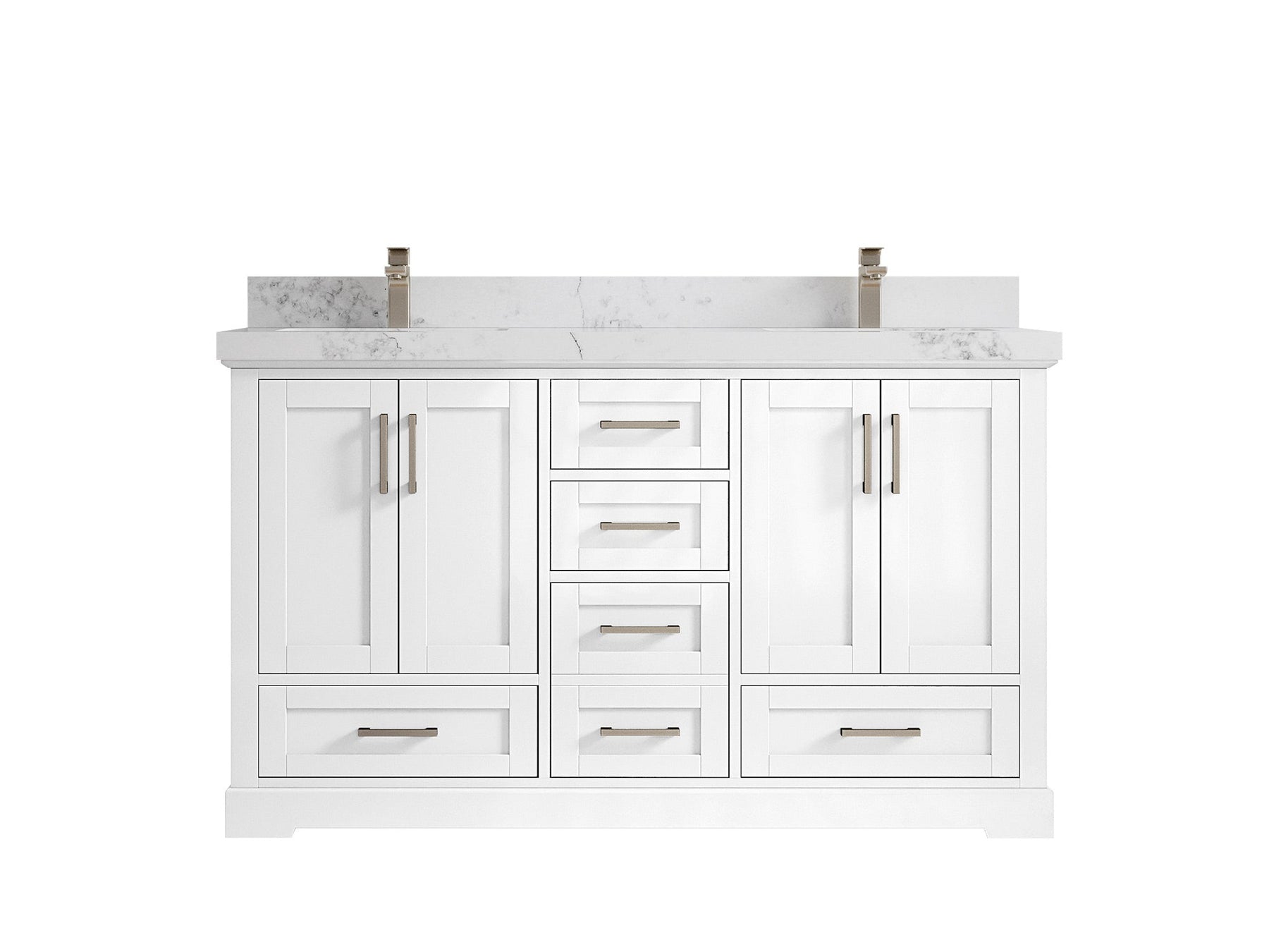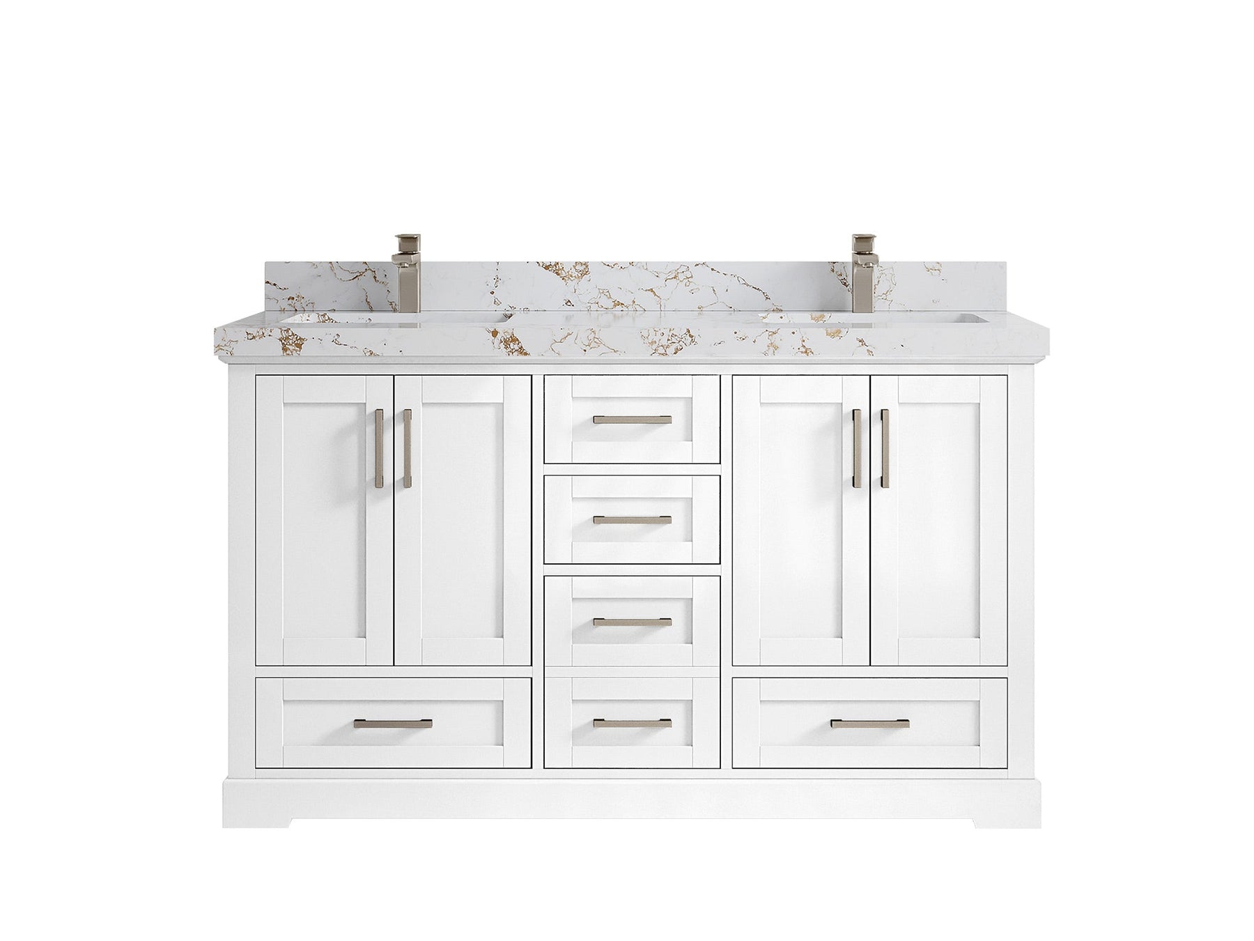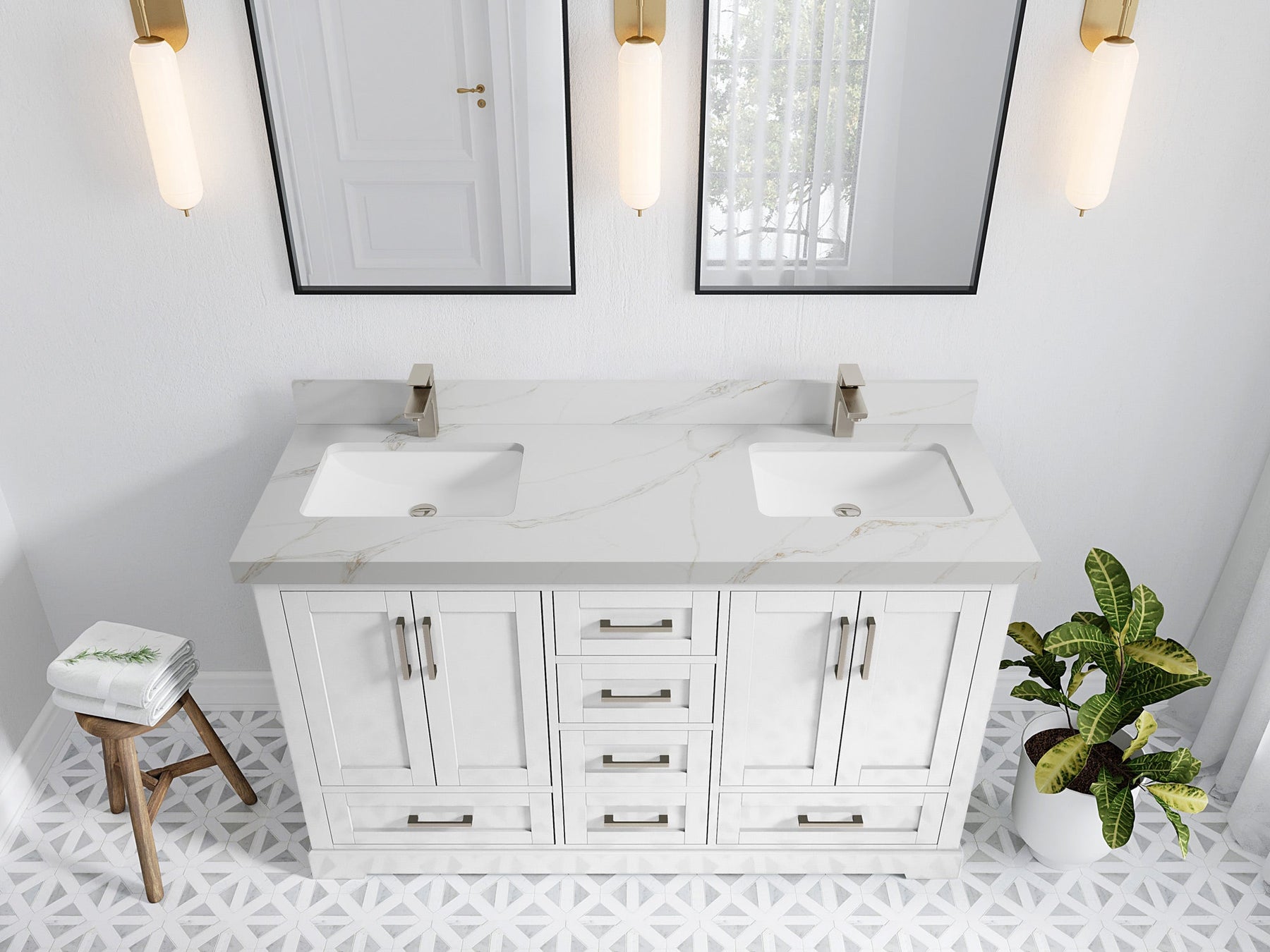 Vanity Countertops options: For Calacatta Laza Quartz, Empira White Quartz, Pure White Quartz, Palissandro Quartz we have 2 options Straight-Mitered Edge and Double Cove Edge; For Calacatta Nuvo Quartz, Carrara Marble, Carrara Quartz, Piatra Gray Quartz, Pearl Light Gray Quartz, Calacatta Black Quartz, Calacatta Gold Quartz, Calacatta Sienna Quartz, Calacatta Poanazzo Quartz, Venatino Quartz, Viola Brown Quartz, Viola Gold Quartz, Viola Night Quartz, Viola Biagio Quartz, Berkshire Brass Quartz, Frosty Carrara Quartz, Onyx Quartz we have Straight - Mitered Edge option.