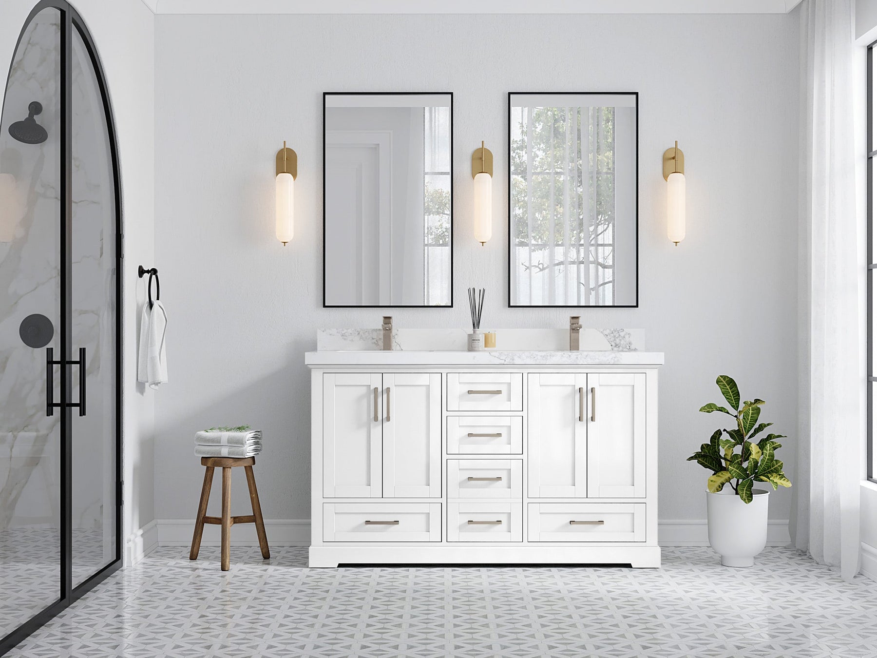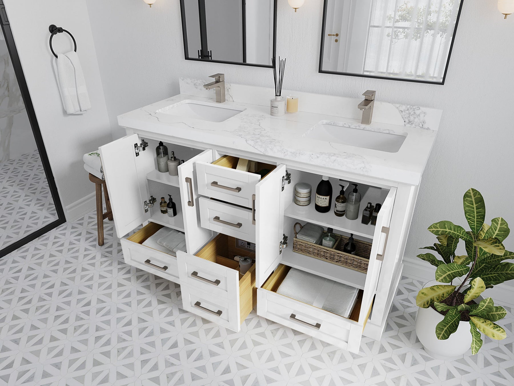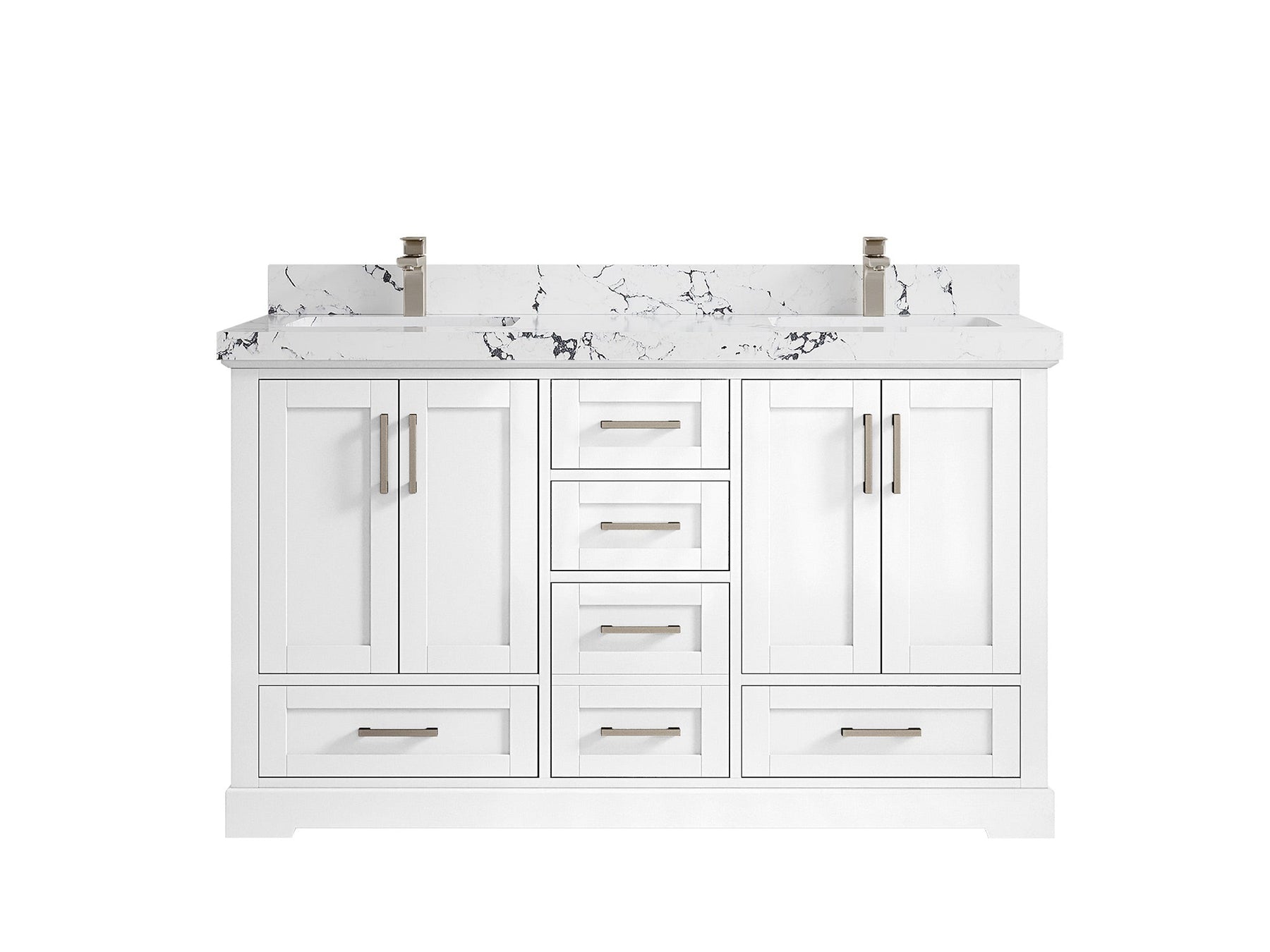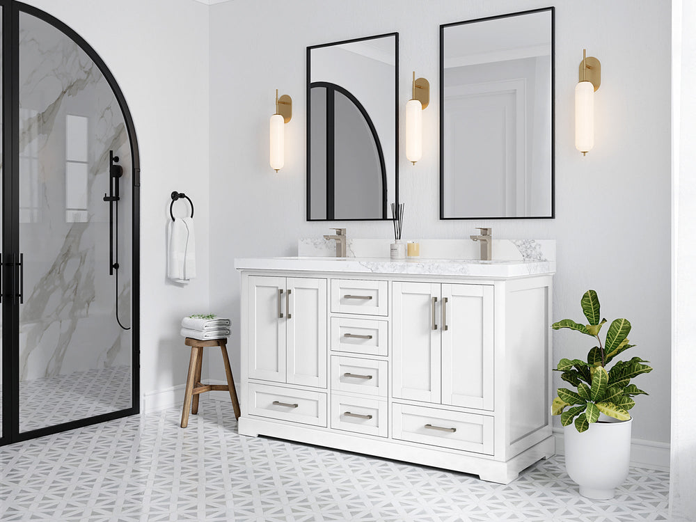 Vanity Countertops options: For Calacatta Laza Quartz, Empira White Quartz, Pure White Quartz, Palissandro Quartz we have 2 options Straight-Mitered Edge and Double Cove Edge; For Calacatta Nuvo Quartz, Carrara Marble, Carrara Quartz, Piatra Gray Quartz, Pearl Light Gray Quartz, Calacatta Black Quartz, Calacatta Gold Quartz, Calacatta Sienna Quartz, Calacatta Poanazzo Quartz, Venatino Quartz, Viola Brown Quartz, Viola Gold Quartz, Viola Night Quartz, Viola Biagio Quartz, Berkshire Brass Quartz, Frosty Carrara Quartz, Onyx Quartz we have Straight - Mitered Edge option.