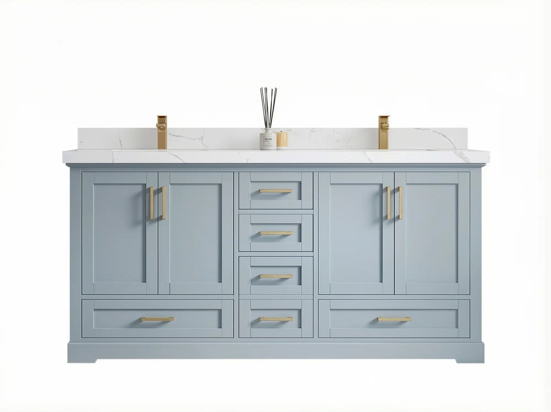 Boston 72 in. W x 22 in. D Double Sink Bathroom Vanity | Blue Heather