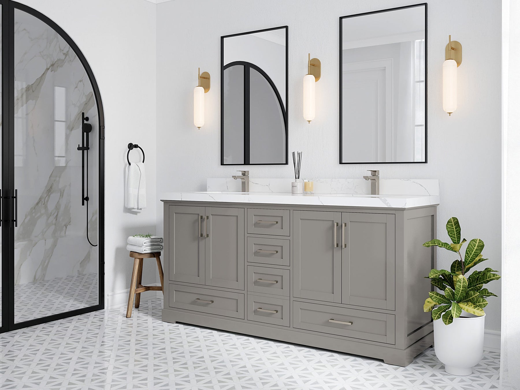 Hardware Finish: White, Elephant Skin Gray comes with Brushed Nickel Finish, Alabaster, Evergreen, Fine Grain, Navy Blue, Wrought Iron comes with Brushed Gold Finish