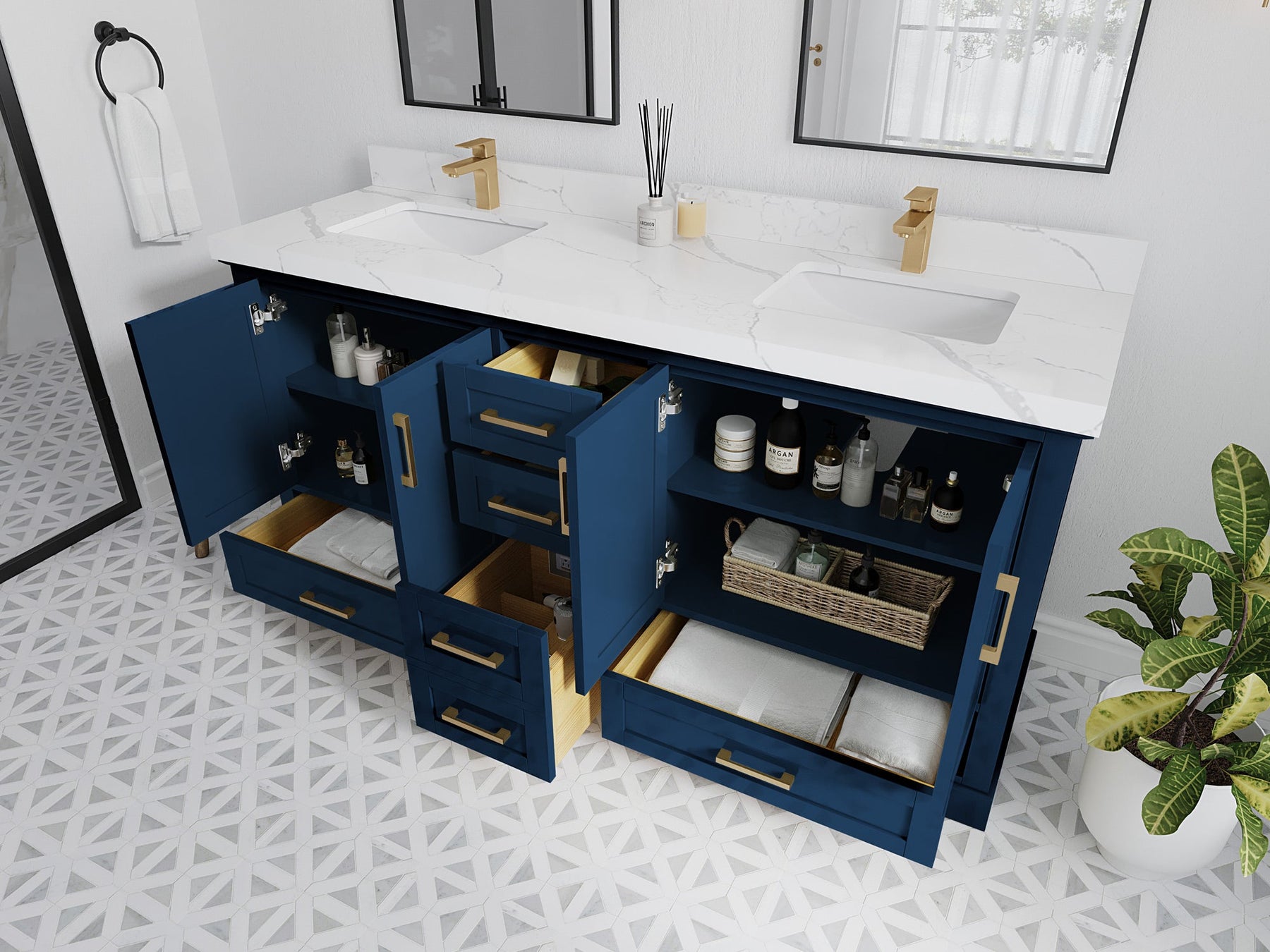 Hardware Finish: White, Elephant Skin Gray comes with Brushed Nickel Finish, Alabaster, Evergreen, Fine Grain, Navy Blue, Wrought Iron comes with Brushed Gold Finish