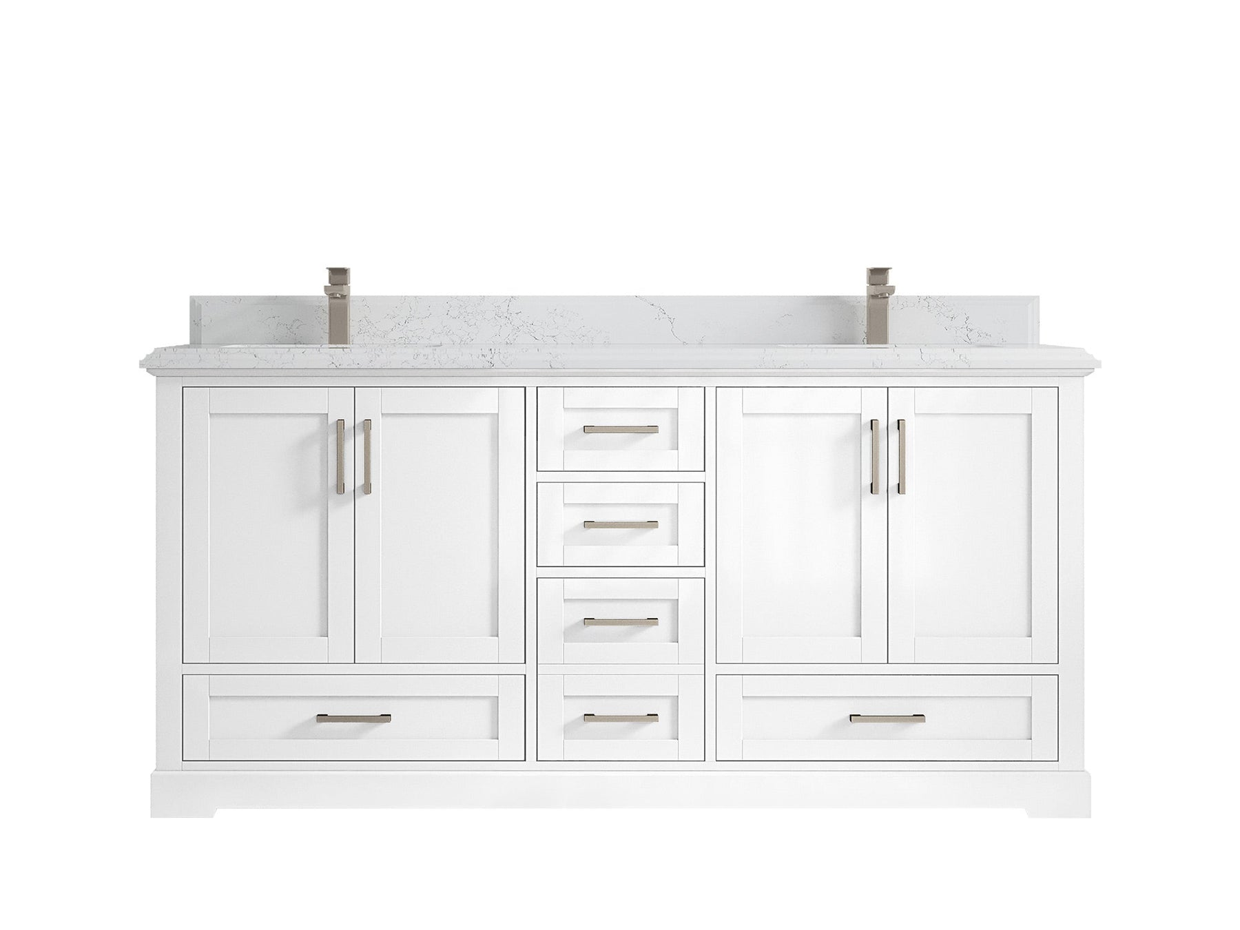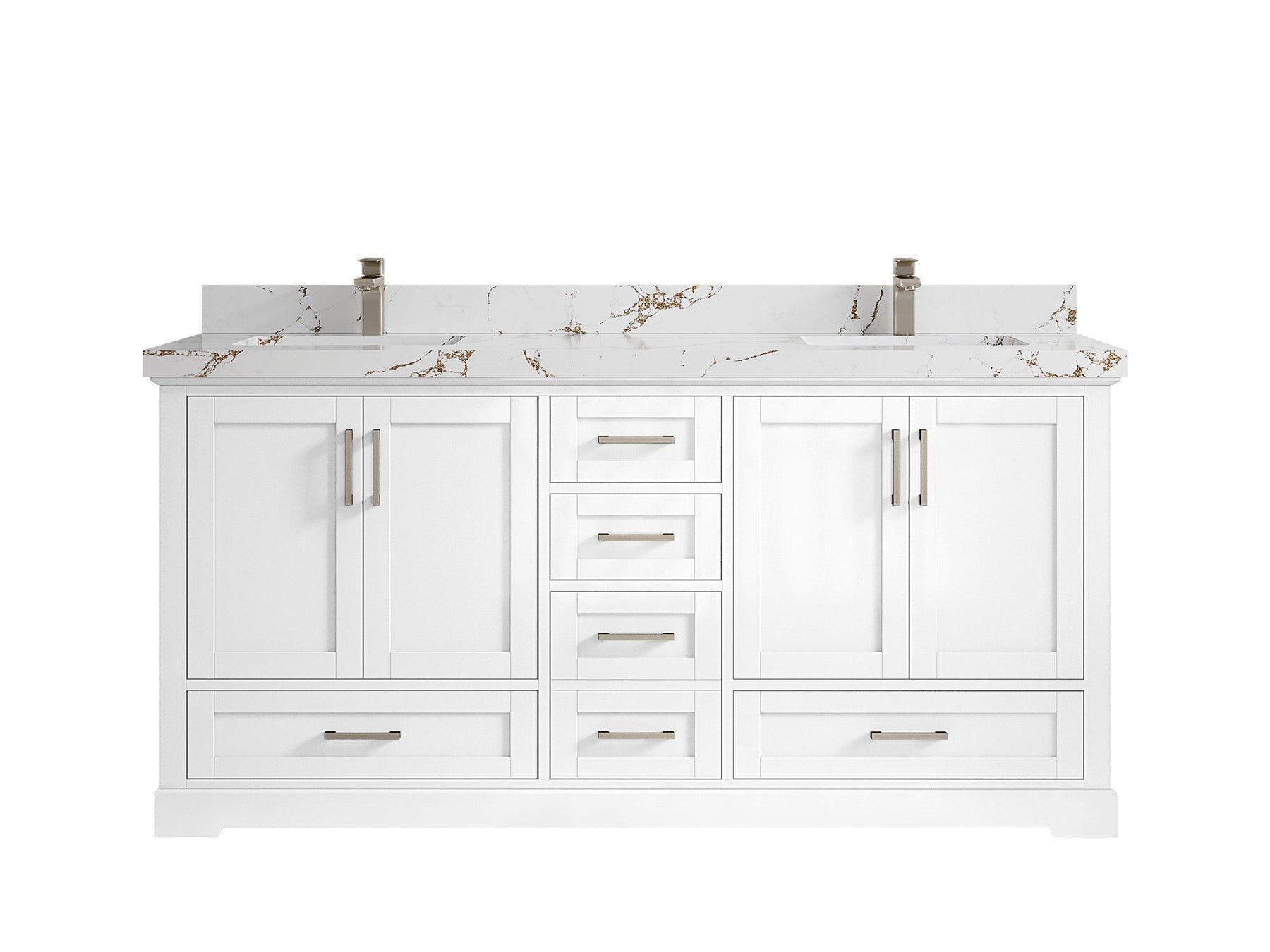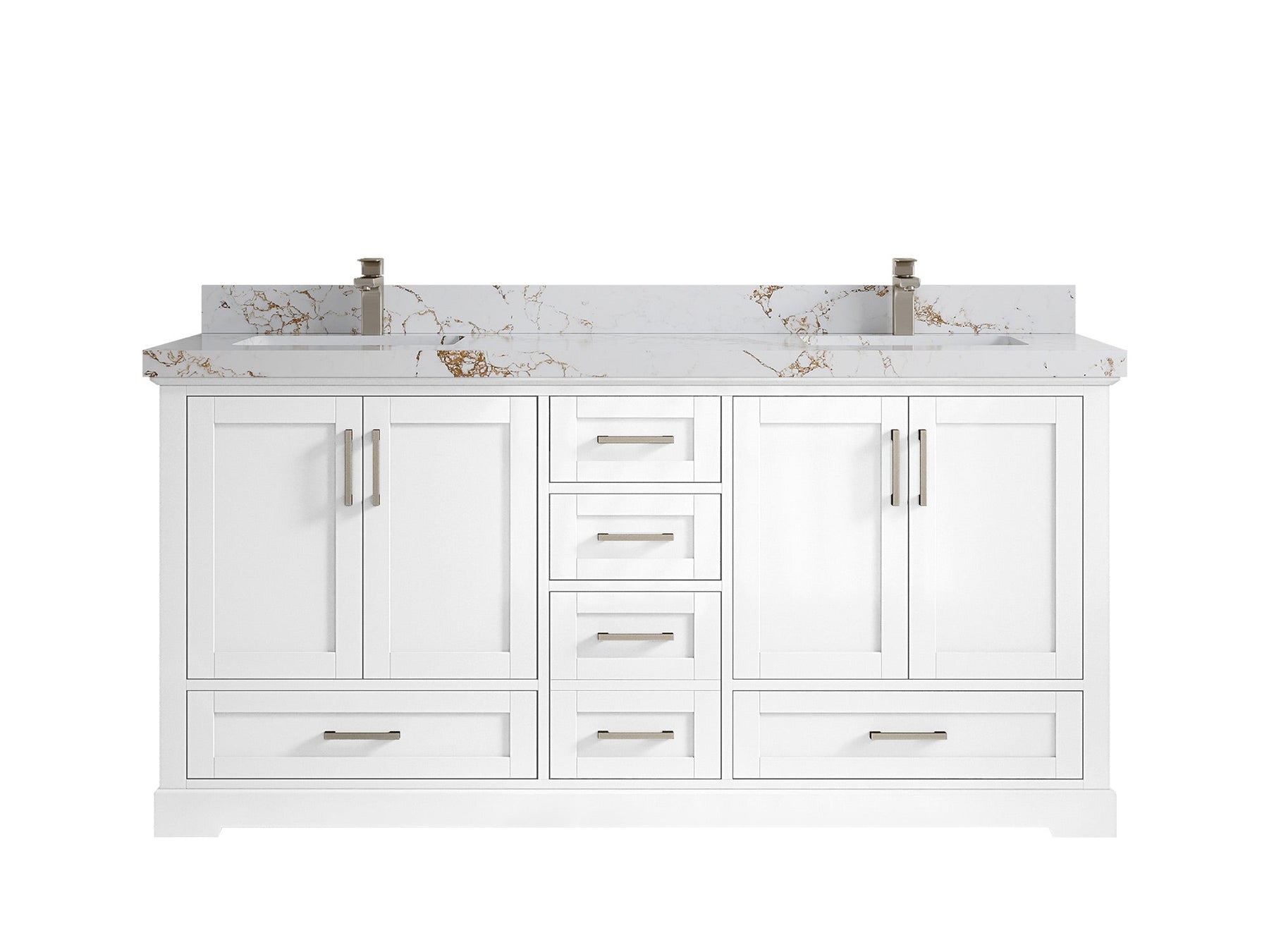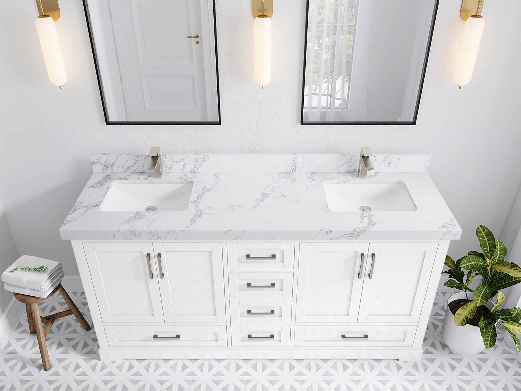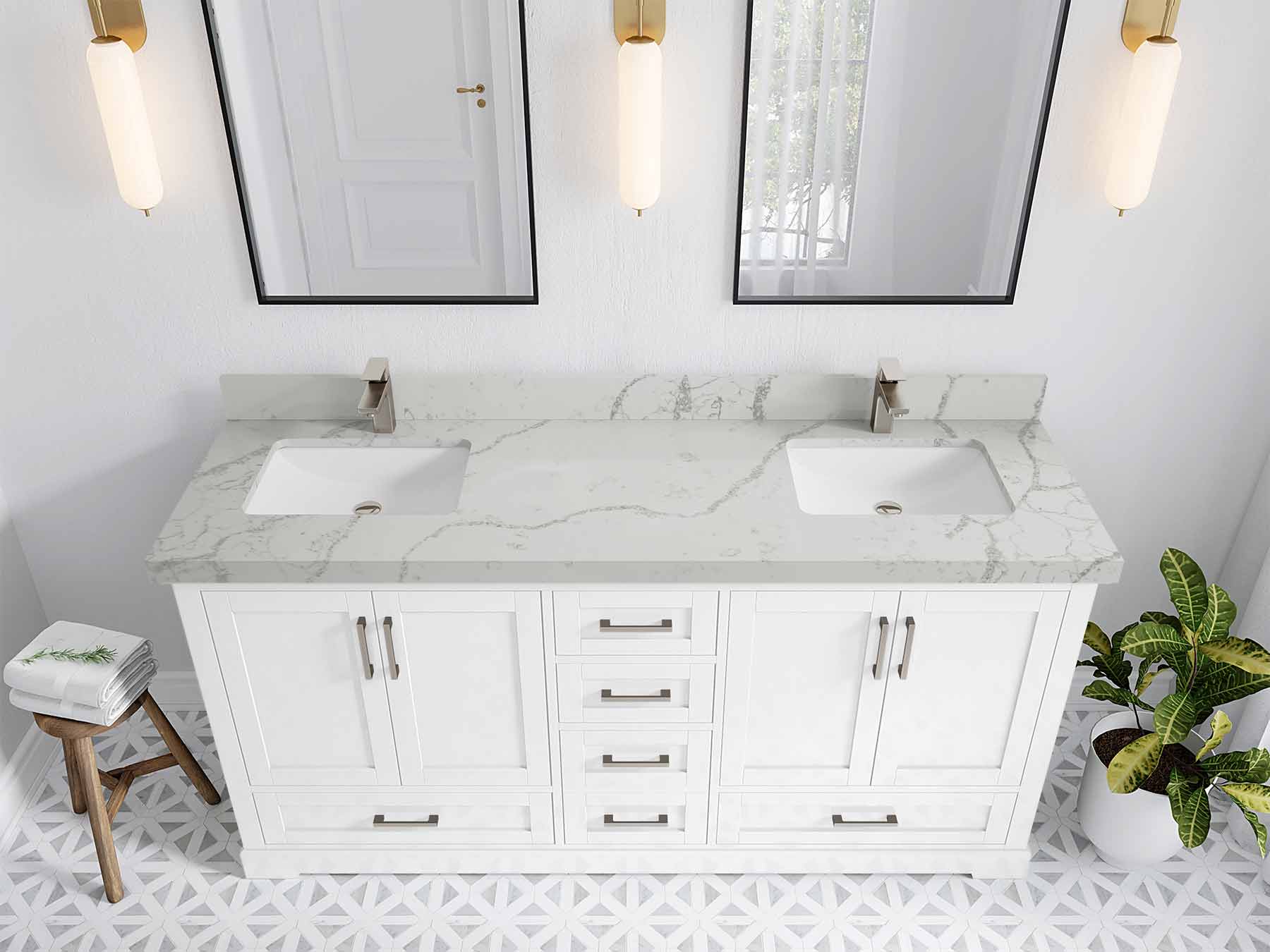 Vanity Countertops options: For Calacatta Laza Quartz, Empira White Quartz, Pure White Quartz, Palissandro Quartz we have 2 options Straight-Mitered Edge and Double Cove Edge; For Calacatta Nuvo Quartz, Carrara Marble, Carrara Quartz, Piatra Gray Quartz, Pearl Light Gray Quartz, Calacatta Black Quartz, Calacatta Gold Quartz, Calacatta Sienna Quartz, Calacatta Poanazzo Quartz, Venatino Quartz, Viola Brown Quartz, Viola Gold Quartz, Viola Night Quartz, Viola Biagio Quartz, Berkshire Brass Quartz, Frosty Carrara Quartz, Onyx Quartz we have Straight - Mitered Edge option.