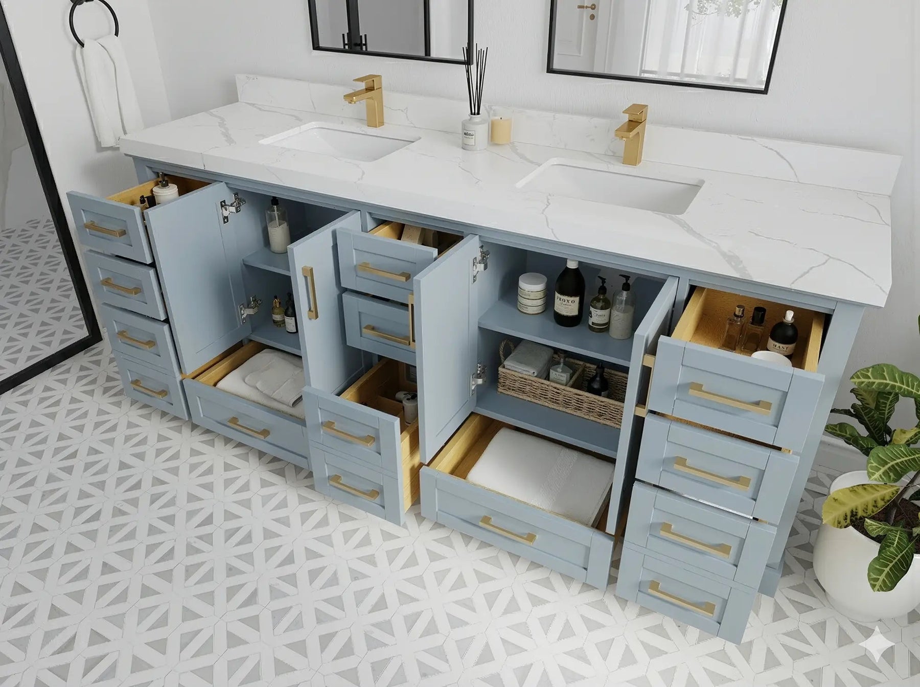 Vanity Countertops options: For Calacatta Laza Quartz, Empira White Quartz, Pure White Quartz, Palissandro Quartz we have 2 options Straight-Mitered Edge and Double Cove Edge; For Calacatta Nuvo Quartz, Carrara Marble, Carrara Quartz, Piatra Gray Quartz, Pearl Light Gray Quartz, Calacatta Black Quartz, Calacatta Gold Quartz, Calacatta Sienna Quartz, Calacatta Poanazzo Quartz, Venatino Quartz, Viola Brown Quartz, Viola Gold Quartz, Viola Night Quartz, Viola Biagio Quartz, Berkshire Brass Quartz, Frosty Carrara Quartz, Onyx Quartz we have Straight - Mitered Edge option.
