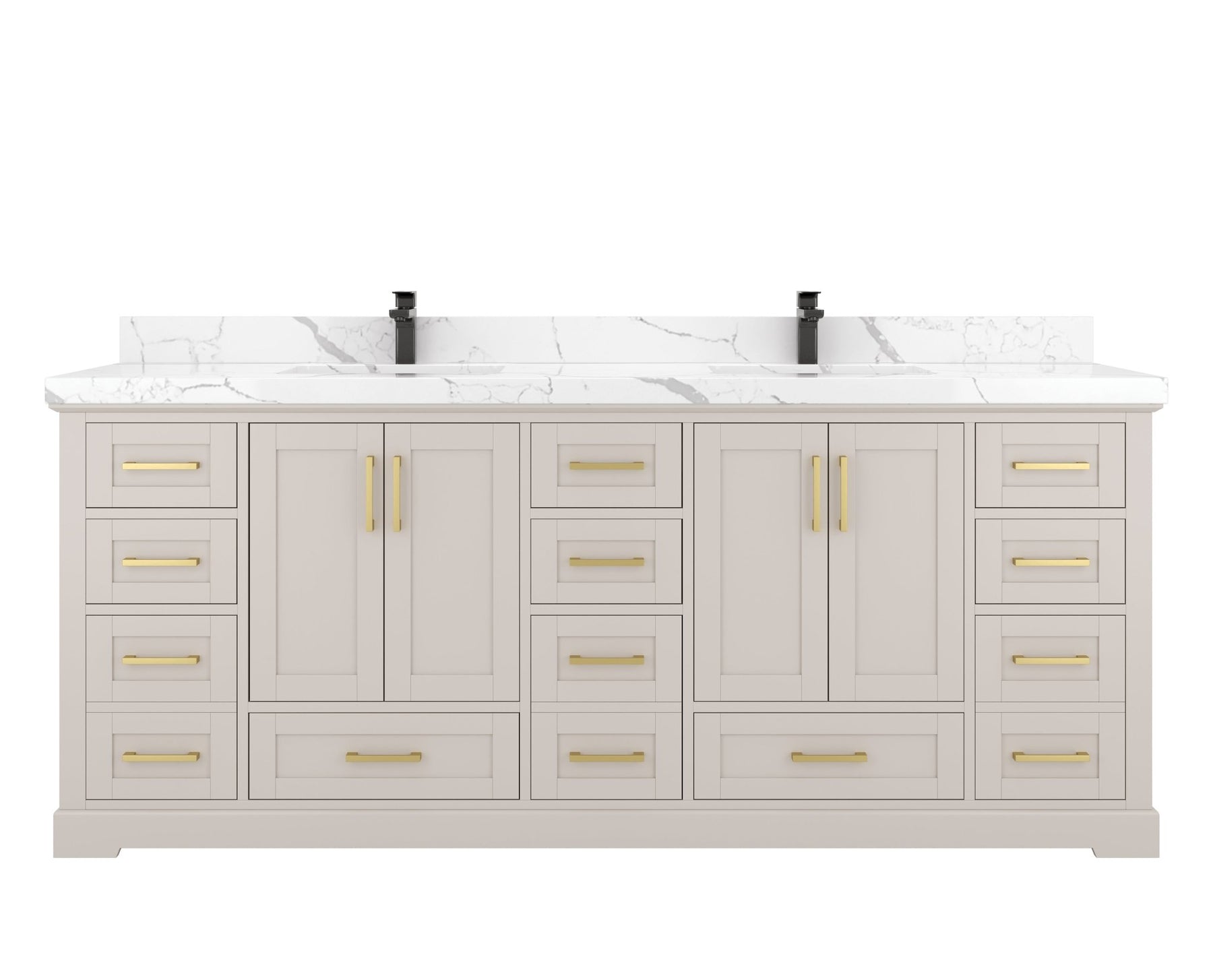 Vanity Countertops options: For Calacatta Laza Quartz, Empira White Quartz, Pure White Quartz, Palissandro Quartz we have 2 options Straight-Mitered Edge and Double Cove Edge; For Calacatta Nuvo Quartz, Carrara Marble, Carrara Quartz, Piatra Gray Quartz, Pearl Light Gray Quartz, Calacatta Black Quartz, Calacatta Gold Quartz, Calacatta Sienna Quartz, Calacatta Poanazzo Quartz, Venatino Quartz, Viola Brown Quartz, Viola Gold Quartz, Viola Night Quartz, Viola Biagio Quartz, Berkshire Brass Quartz, Frosty Carrara Quartz, Onyx Quartz we have Straight - Mitered Edge option.