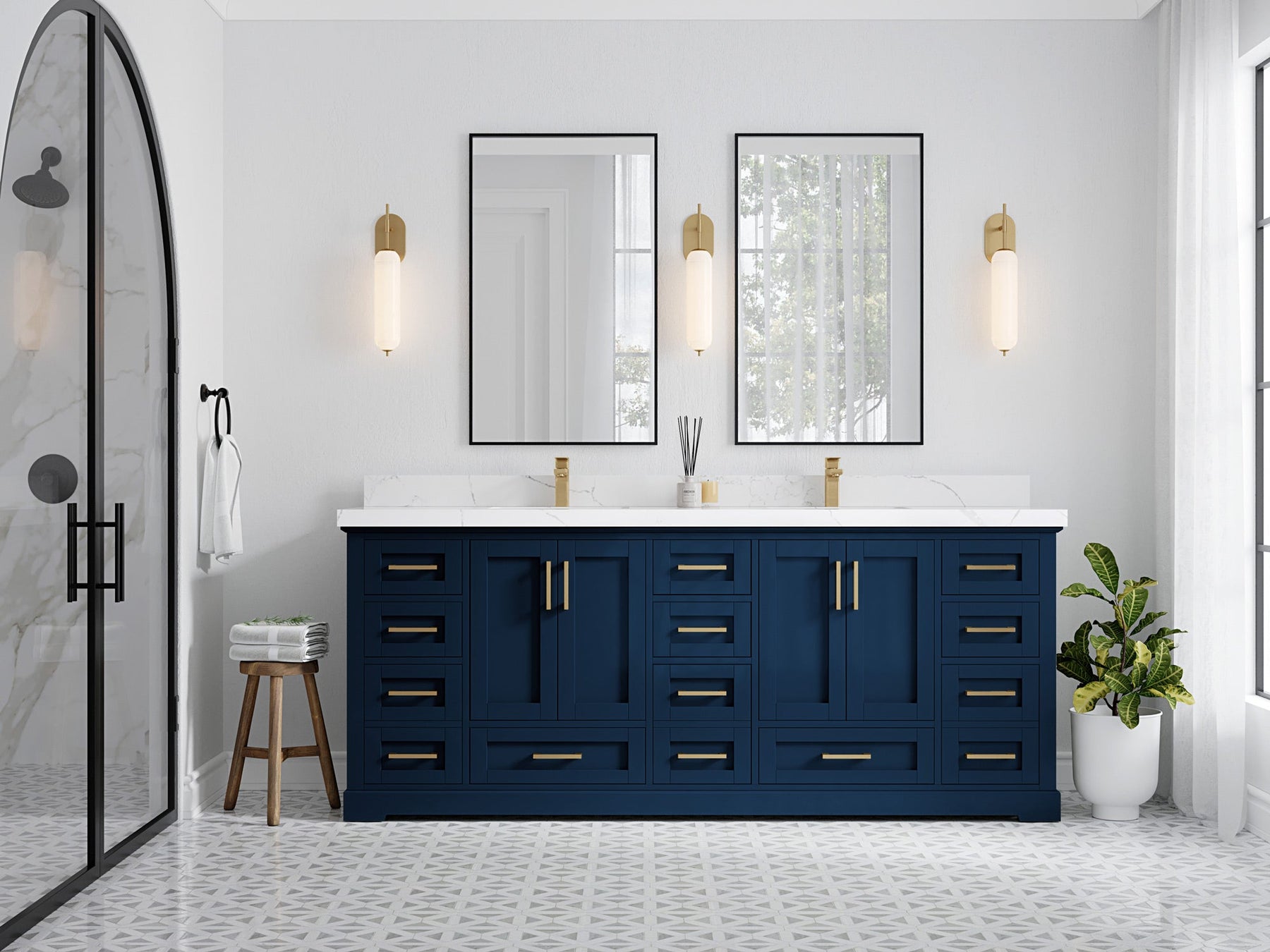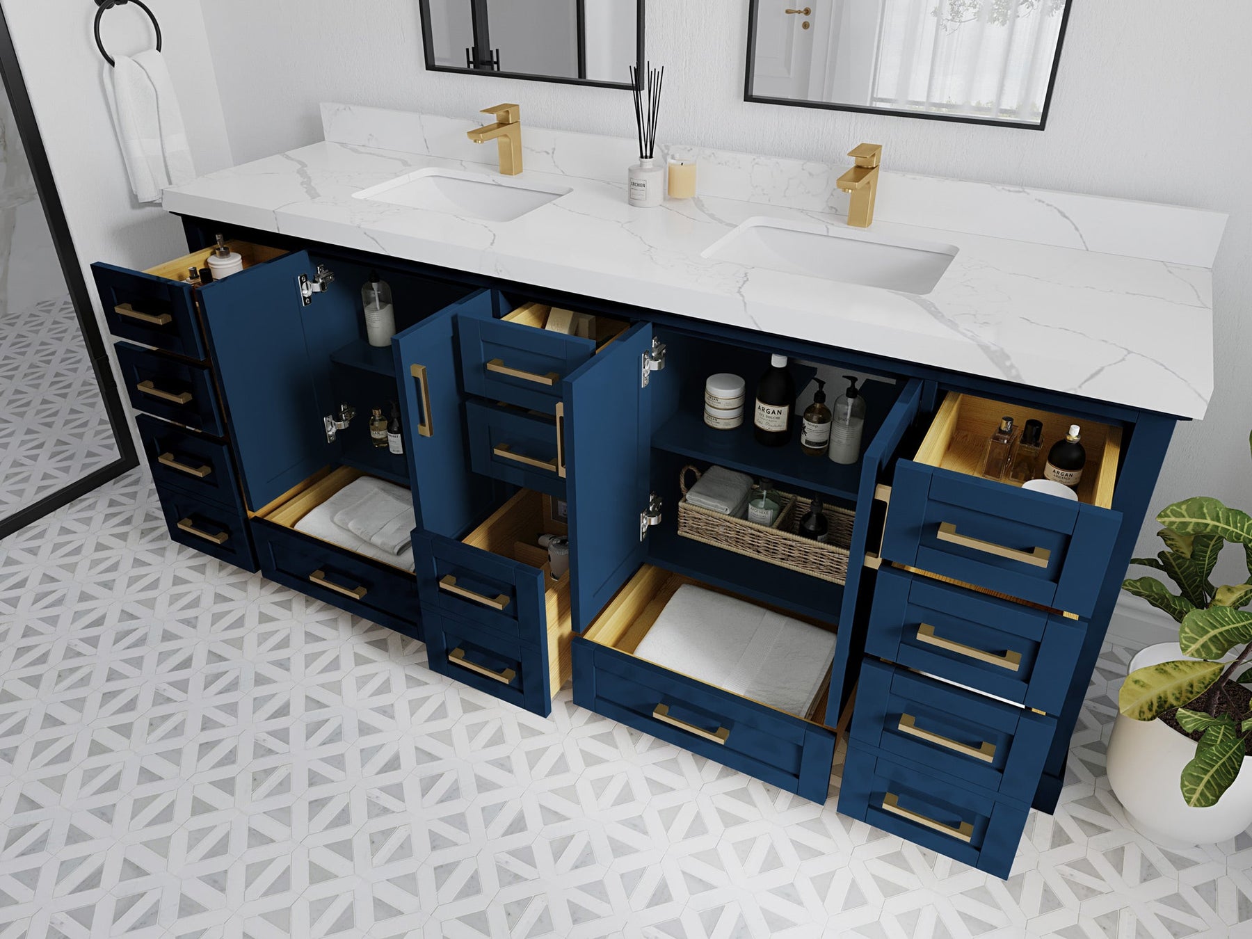 Hardware Finish: White, Elephant Skin Gray comes with Brushed Nickel Finish; Alabaster, Evergreen, Fine Grain, Navy Blue, Wrought Iron comes with Brushed Gold Finish