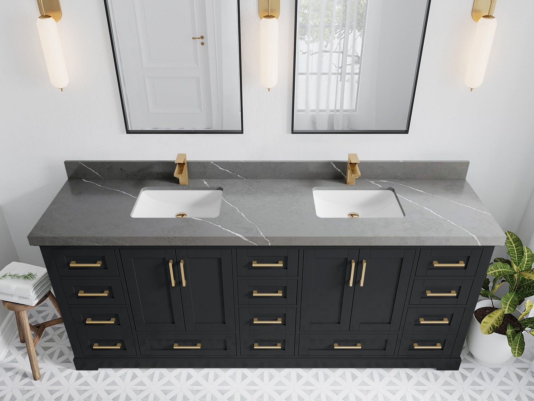 Boston 84 in. W x 22 in. D Double Sink Bathroom Vanity in Wrought Iron with Countertop - Dimensions