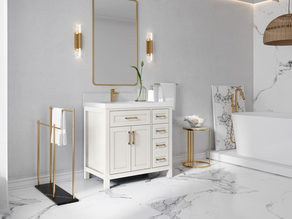 Cambridge 36 in. W x 22 in. D Left Offset Sink Bathroom Vanity | Alabaster