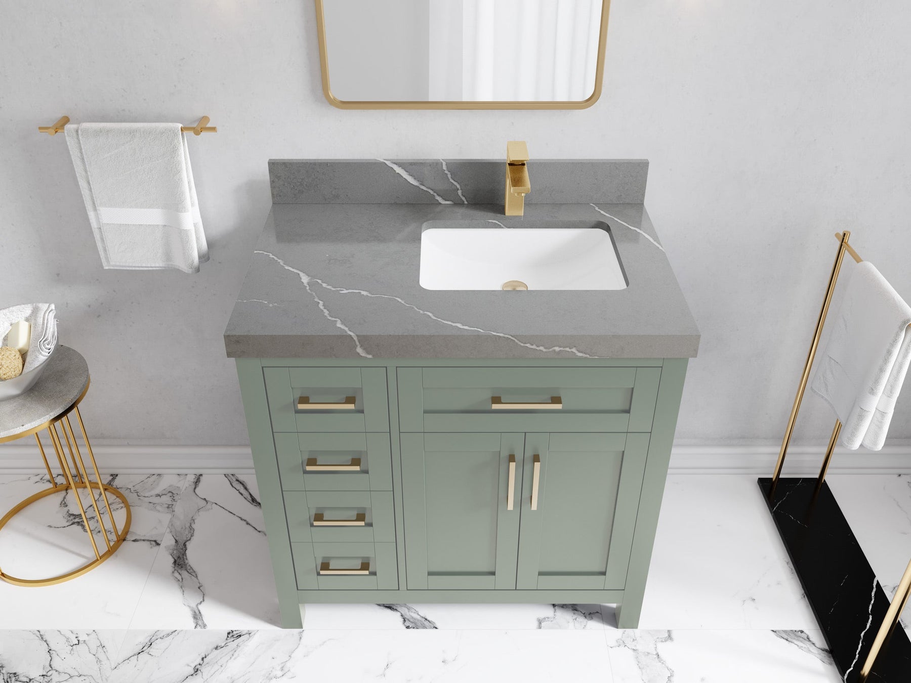 Cambridge 36 in. W x 22 in. D Right Offset Sink Bathroom Vanity | Evergreen