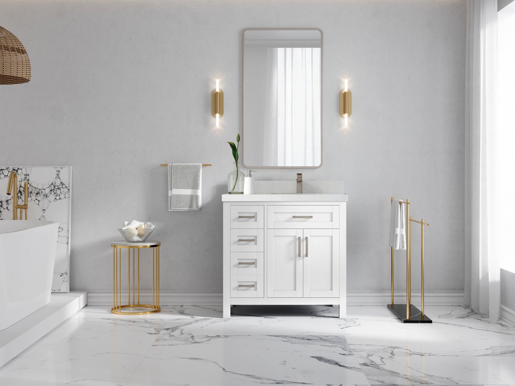 Cambridge 36 in. W x 22 in. D Right Offset Sink Bathroom Vanity | White