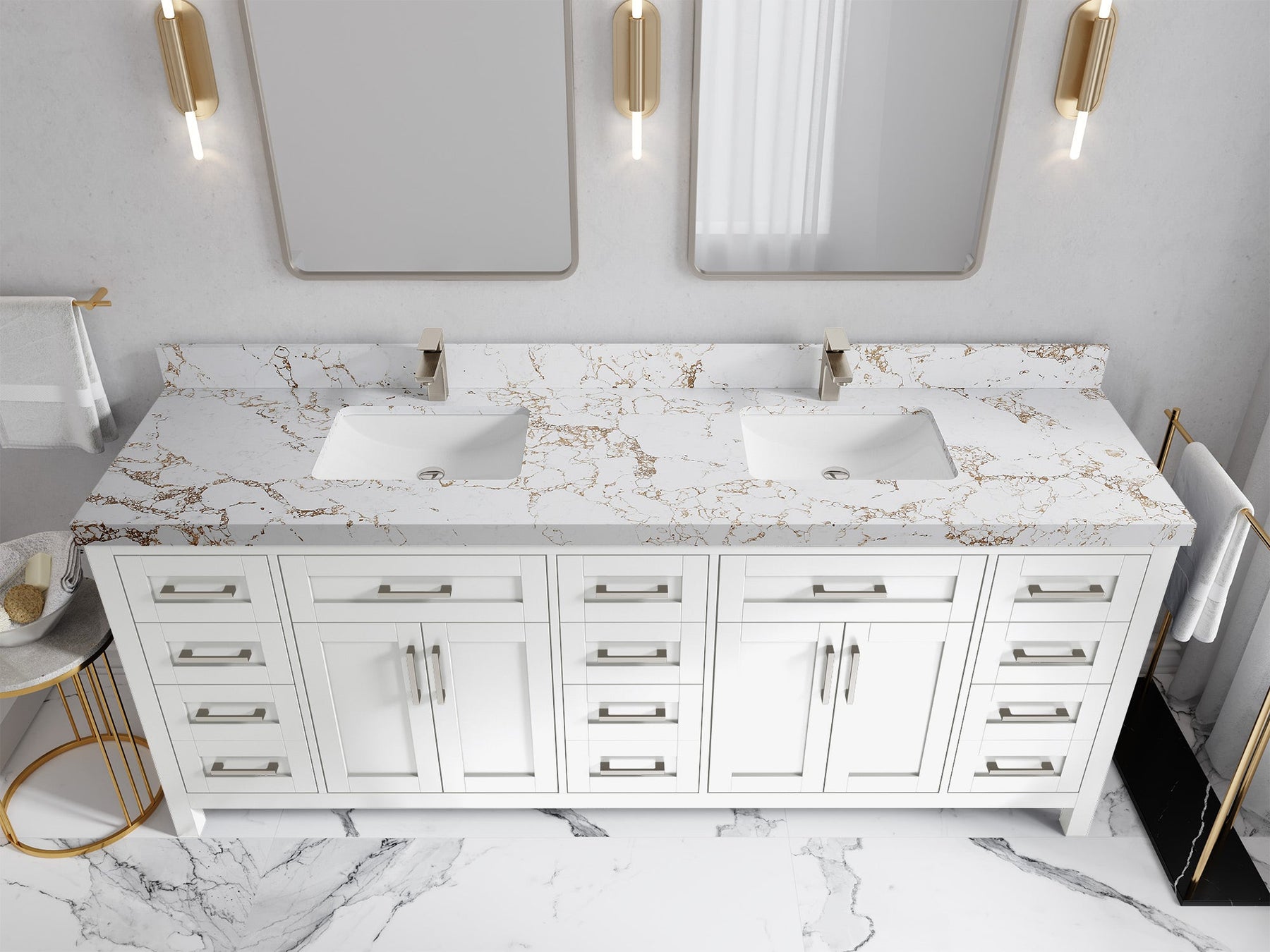Vanity Countertops options: For Calacatta Laza Quartz, Empira White Quartz, Pure White Quartz, Palissandro Quartz we have 2 options Straight-Mitered Edge and Double Cove Edge; For Calacatta Nuvo Quartz, Carrara Marble, Carrara Quartz, Piatra Gray Quartz, Pearl Light Gray Quartz, Calacatta Black Quartz, Calacatta Gold Quartz, Calacatta Sienna Quartz, Calacatta Poanazzo Quartz, Venatino Quartz, Viola Brown Quartz, Viola Gold Quartz, Viola Night Quartz, Viola Biagio Quartz, Berkshire Brass Quartz, Frosty Carrara Quartz, Onyx Quartz we have Straight - Mitered Edge option.