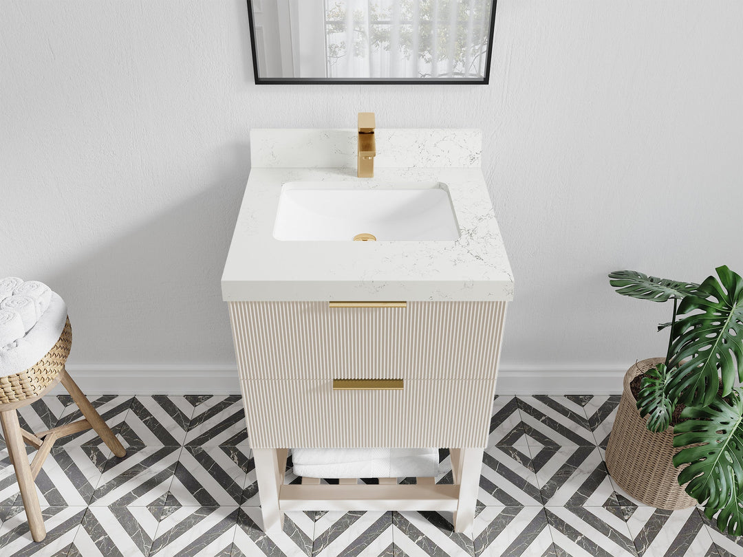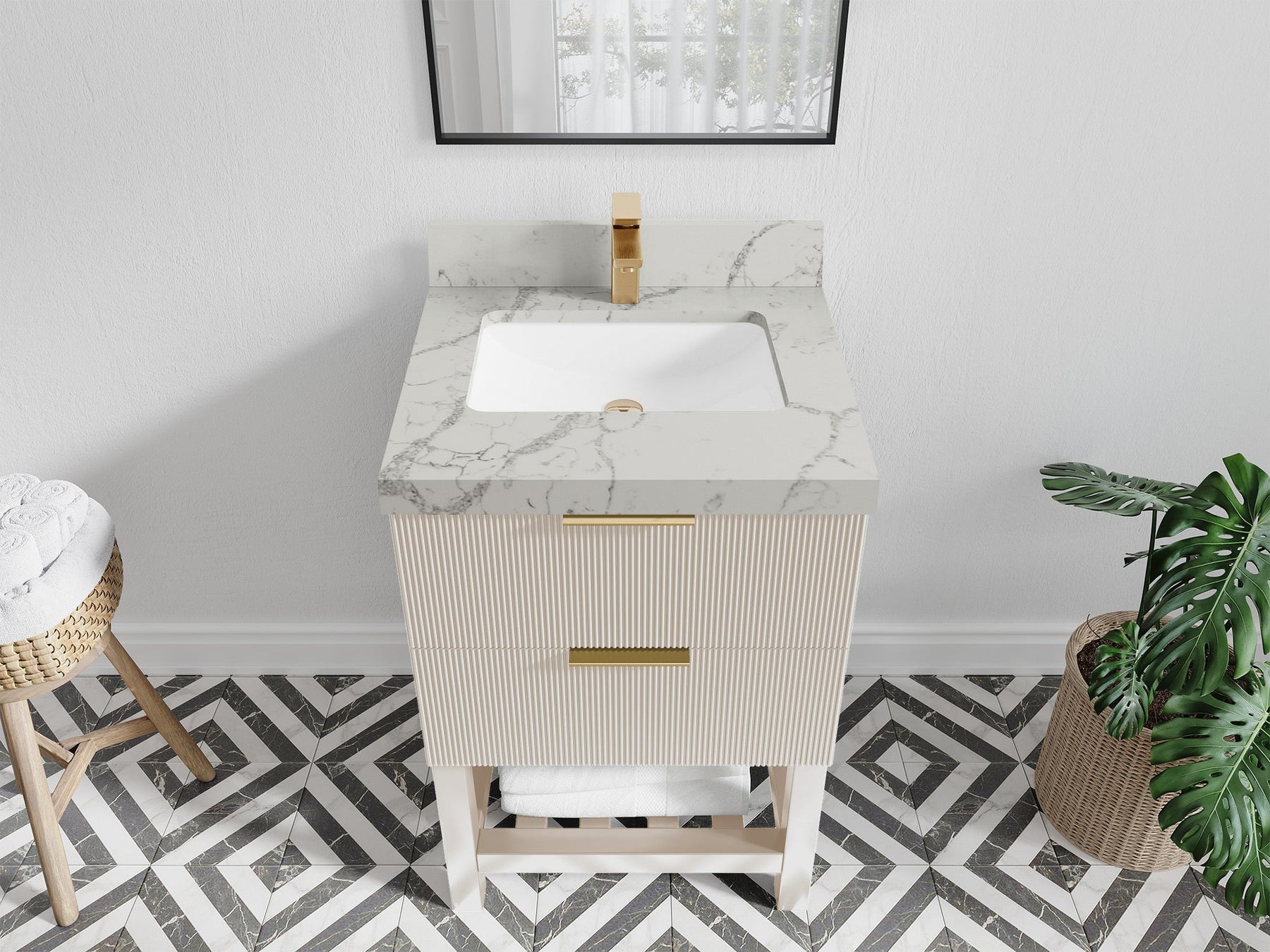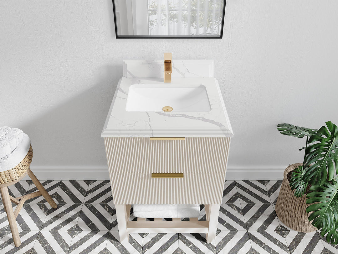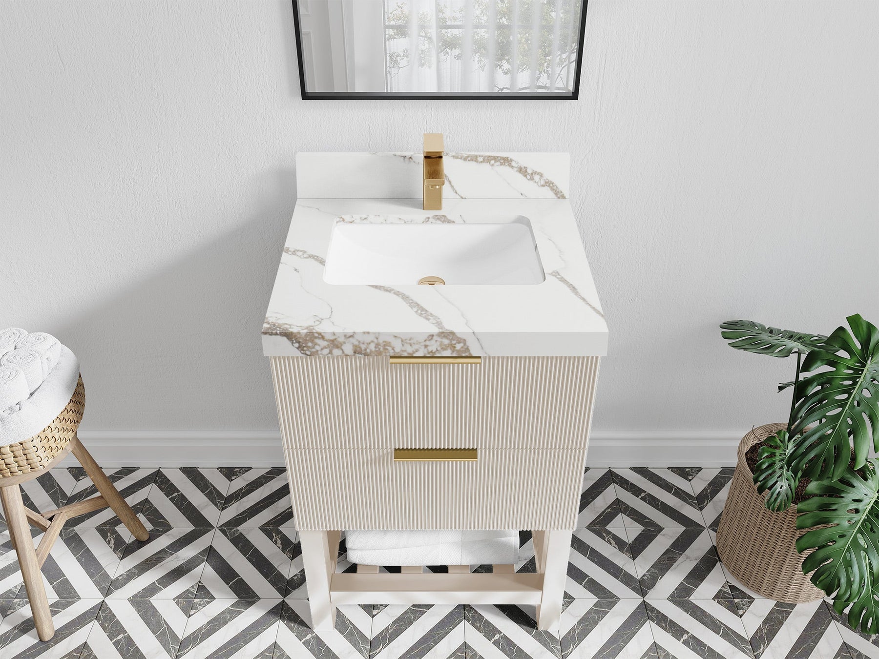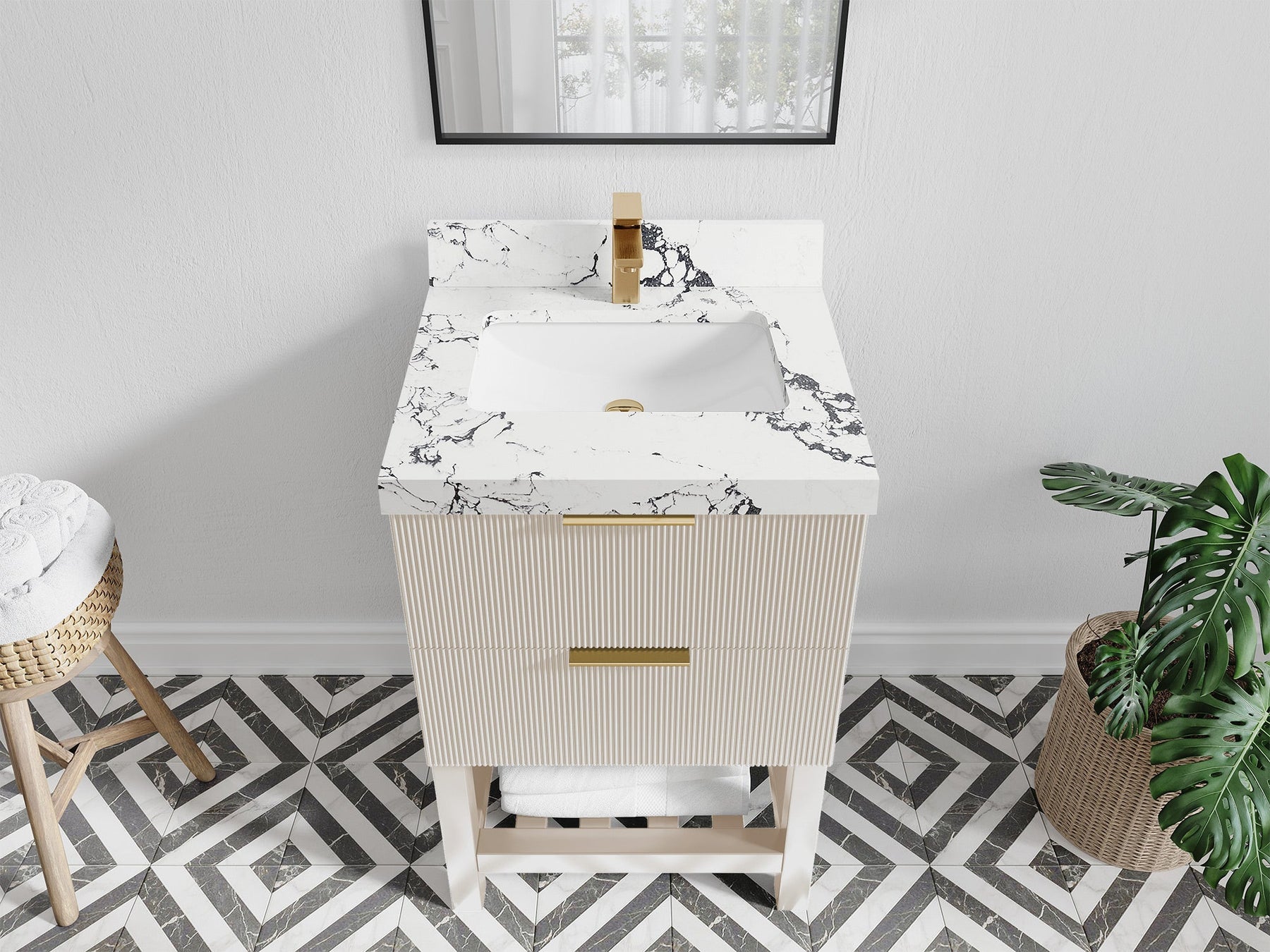 Faucet Hole(S): Comes with Single Faucet, 8 (in.) Widespread Faucet, Wall mount Faucets - Only Available for White Quartz and Carrara Quartz. (PLEASE ADD THIS CONFIGURATION UNDER COUNTERTOPS SECTION )