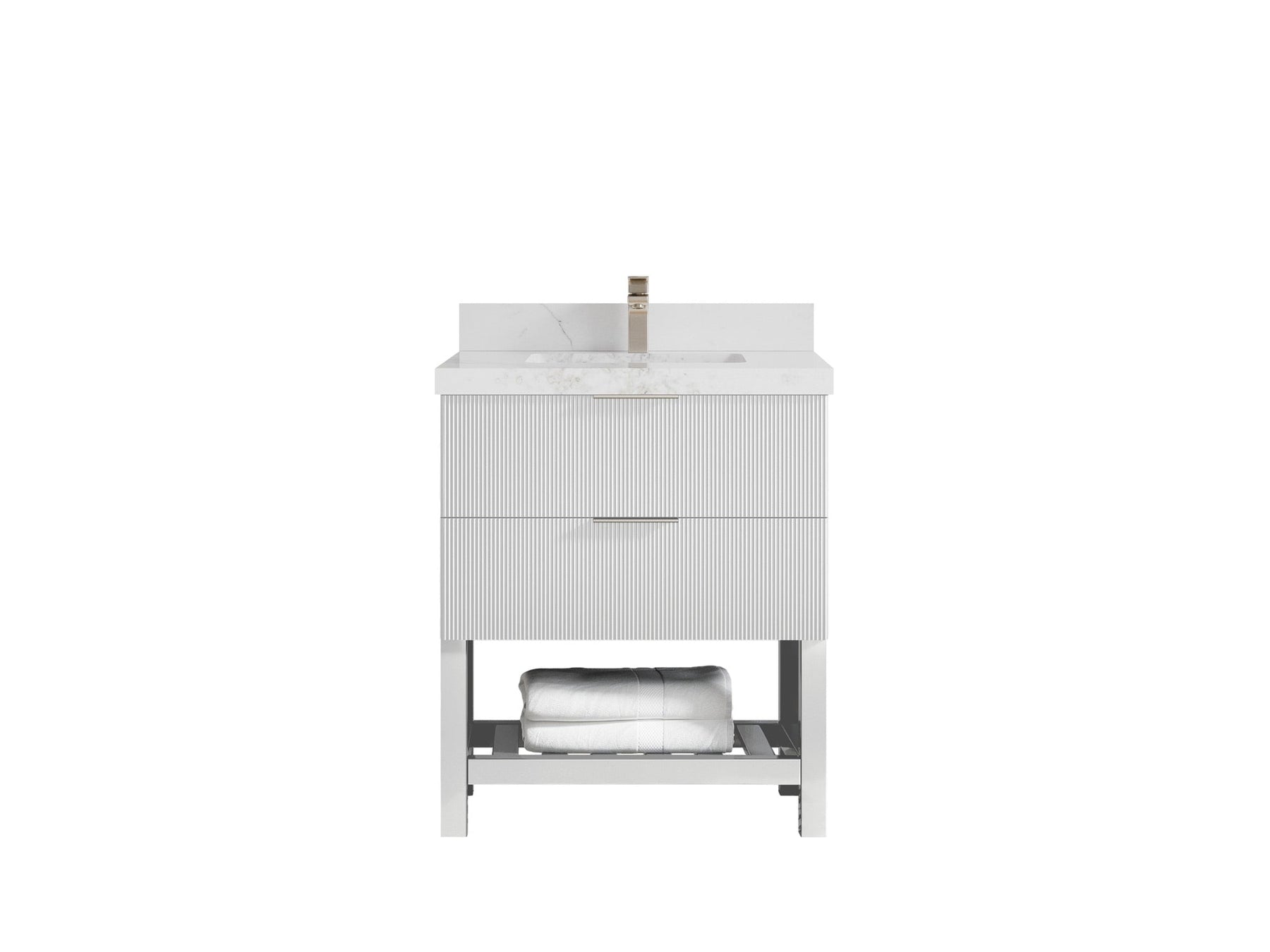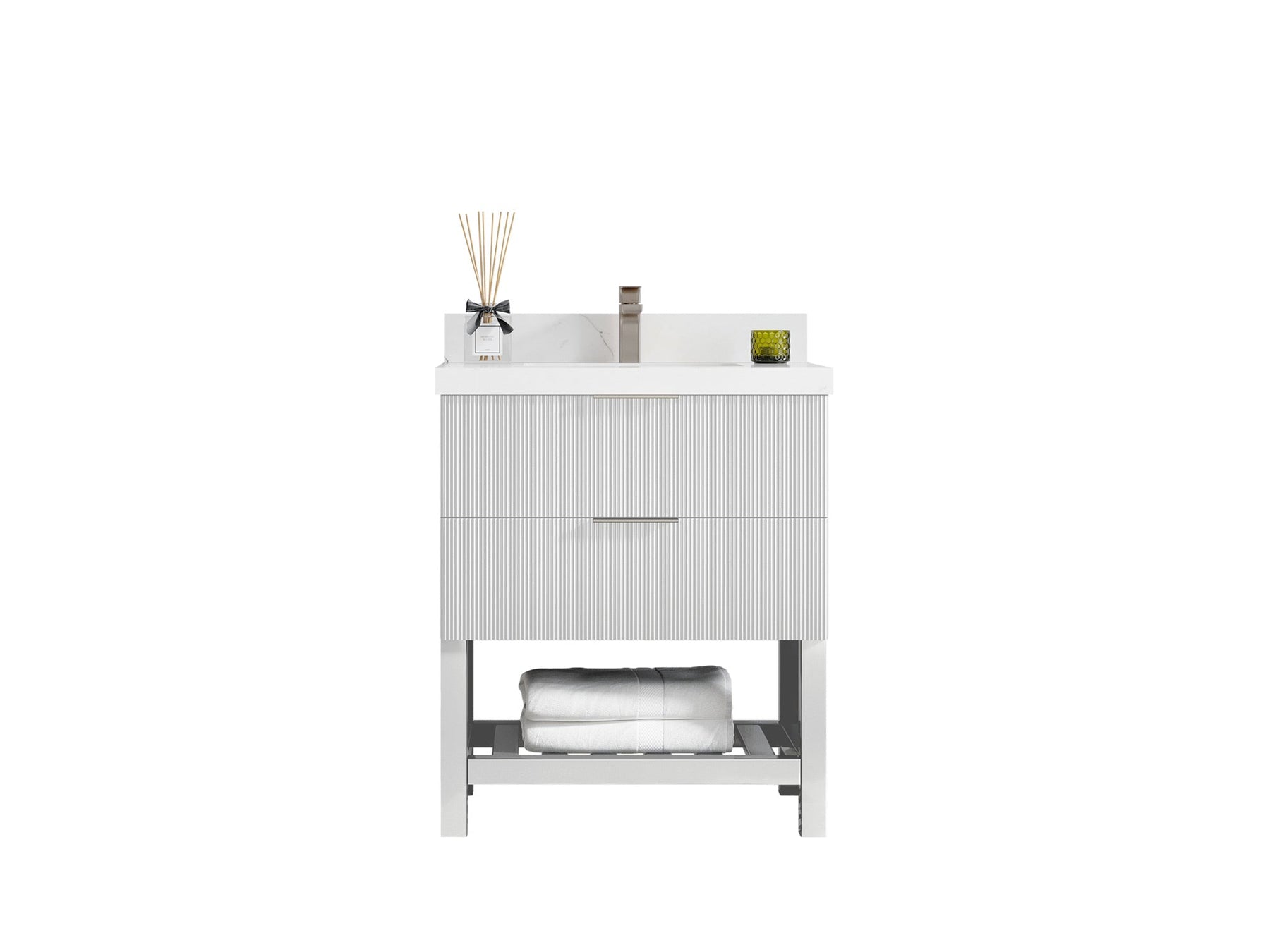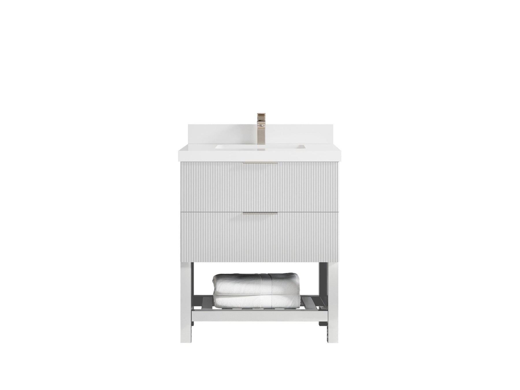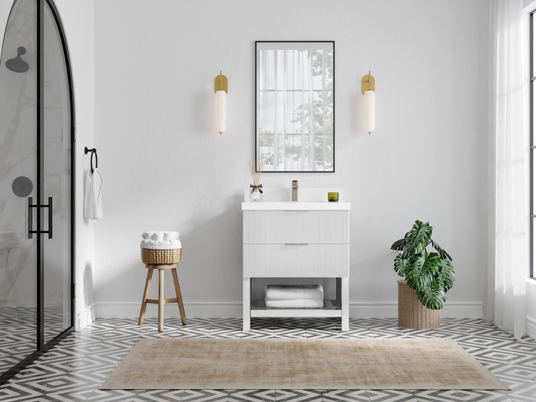 Catalina 30 in W x 22 in D Free Standing Reeded Single Sink Bathroom Vanity | White