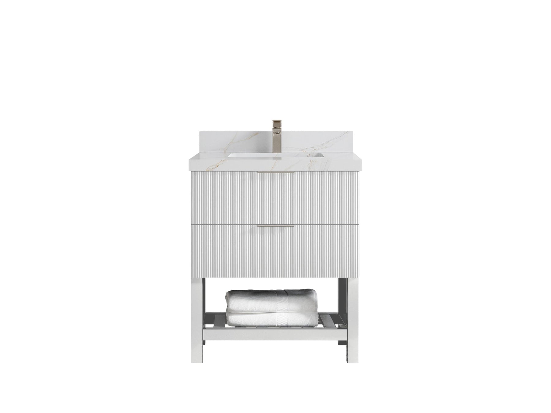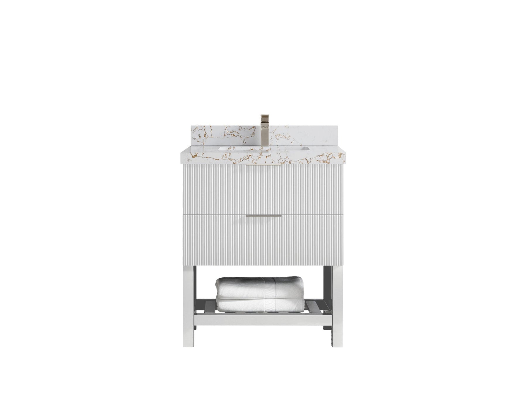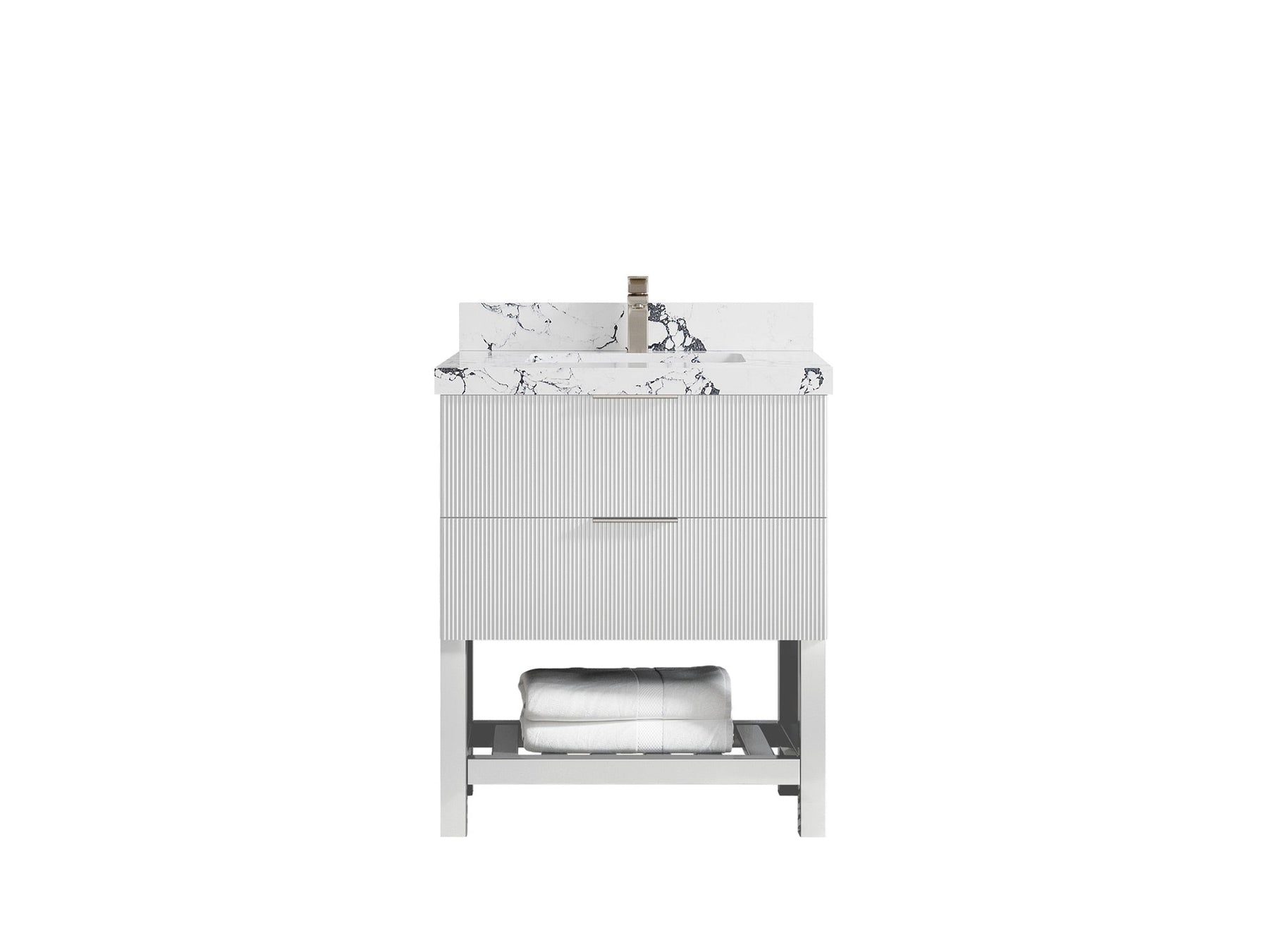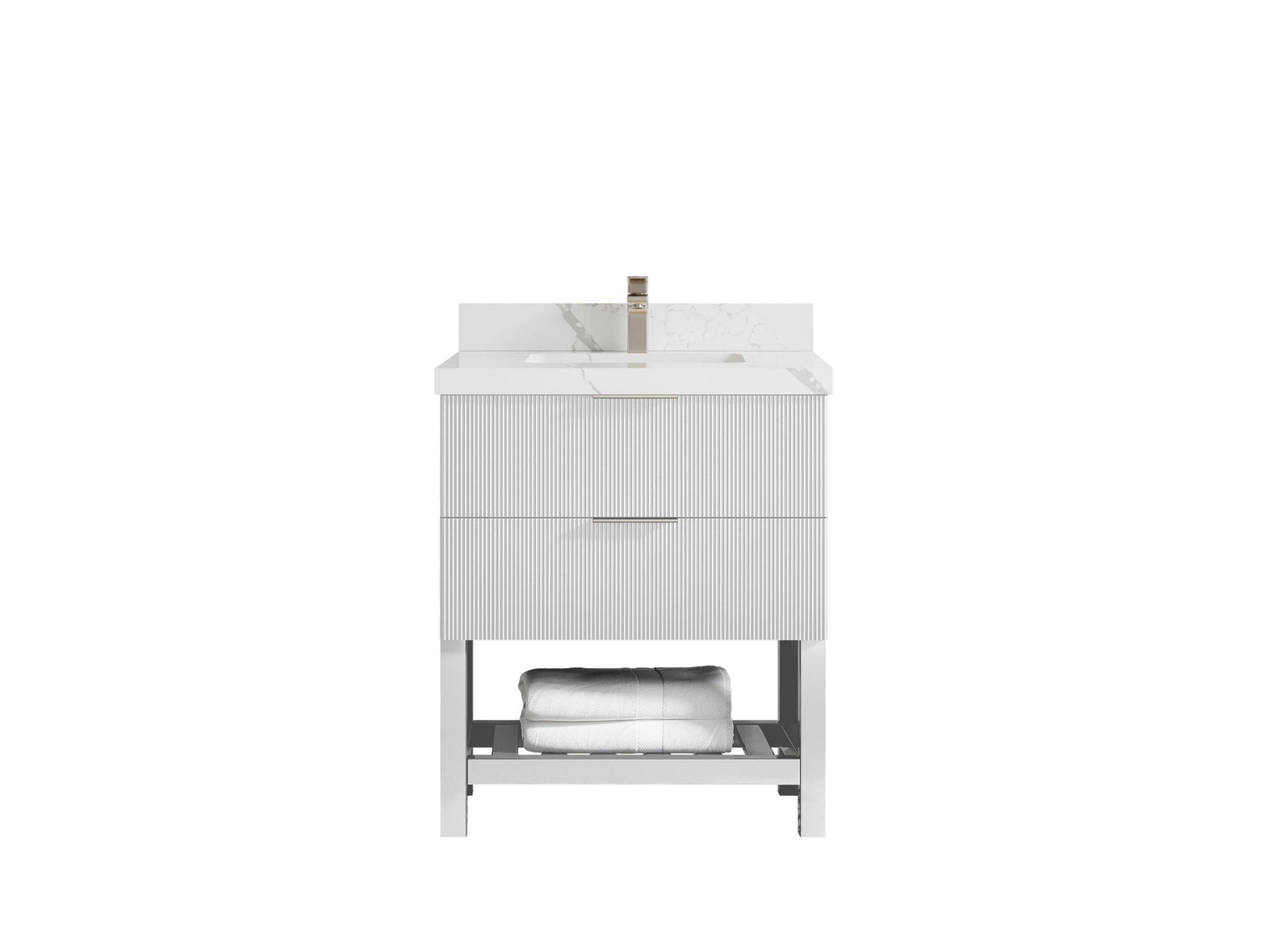 Catalina 30 in W x 22 in D Free Standing Reeded Single Sink Bathroom Vanity | White