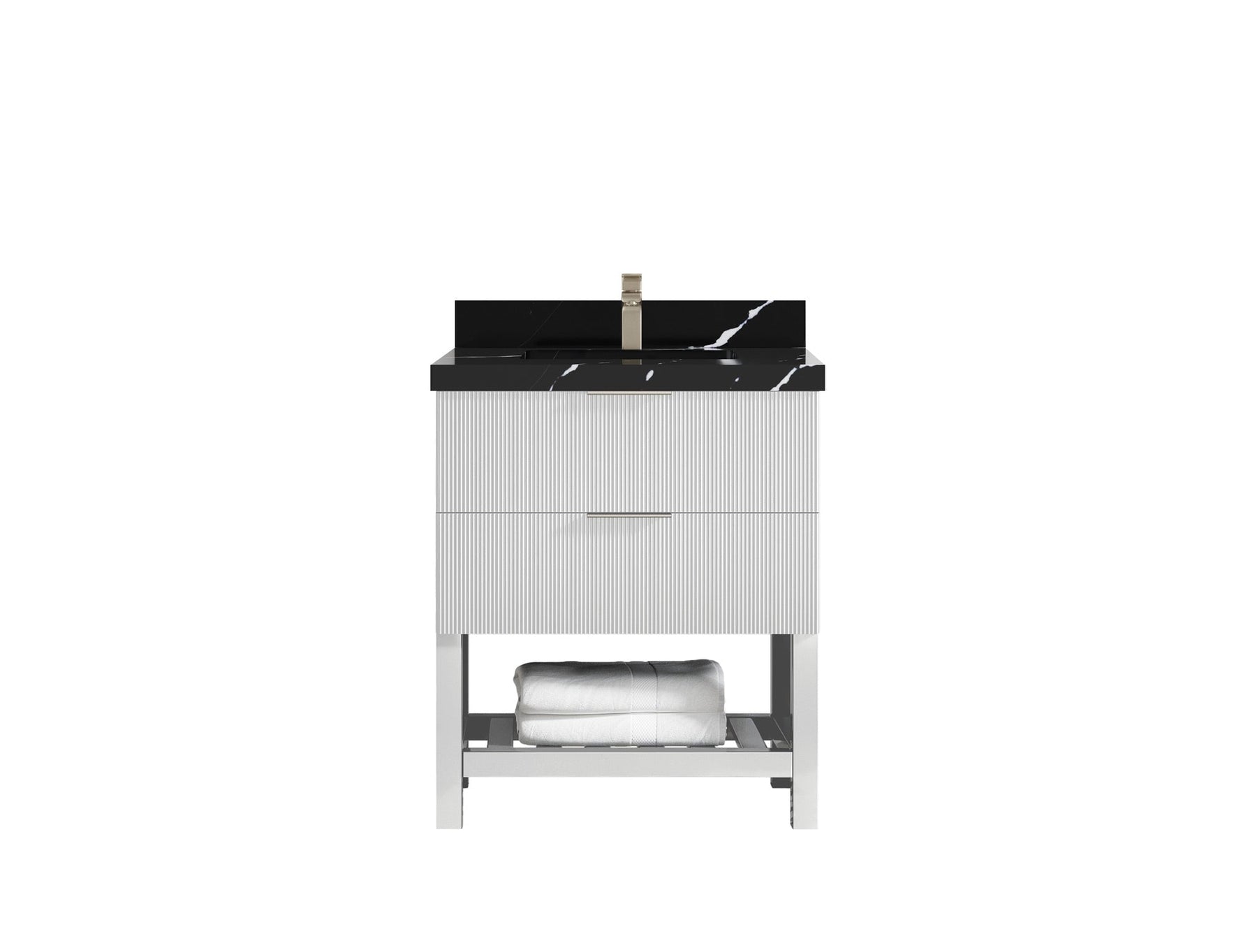 Catalina 30 in. W x 22 in. D Single Sink Bathroom Vanity in White with 2 in Calacatta Black Quartz Countertop - Top View