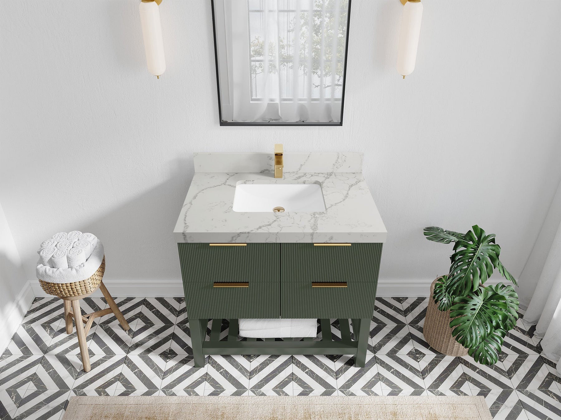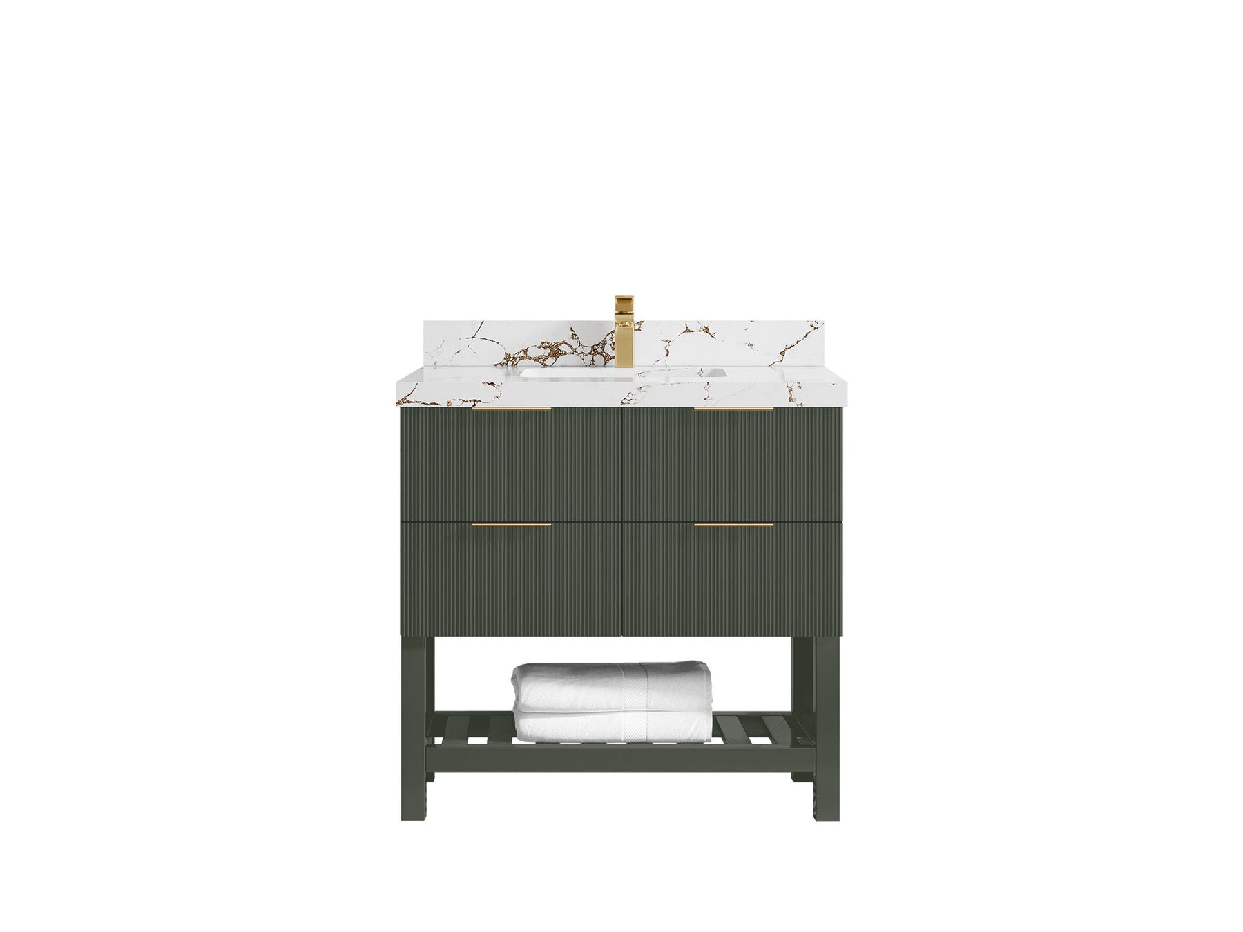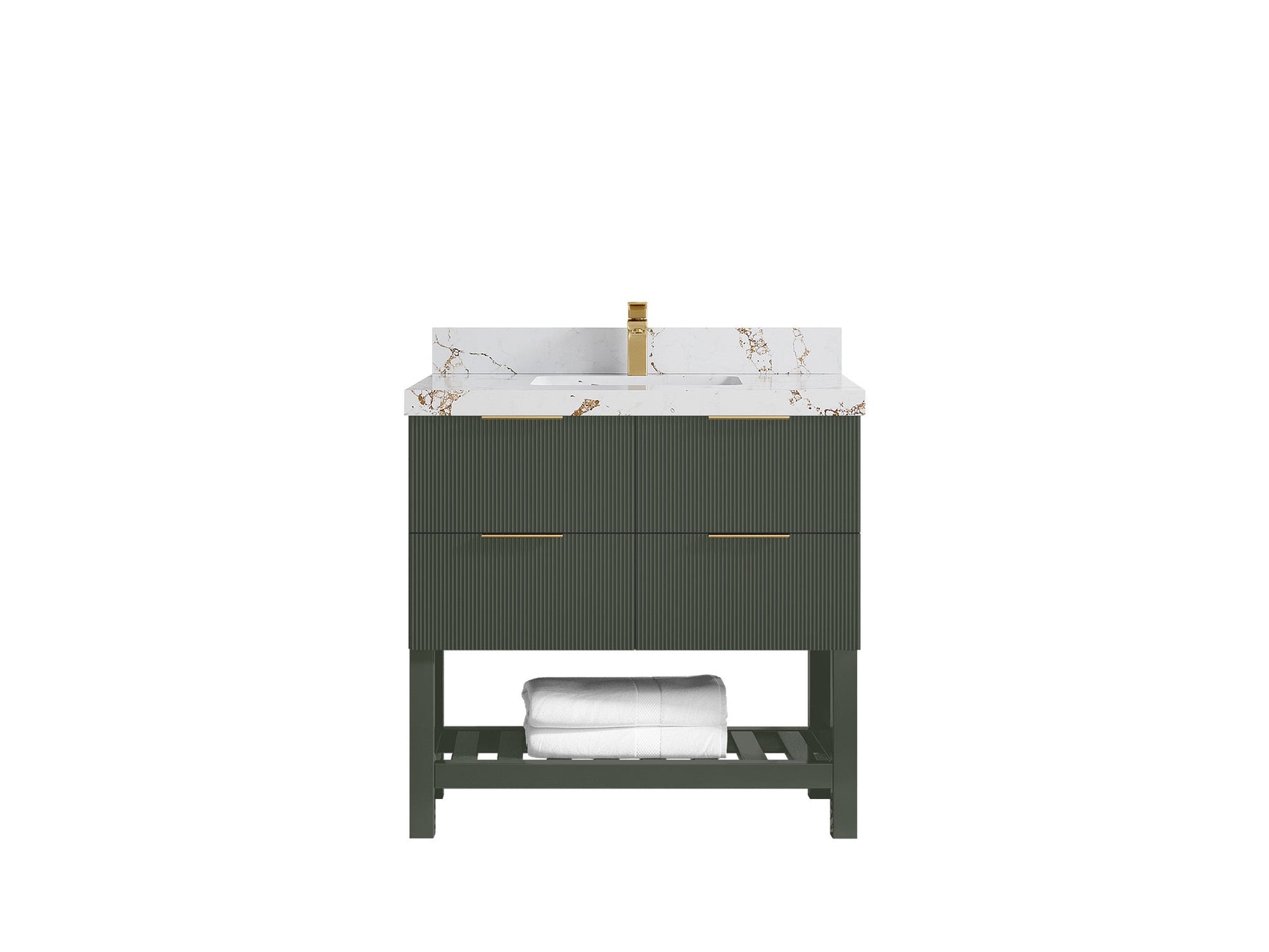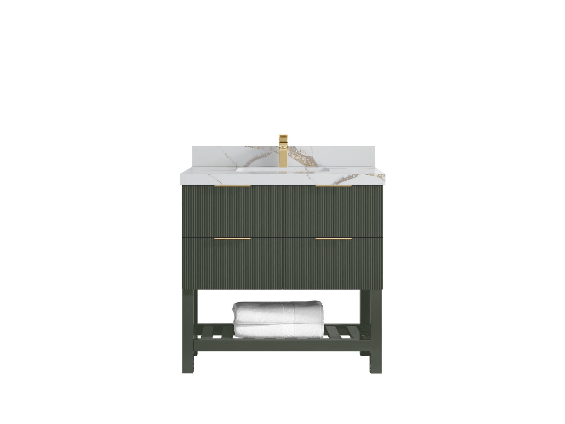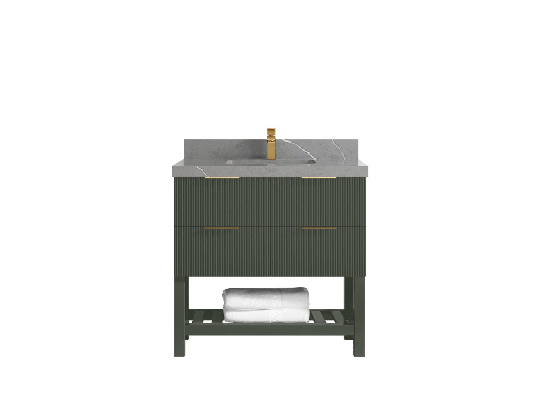 Catalina 36 in. W x 22 in. D Single Sink Bathroom Vanity in Pewter Green with 2 in Calacatta Gold Quartz Countertop - Top View