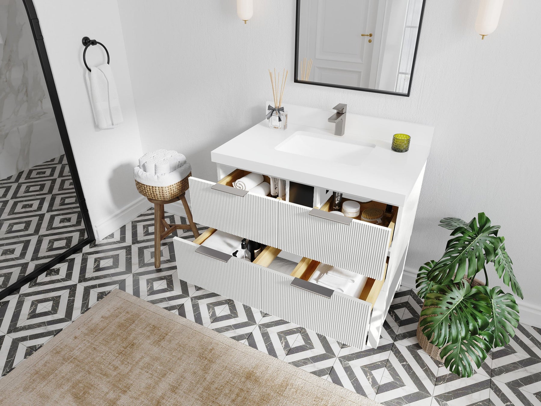 Faucet Hole(S): Comes with Single Faucet, 8 (in.) Widespread Faucet, Wall mount Faucets - Only Available for White Quartz and Carrara Quartz. (PLEASE ADD THIS CONFIGURATION UNDER COUNTERTOPS SECTION )