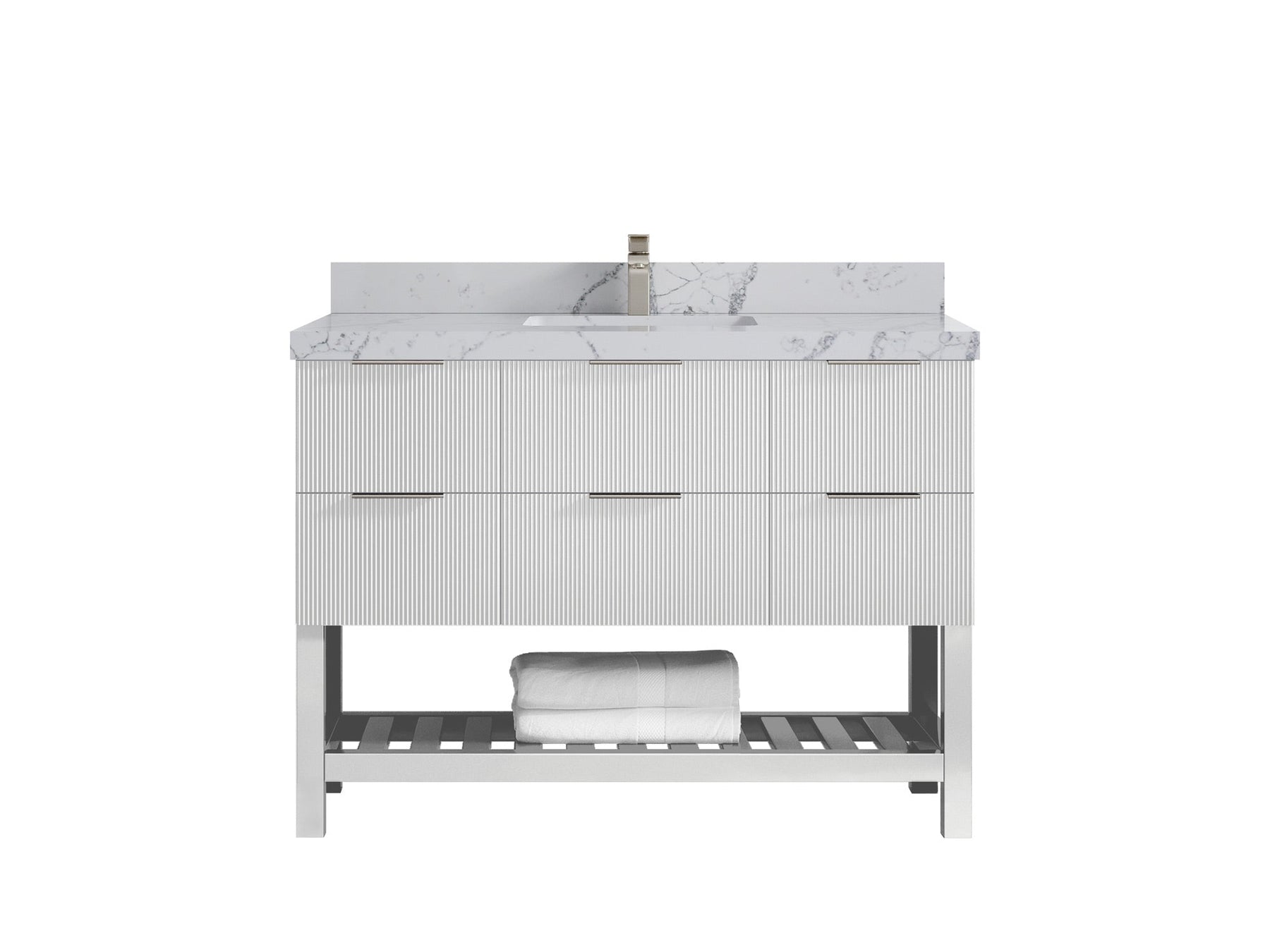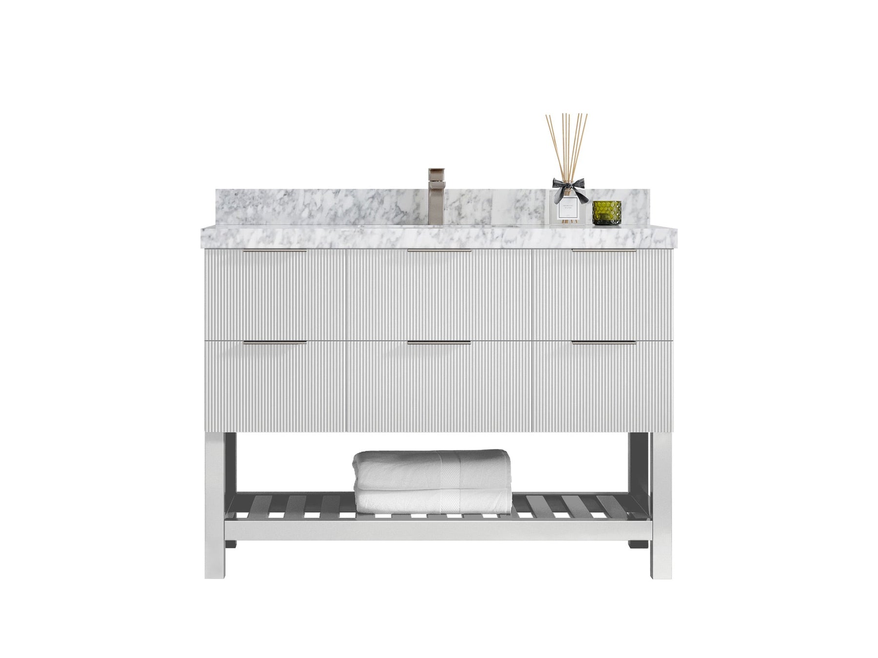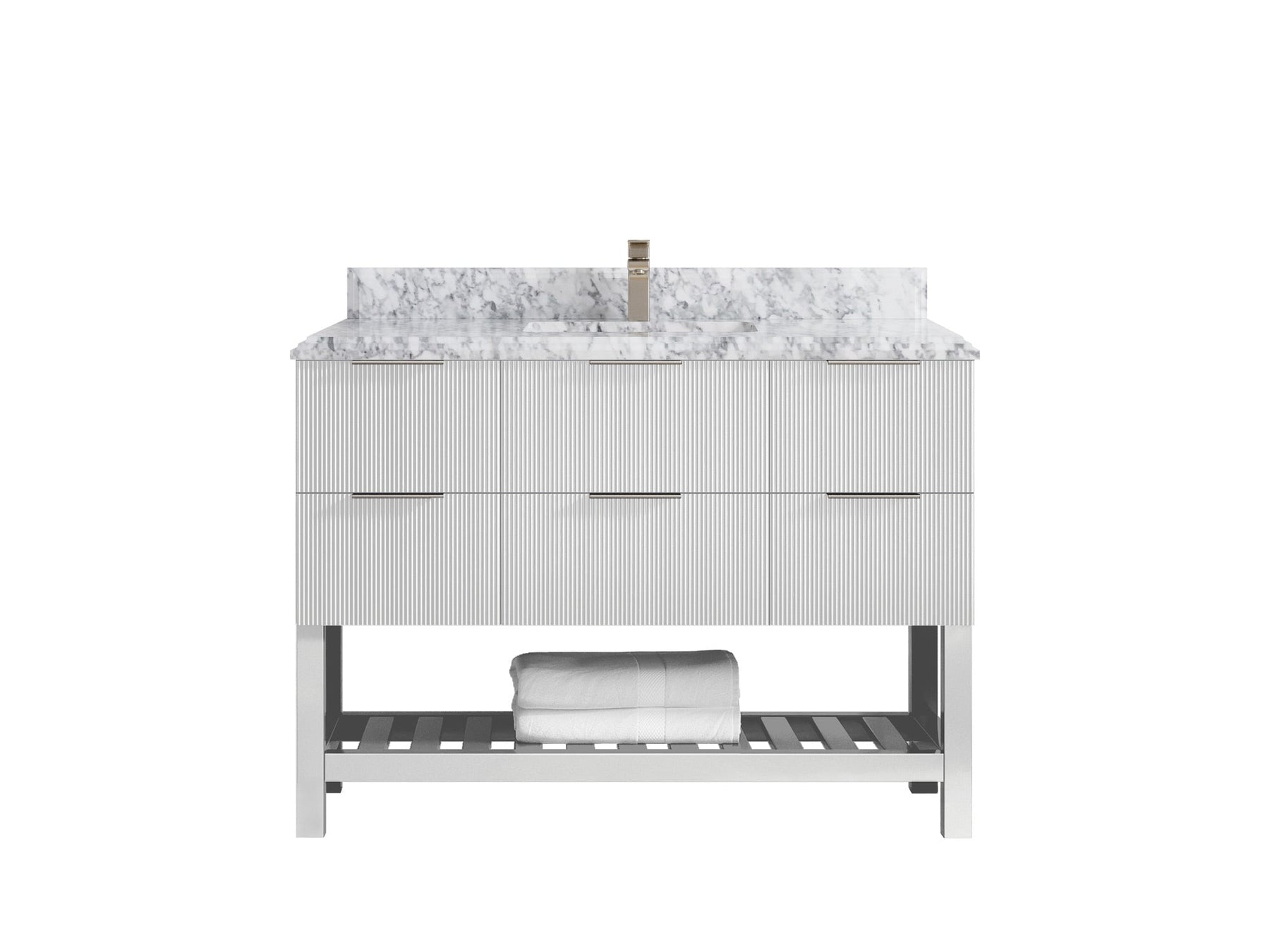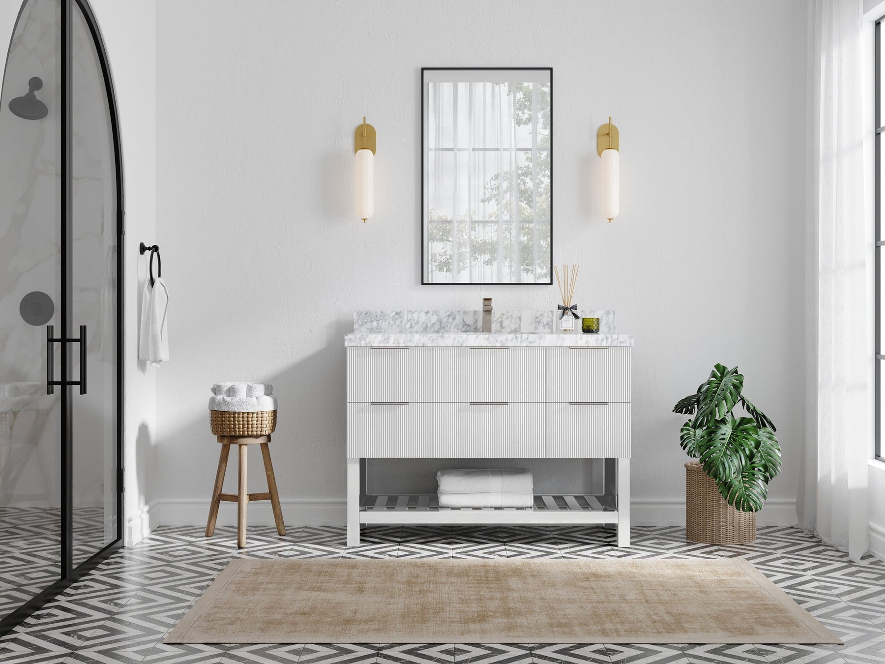 Vanity Countertops options: For Calacatta Laza Quartz, Empira White Quartz, Pure White Quartz we have 2 options Straight-Mitered Edge & Double Cove Edge, For Calacatta Black Quartz, Calacatta Gold Quartz, Calacatta Nuvo Quartz, Carrara Marble, Carrara Quartz, Pearl Light Gray Quartz, Piatra Gray Quartz, Venatino Quartz, and Light Concrete Gray Quartz we only have Straight - Mitered Edge option.