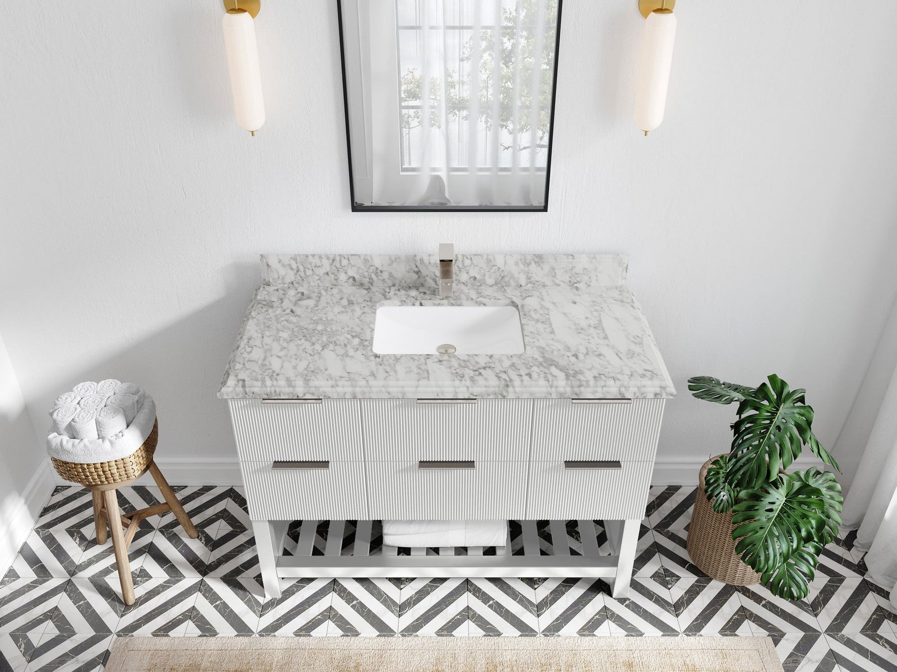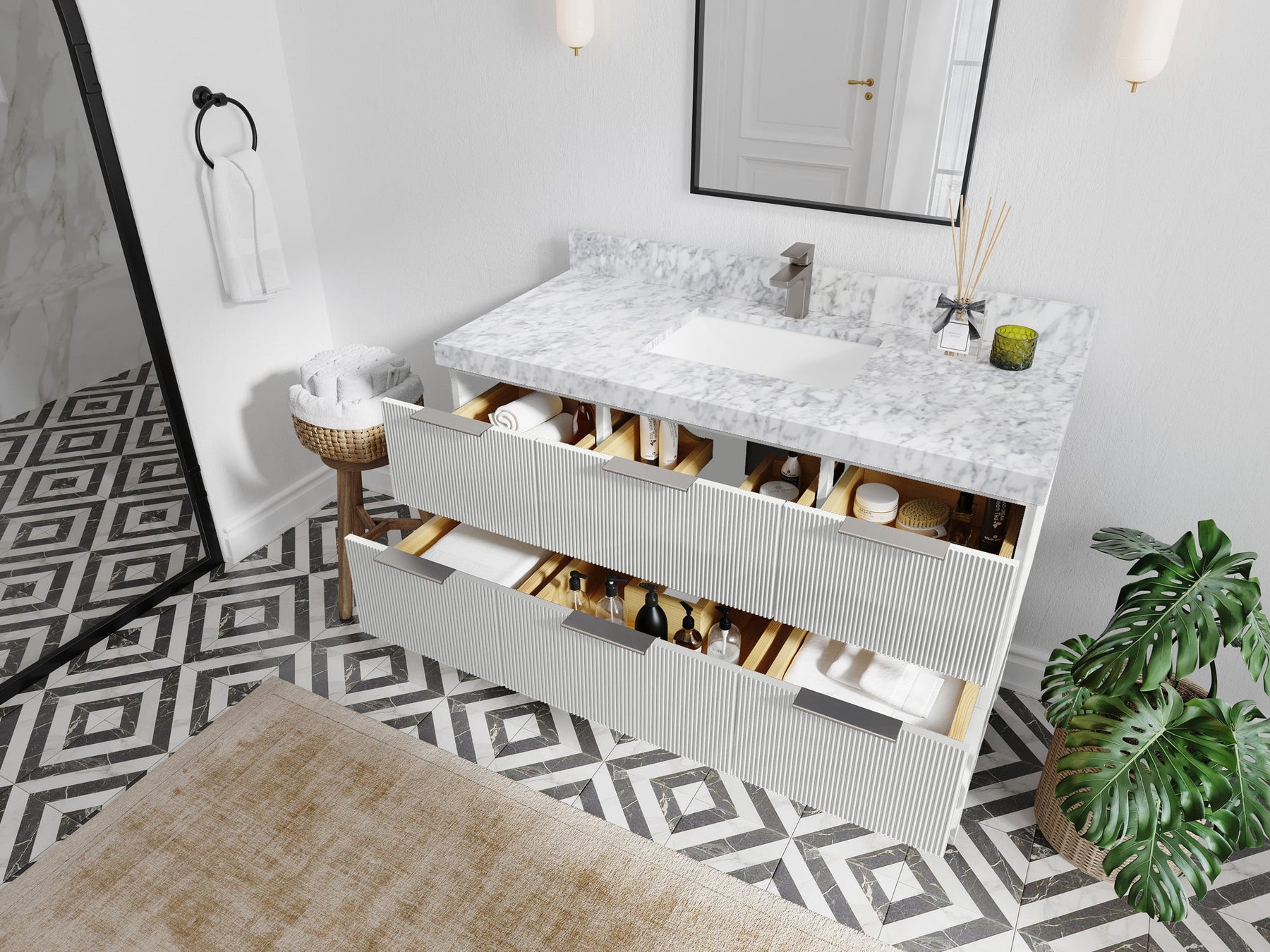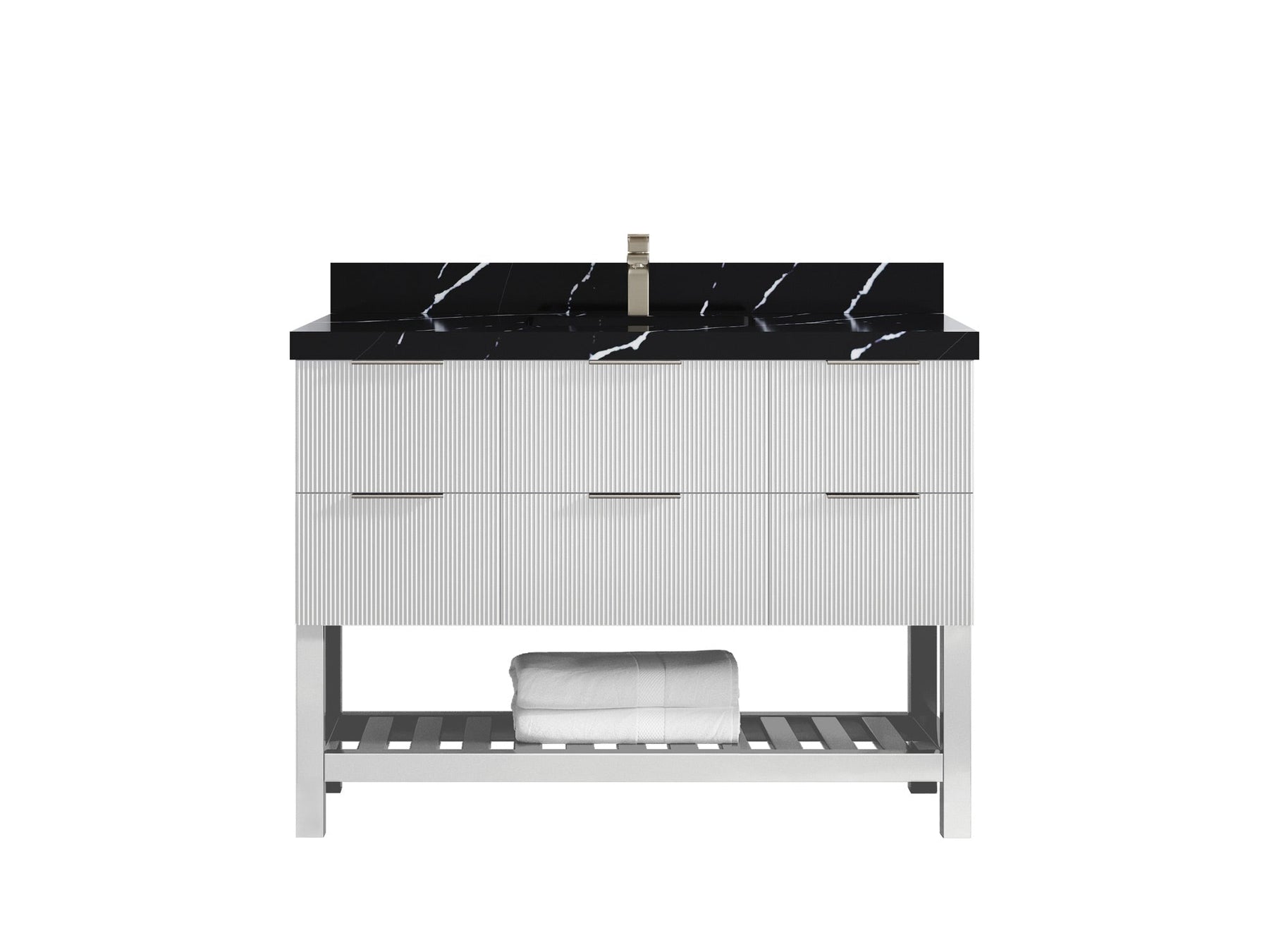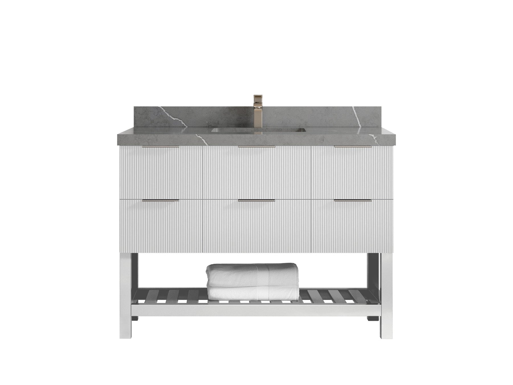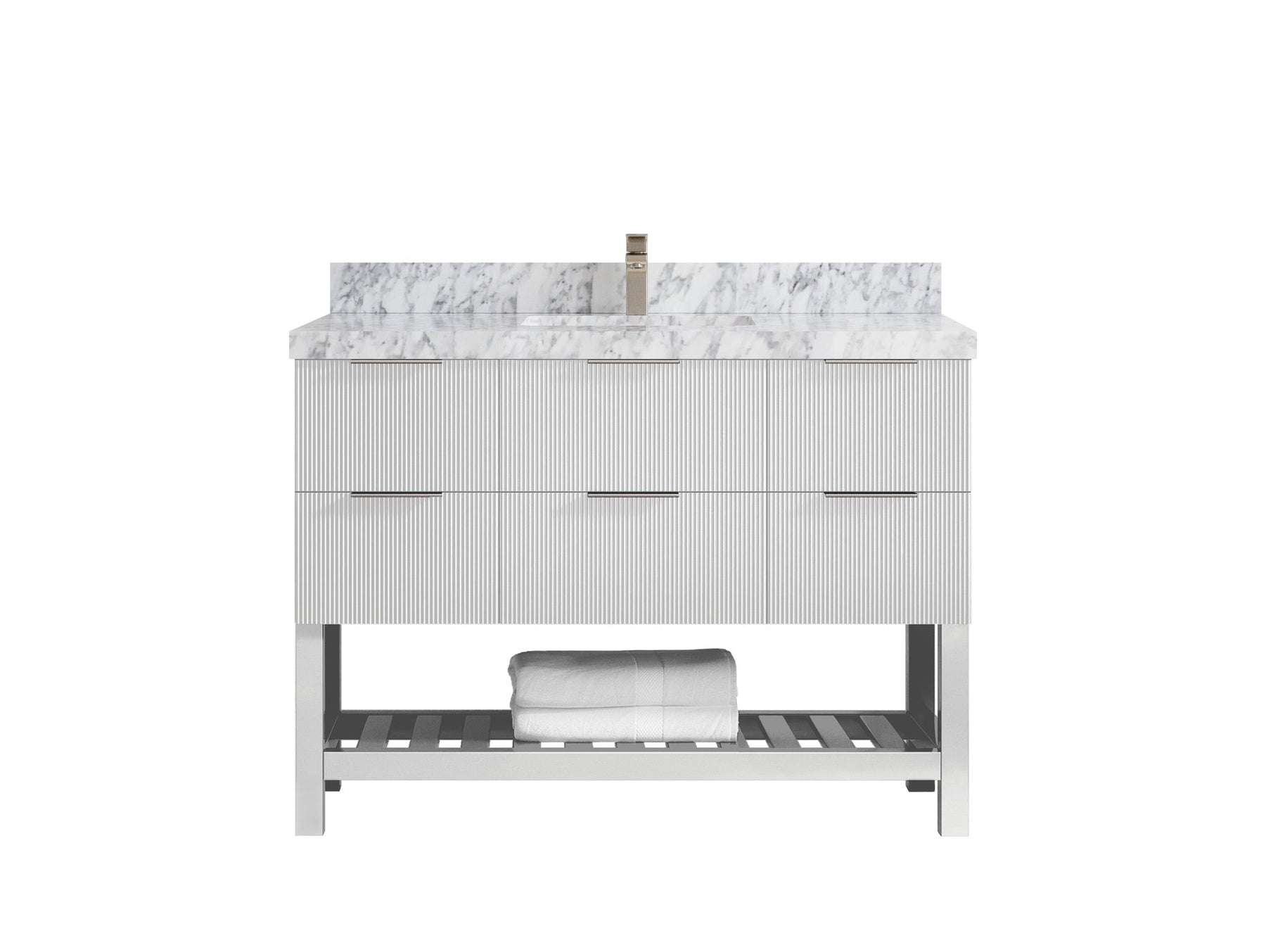 Vanity Countertops options: For Calacatta Laza Quartz, Empira White Quartz, Pure White Quartz we have 2 options Straight-Mitered Edge & Double Cove Edge, For Calacatta Black Quartz, Calacatta Gold Quartz, Calacatta Nuvo Quartz, Carrara Marble, Carrara Quartz, Pearl Light Gray Quartz, Piatra Gray Quartz, Venatino Quartz, and Light Concrete Gray Quartz we only have Straight - Mitered Edge option.