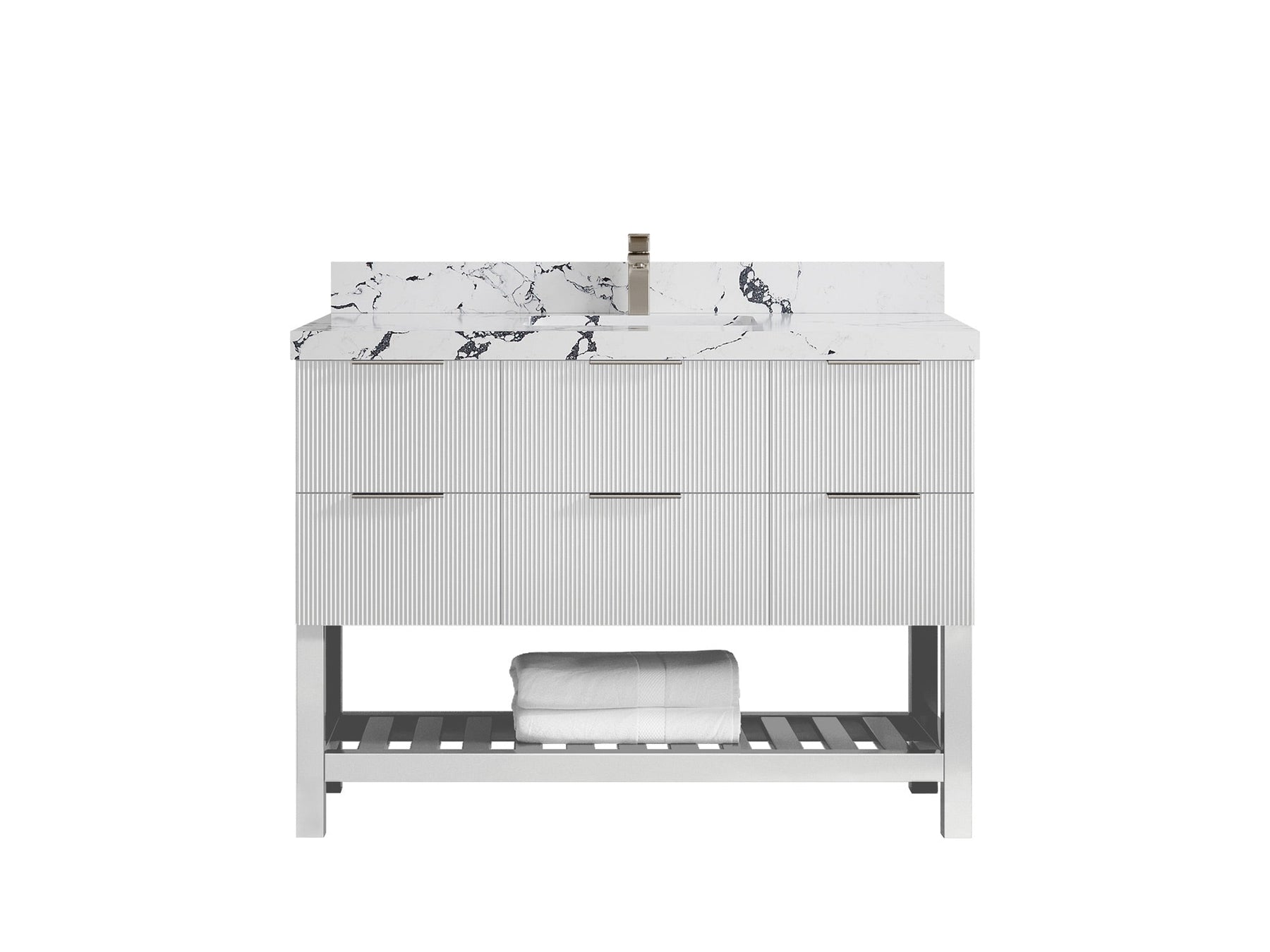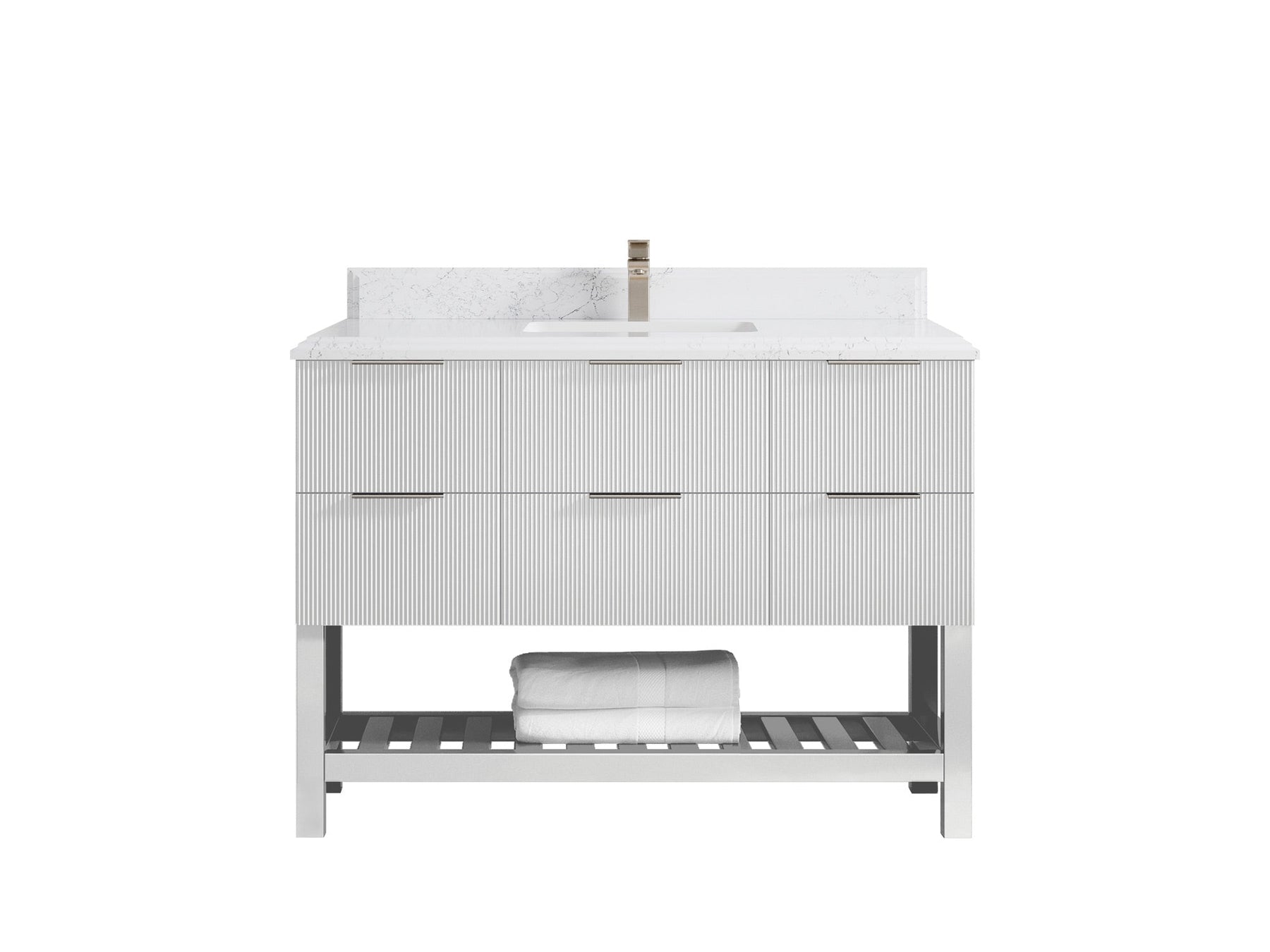 Faucet Hole(S): Comes with Single Faucet, 8 (in.) Widespread Faucet, Wall mount Faucets - Only Available for White Quartz and Carrara Quartz.