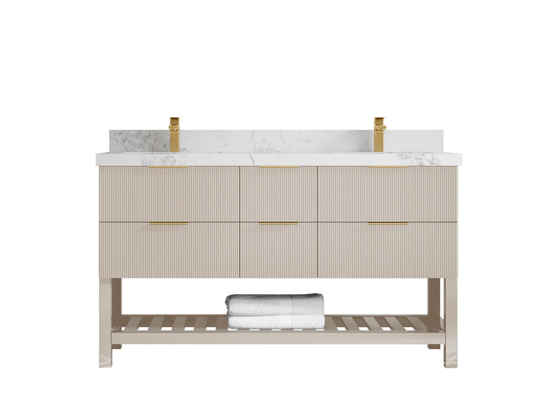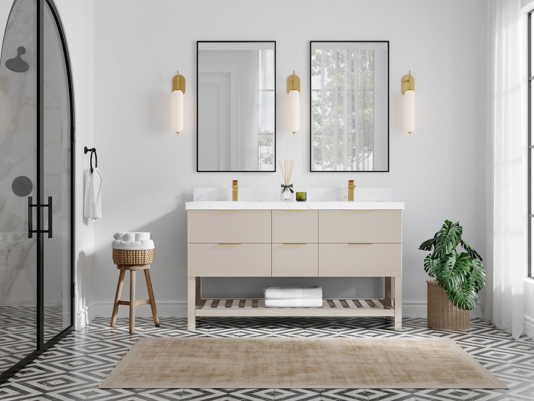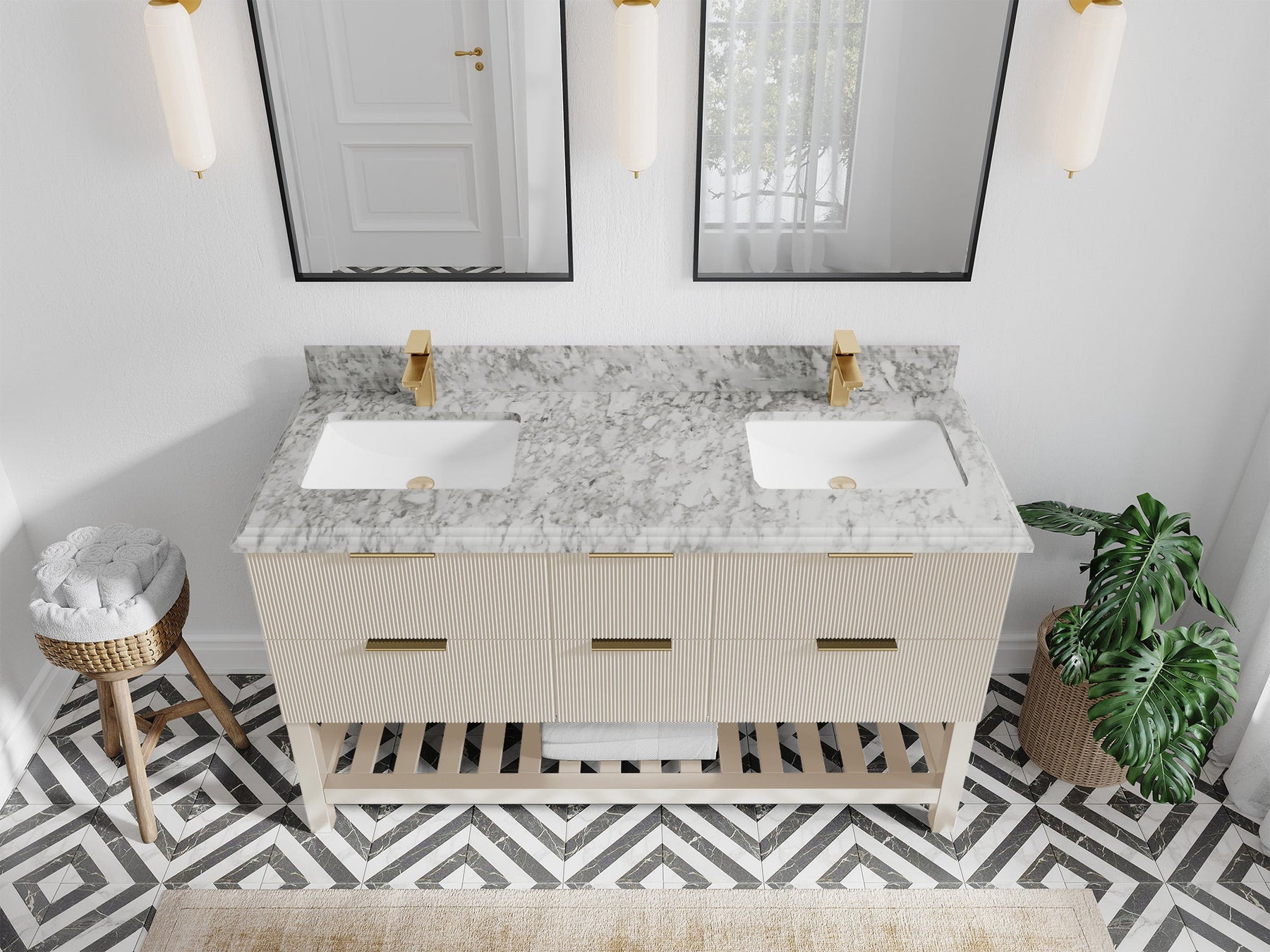 Catalina 60 in W x 22 in D Free Standing Reeded Double Sink Bathroom Vanity - Willow Bath and Vanity