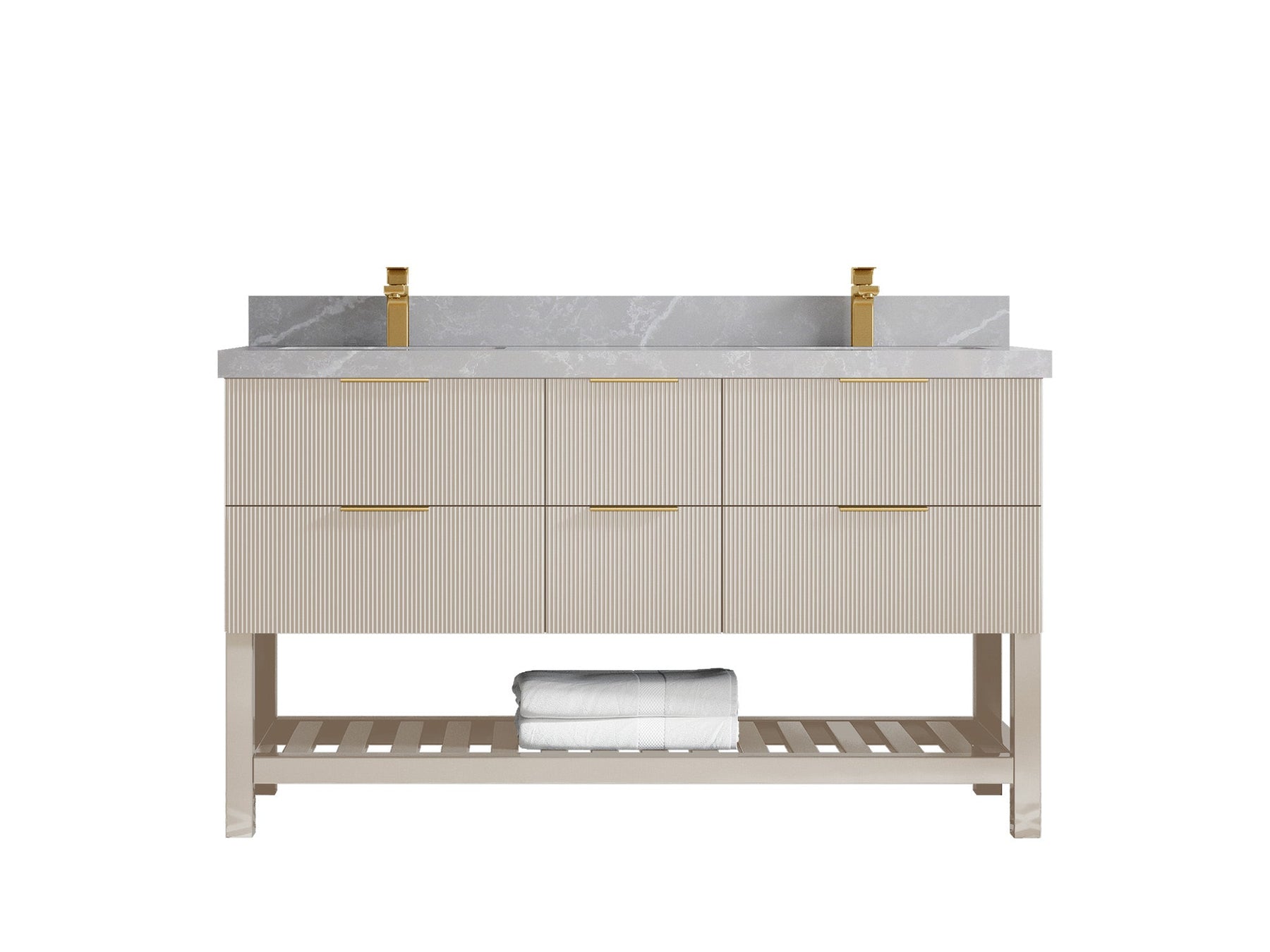 Catalina 60 in. W x 22 in. D Double Sink Bathroom Vanity in Fine Grain with 1.5 in Double Cove Edge Empira Quartz Countertop- Top View