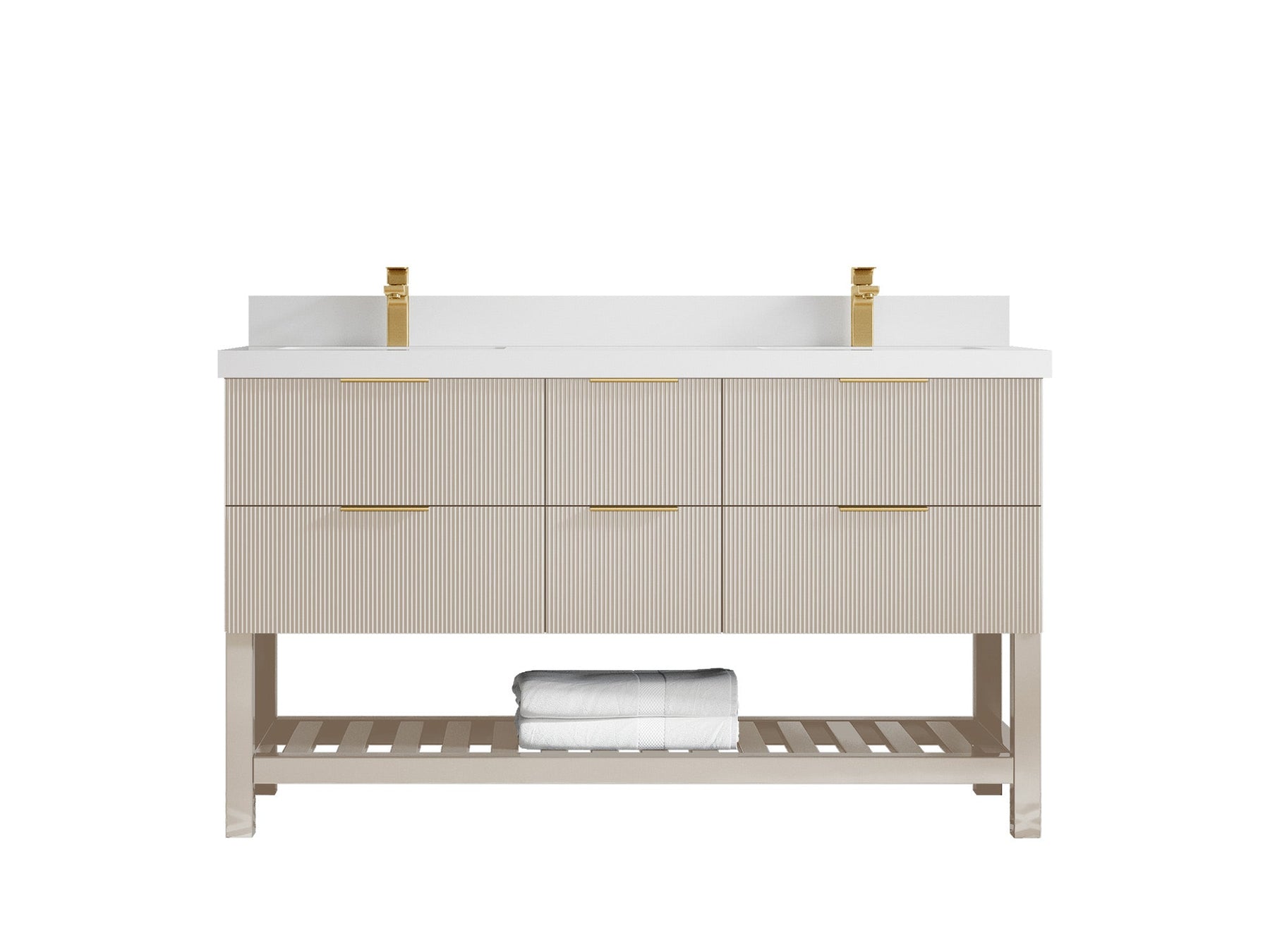 Catalina 60 in W x 22 in D Free Standing Reeded Double Sink Bathroom Vanity | Fine Grain