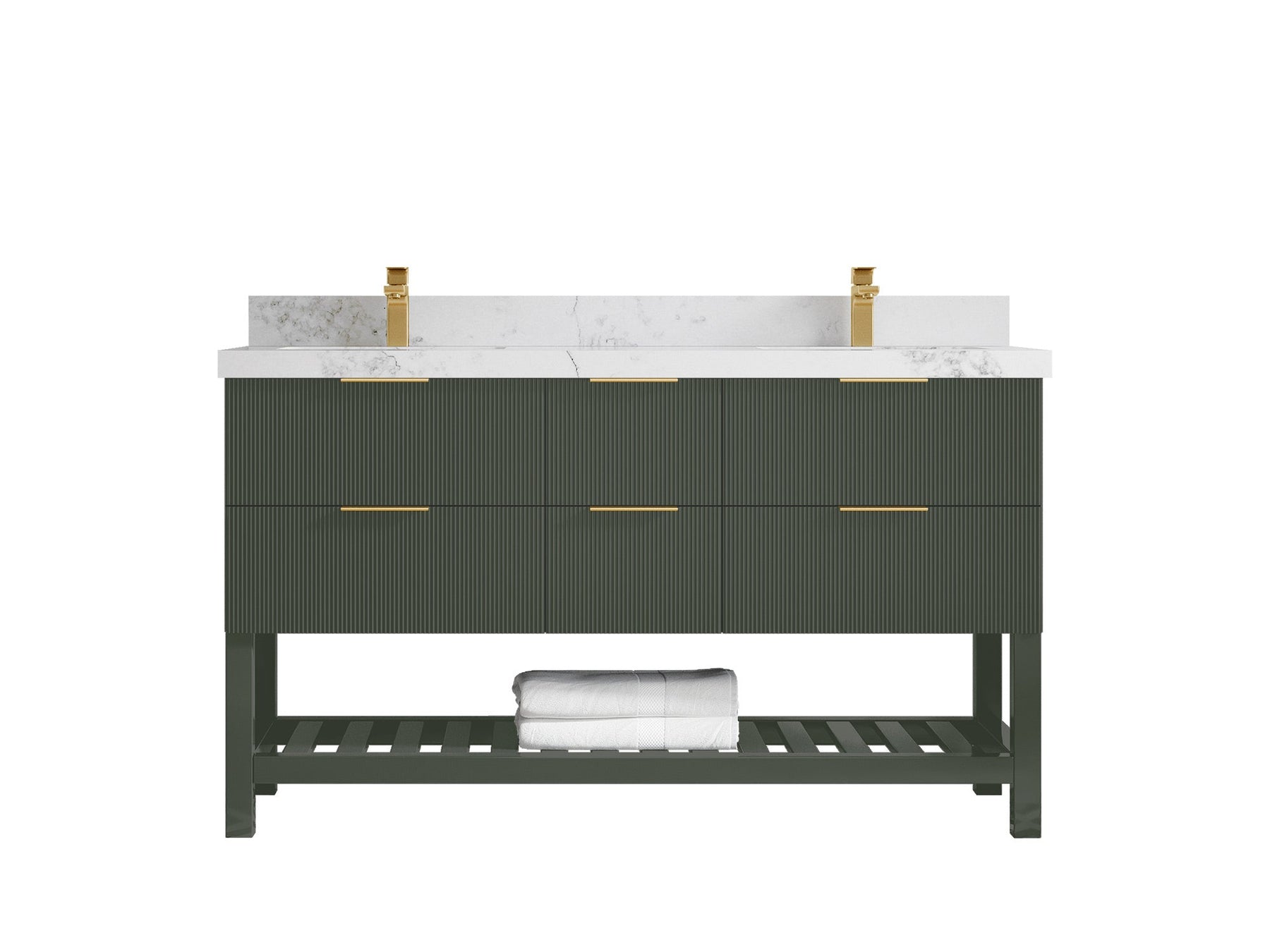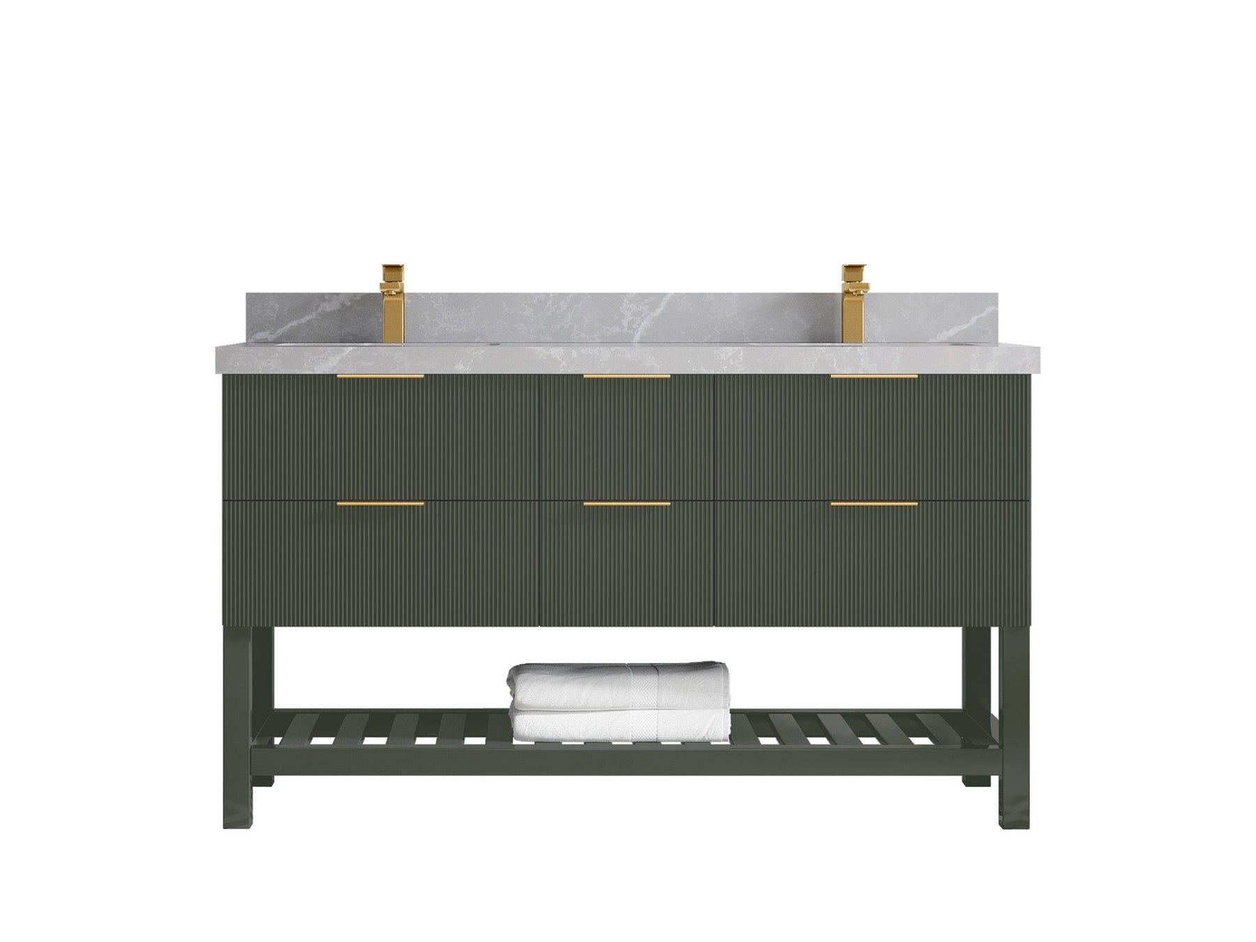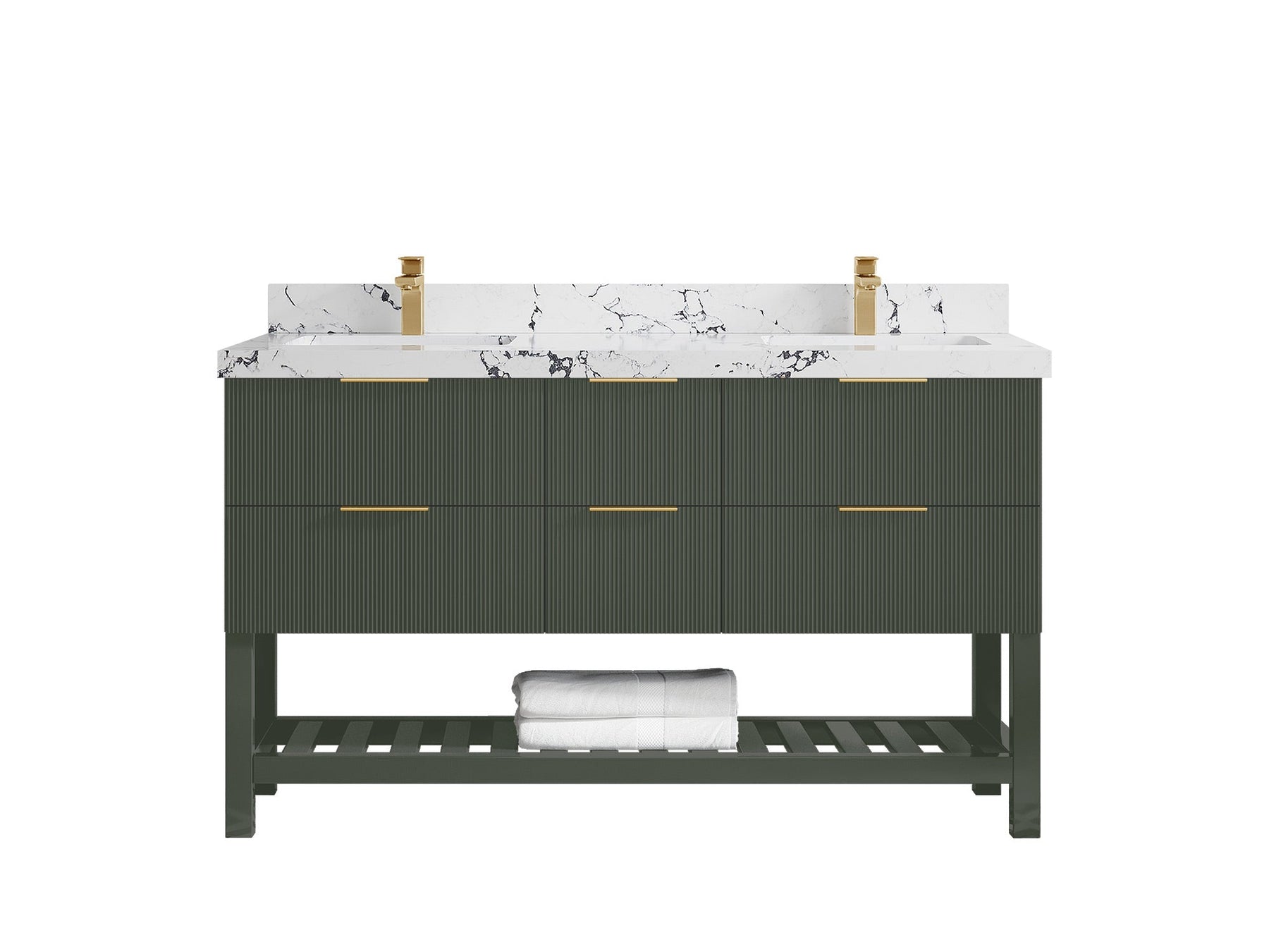 Catalina 60 in. W x 22 in. D Double Sink Bathroom Vanity in Pewter Green with 1.5 in Double Cove Edge Empira Quartz Countertop- Top View