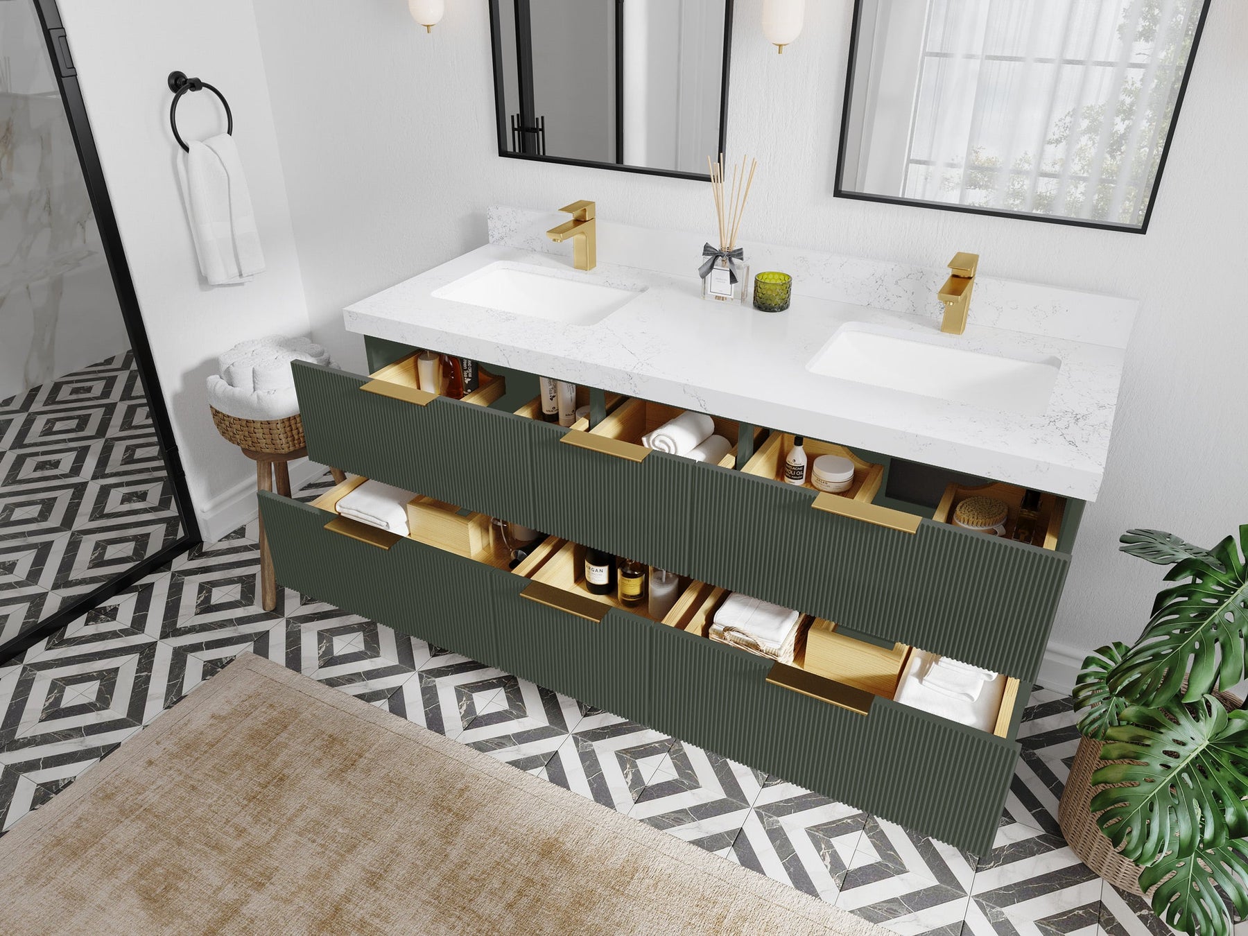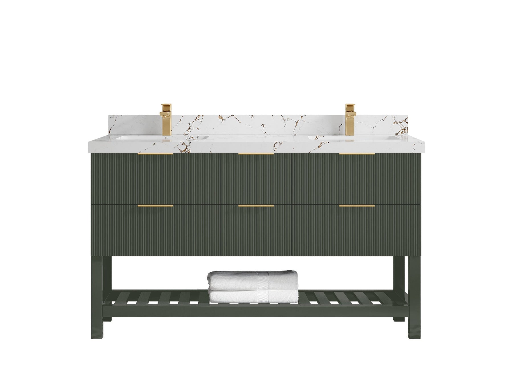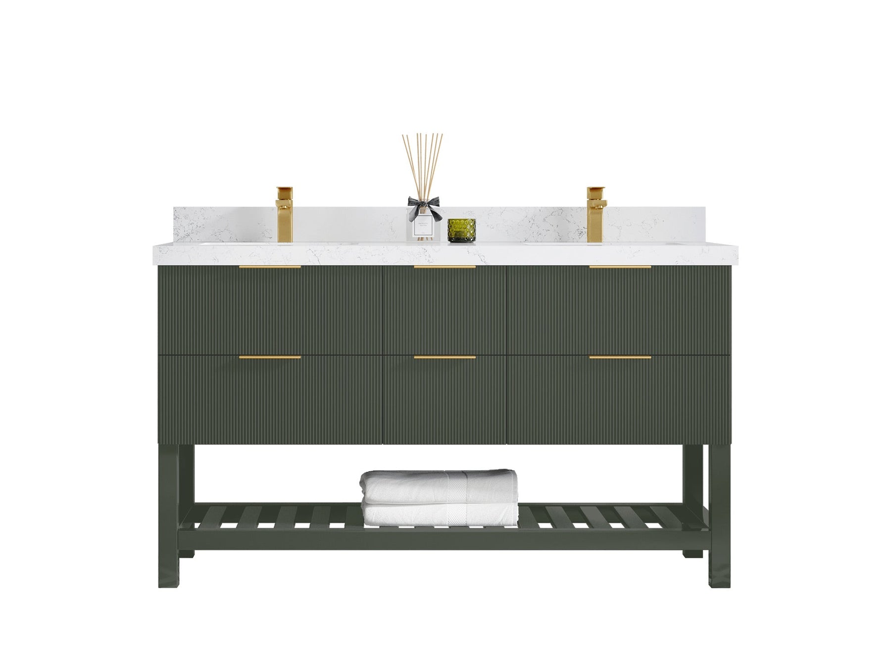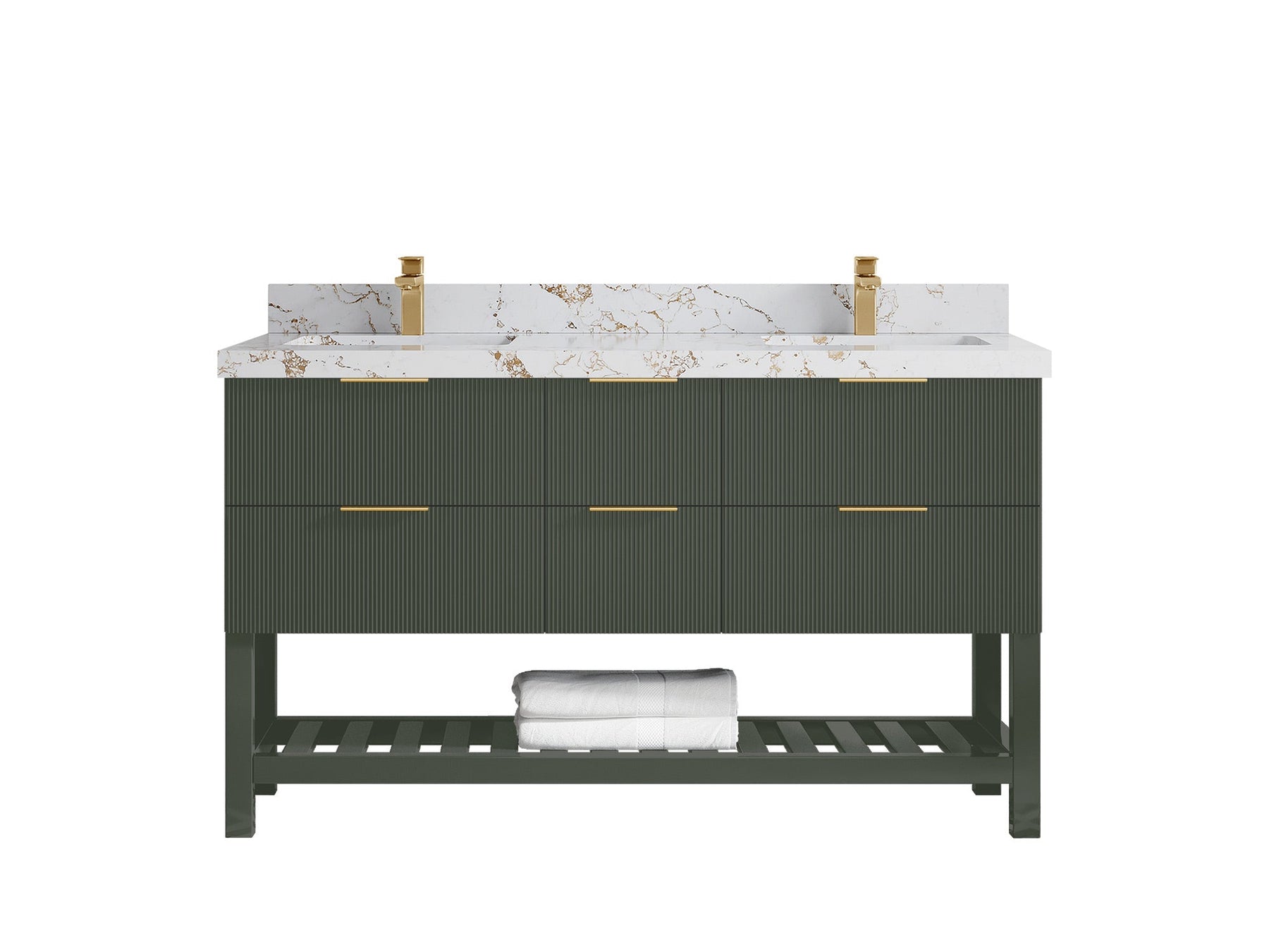 Catalina 60 in. W x 22 in. D Double Sink Bathroom Vanity in Pewter Green with 1.5 in Double Cove Edge Empira Quartz Countertop- Top View