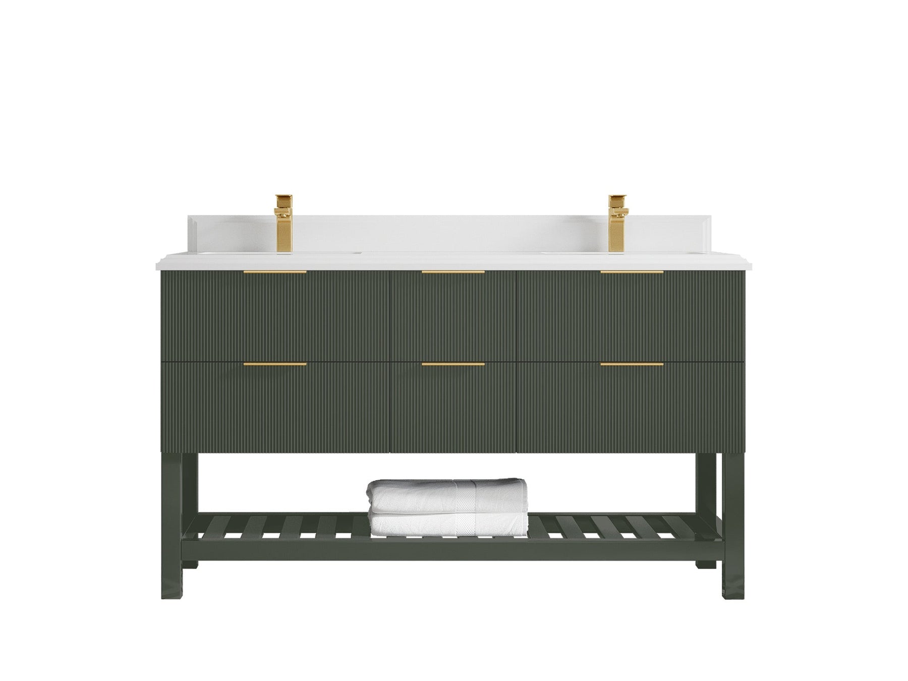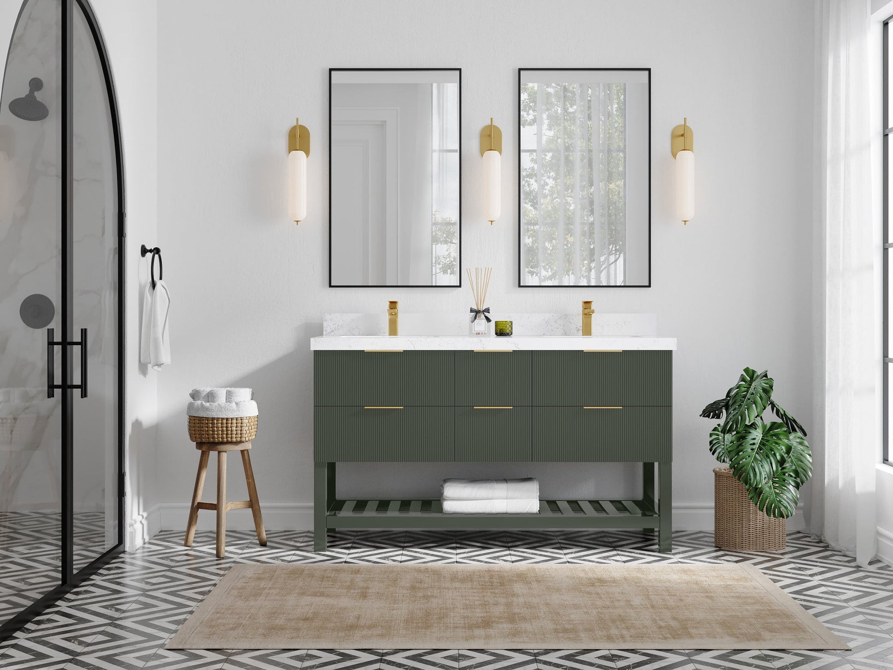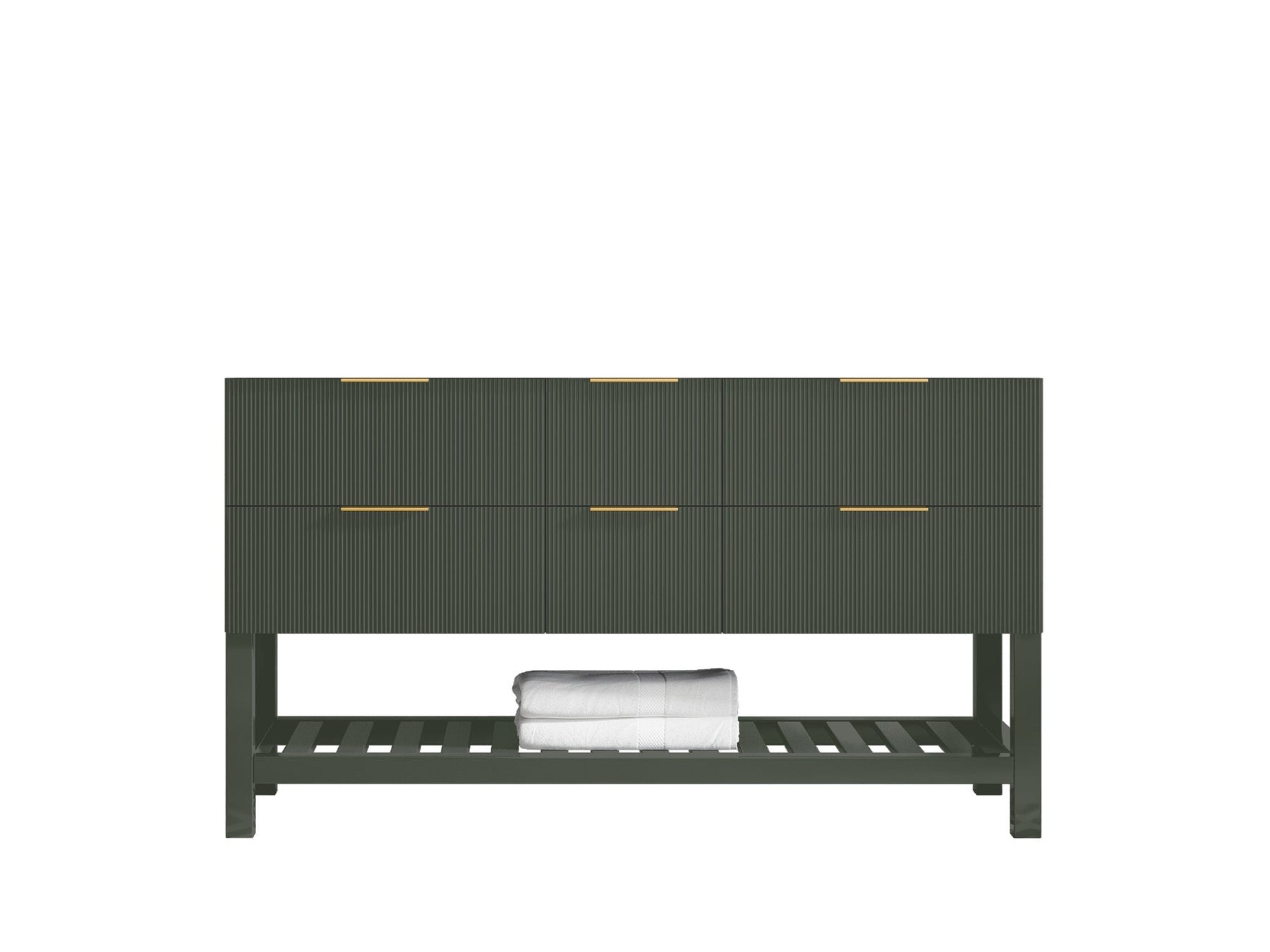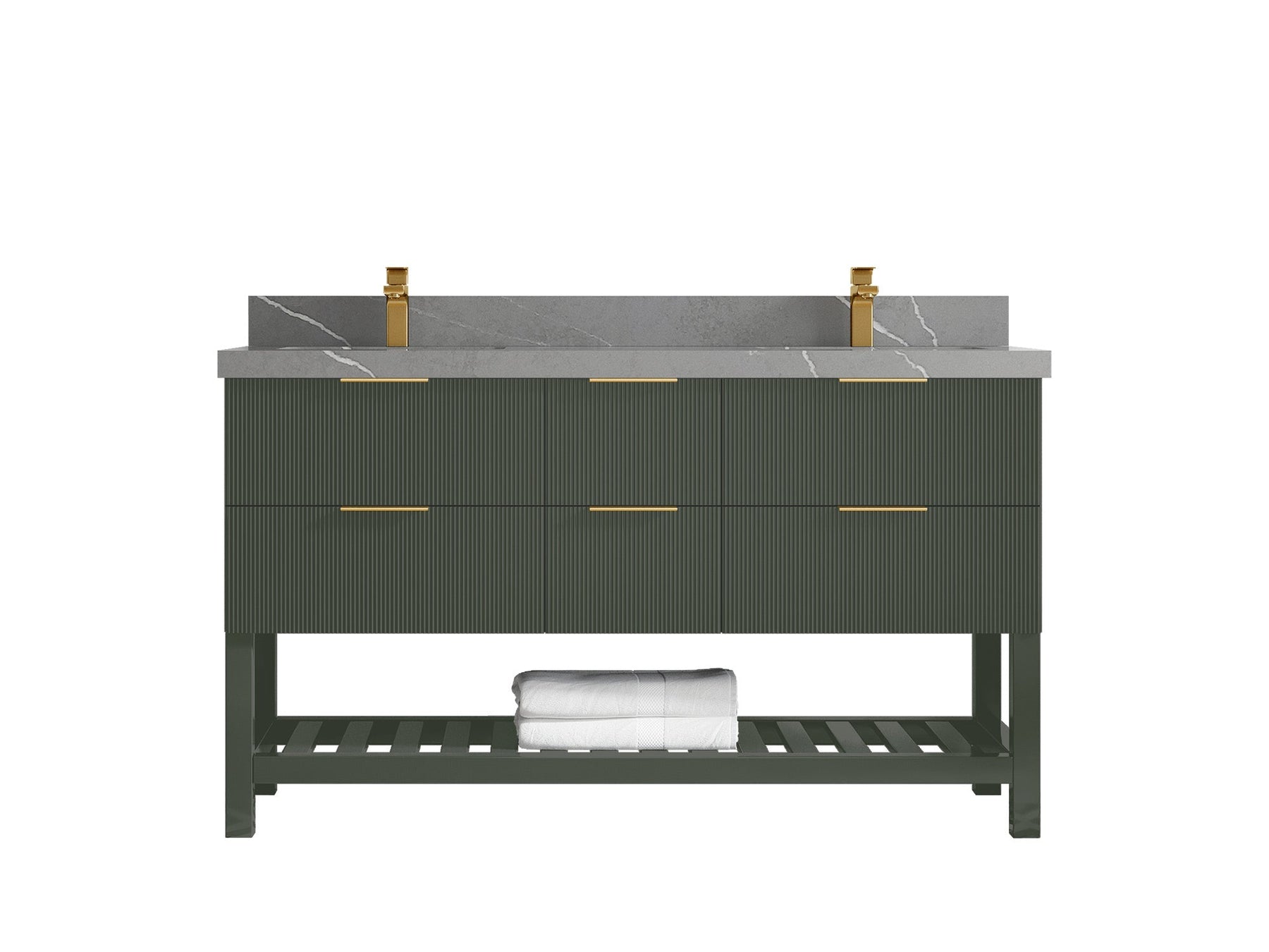 Catalina 60 in W x 22 in D Free Standing Reeded Double Sink Bathroom Vanity | Pewter Green