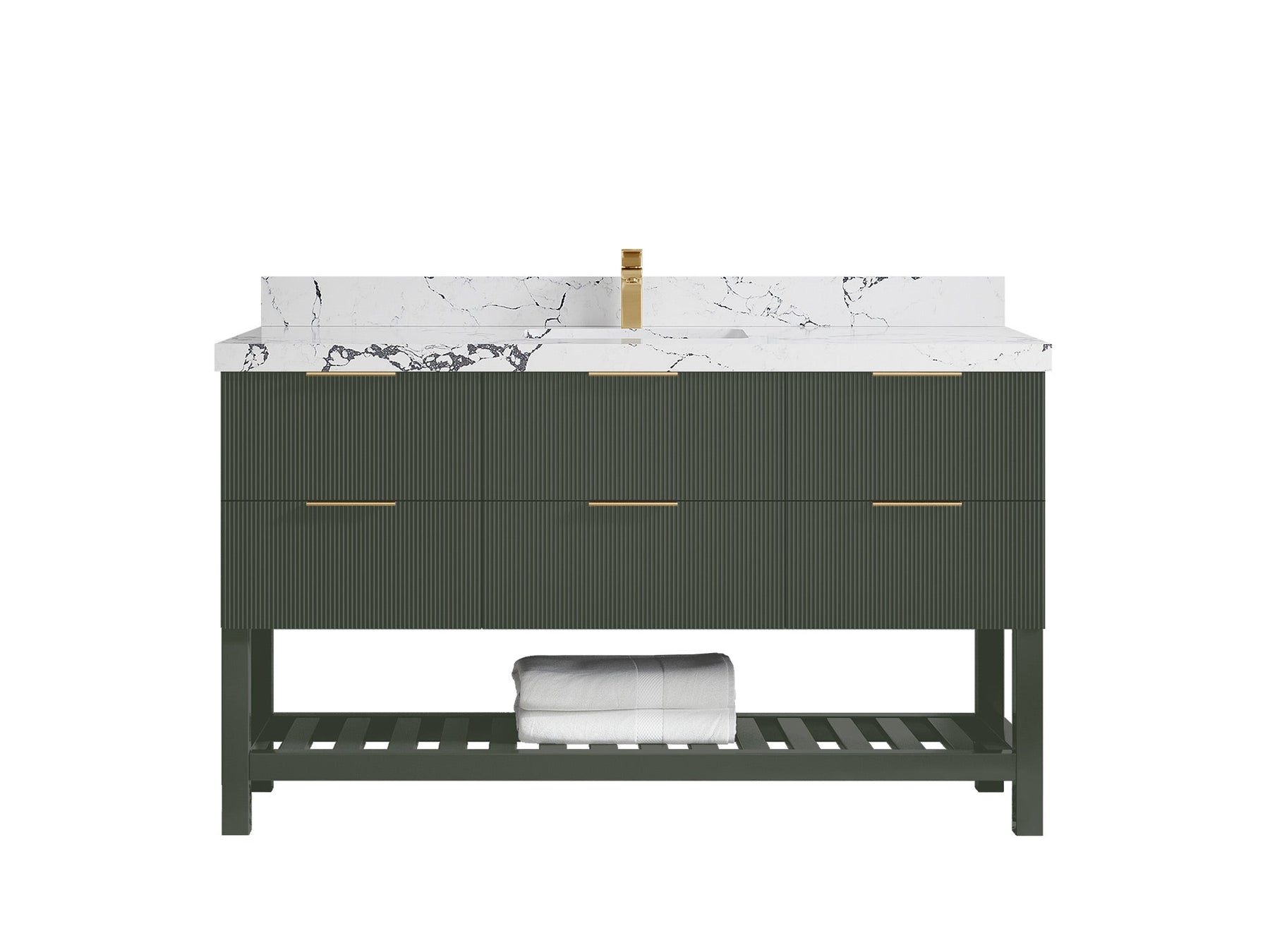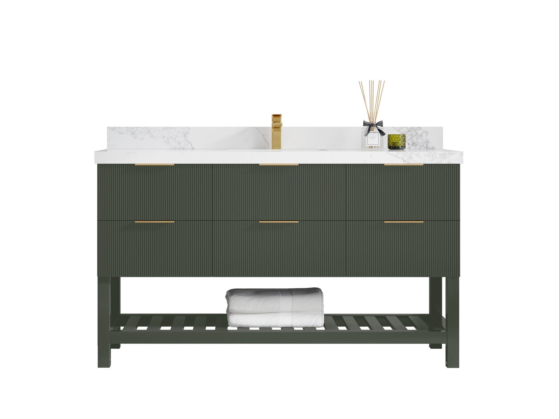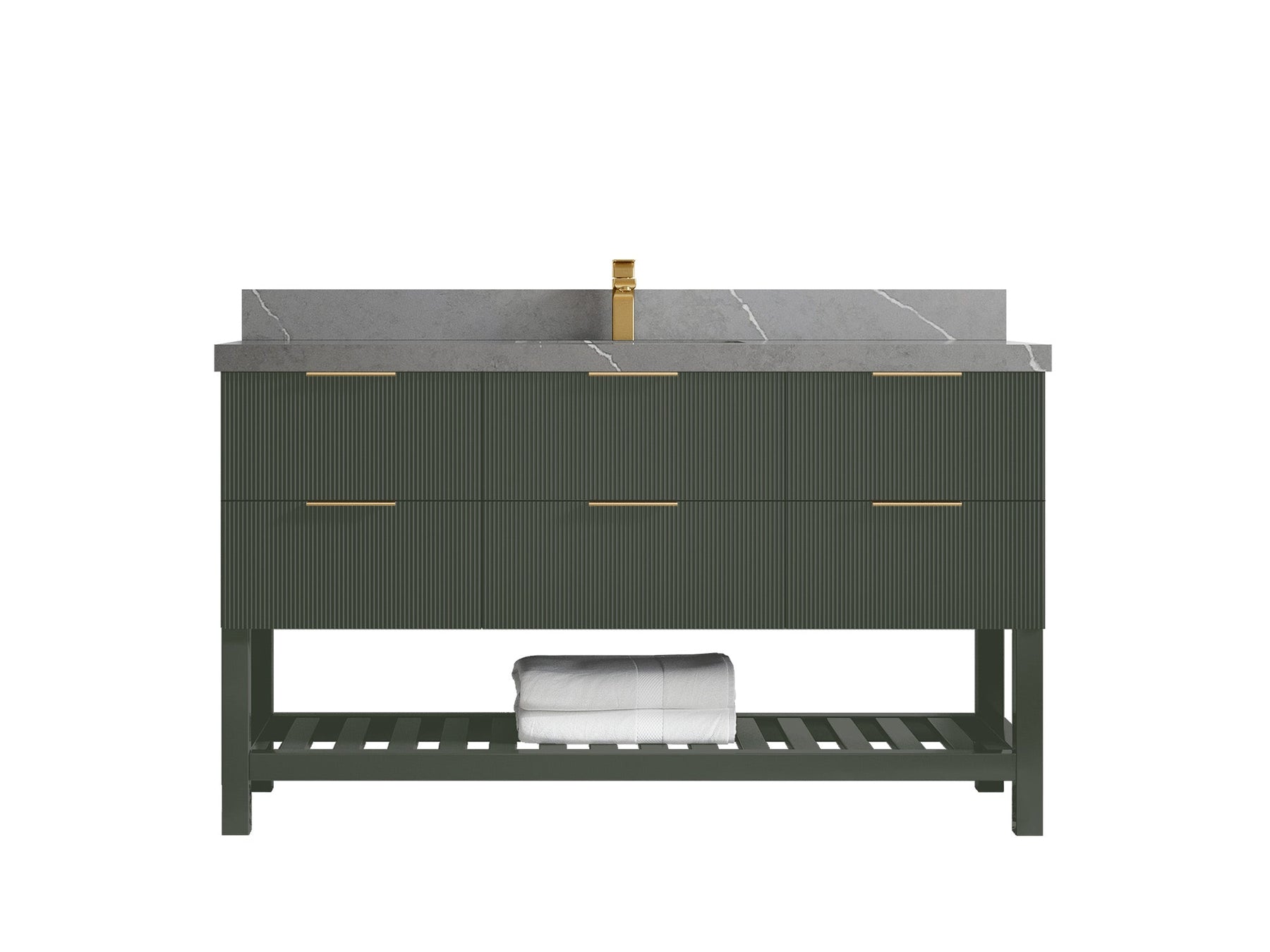 Catalina 60 in W x 22 in D Free Standing Reeded Single Sink Bathroom Vanity | Pewter Green