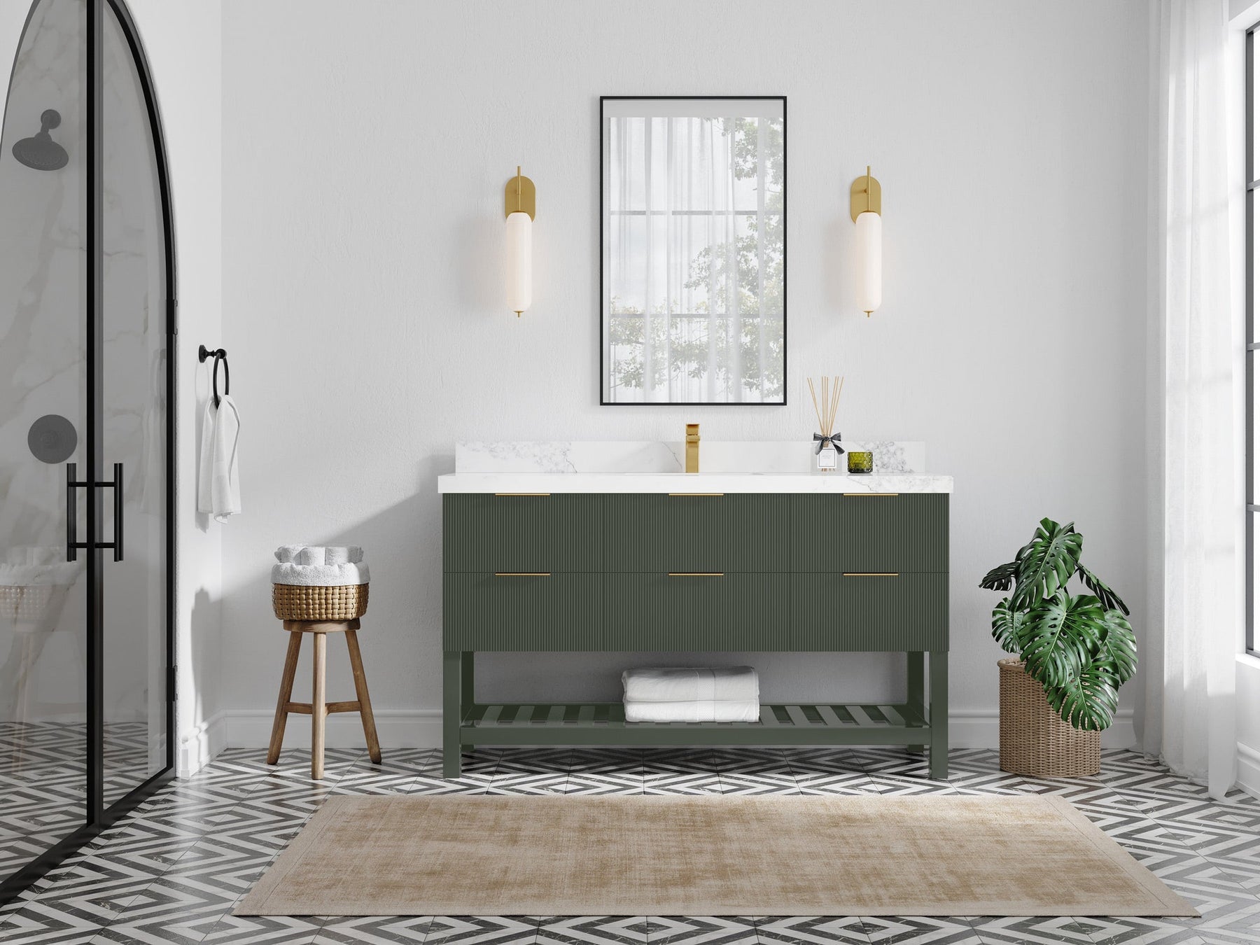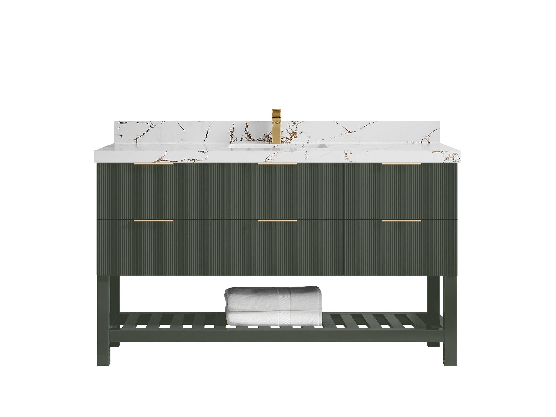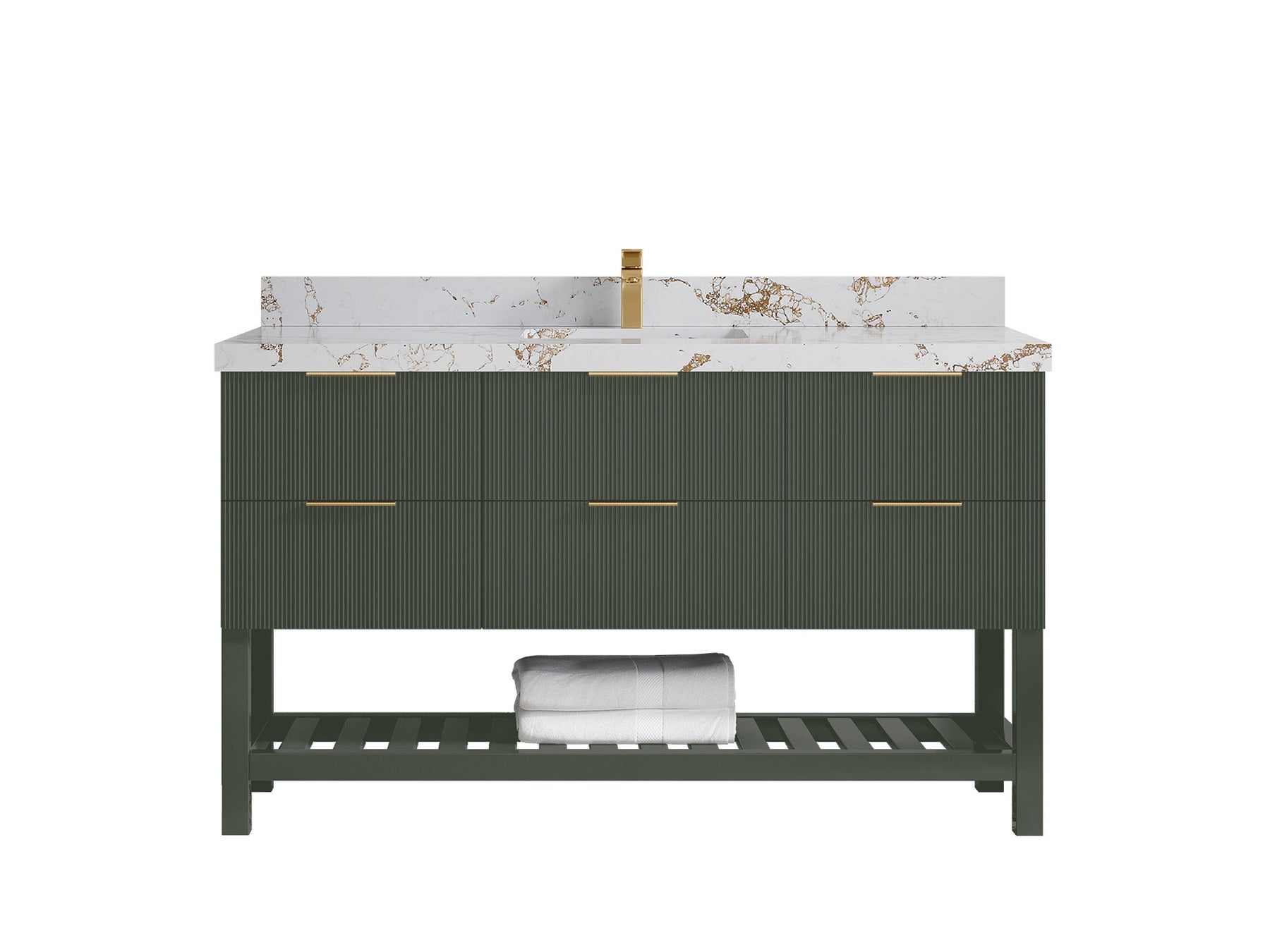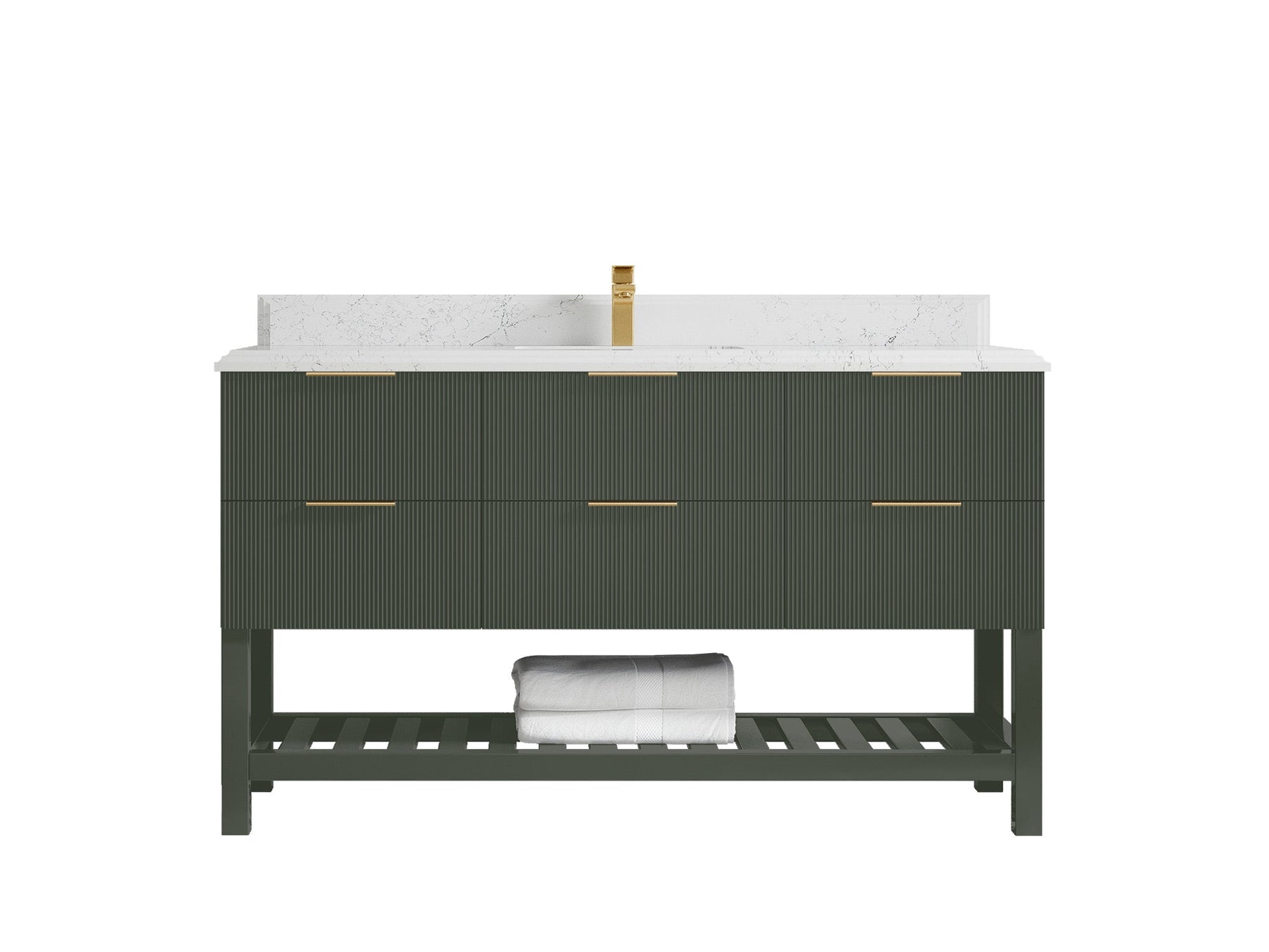 Catalina 60 in W x 22 in D Free Standing Reeded Single Sink Bathroom Vanity | Pewter Green