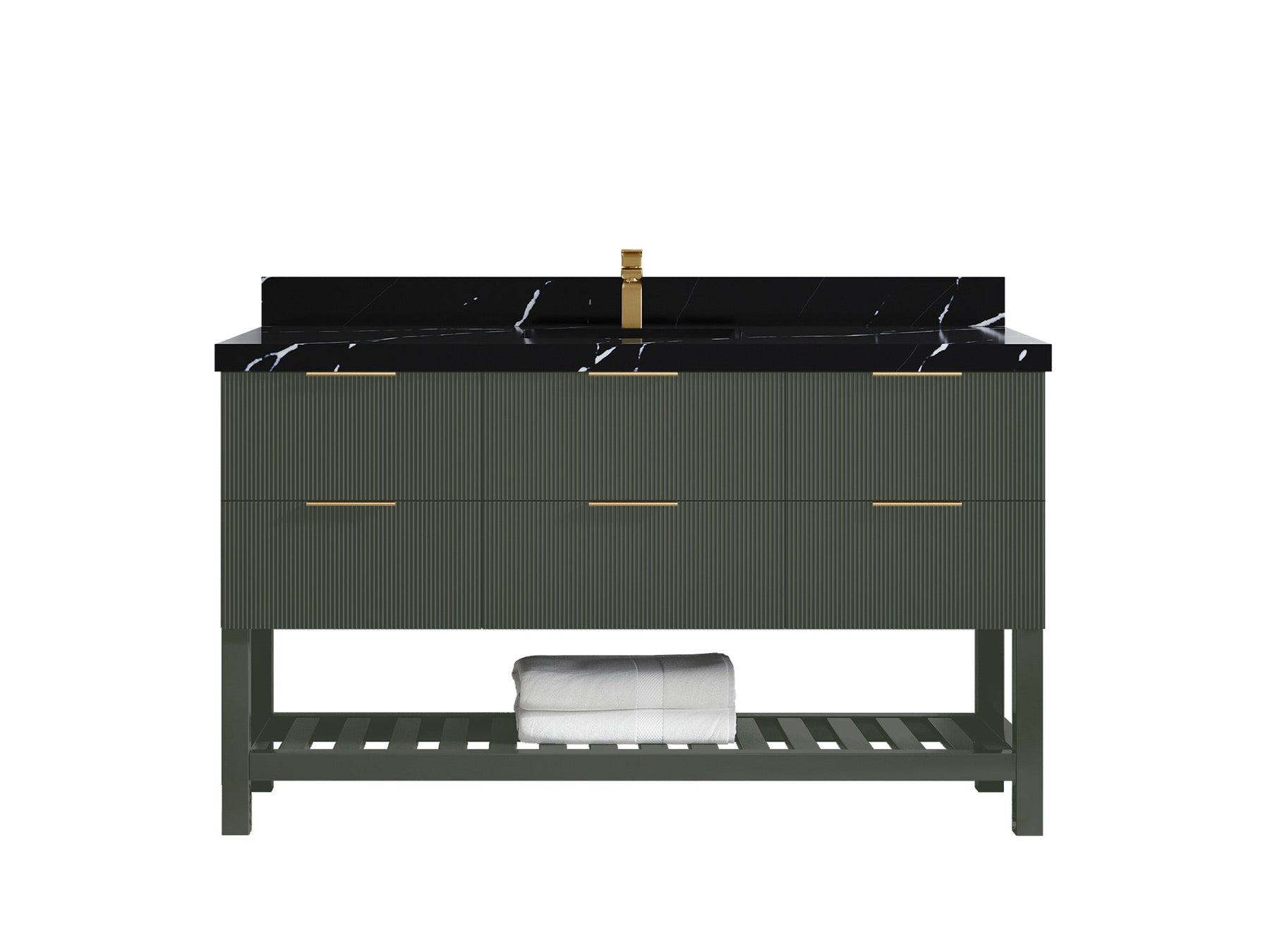 Catalina 60 in. W x 22 in. D Single Sink Bathroom Vanity in Pewter Green with 2 in Calacatta Black Quartz Countertop - Top View