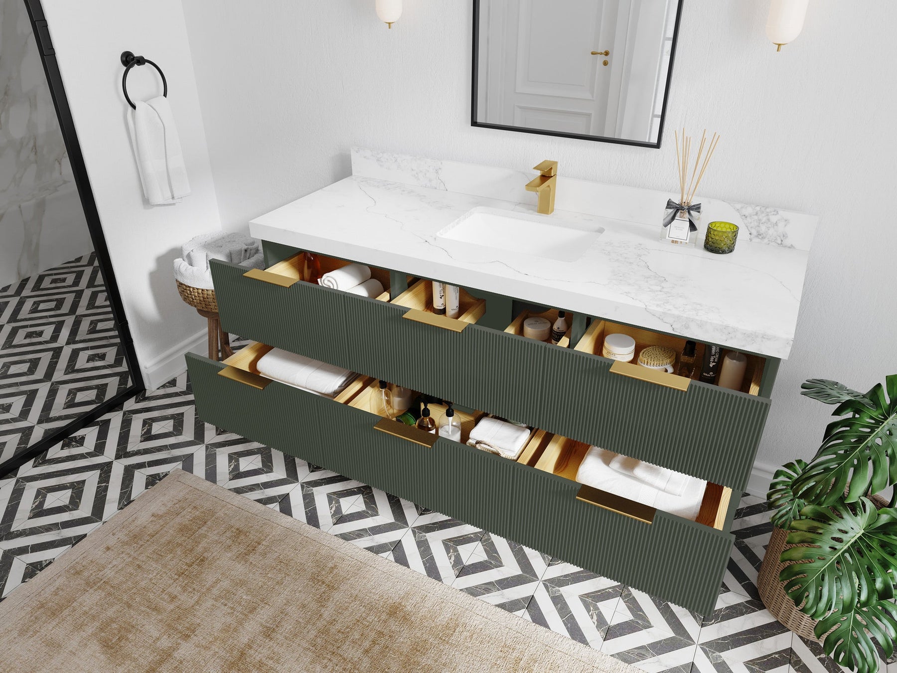 Catalina 60 in. W x 22 in. D Single Sink Bathroom Vanity in Pewter Green with 1.5 in Double Cove Edge Empira Quartz Countertop - Top View