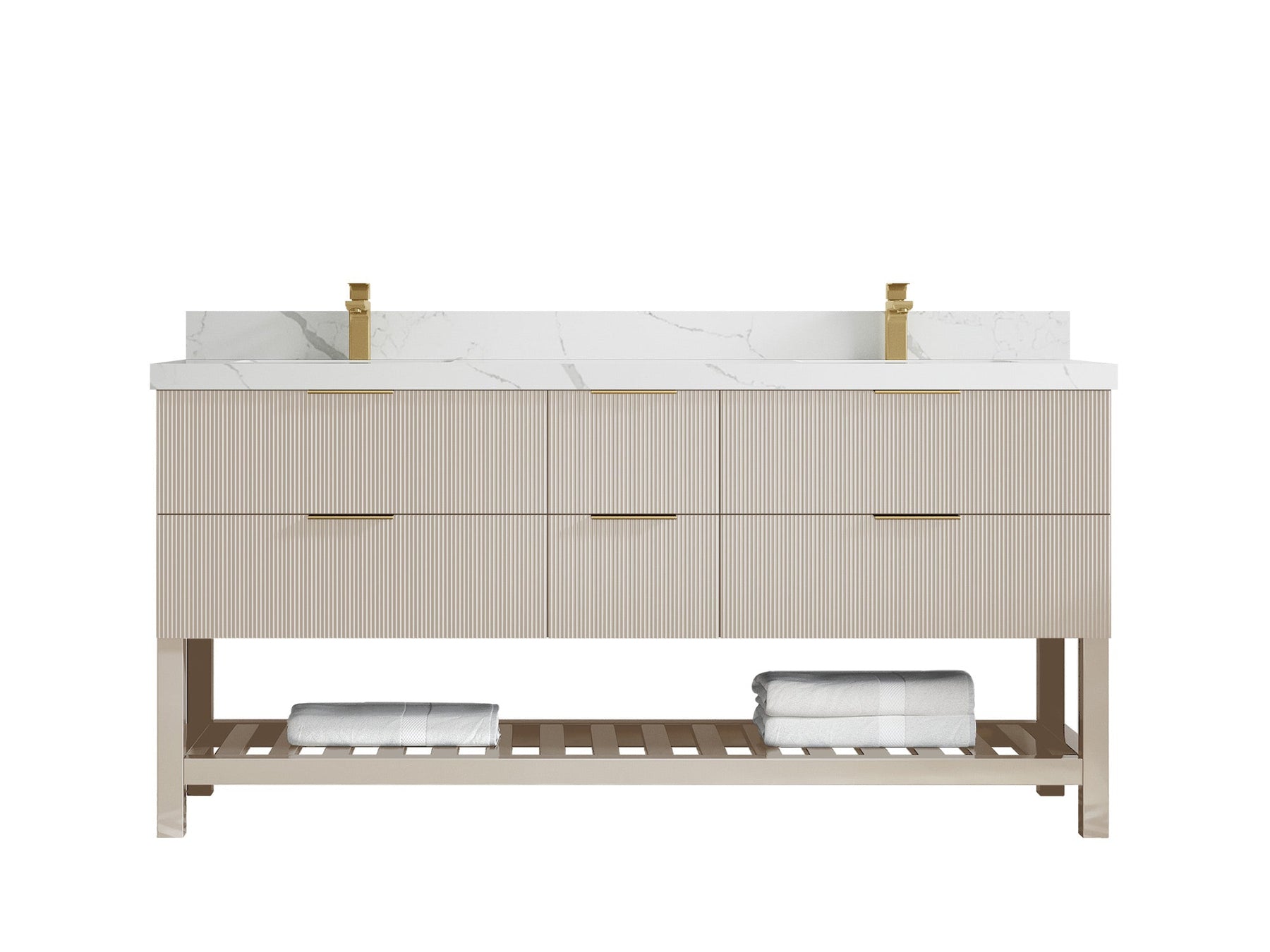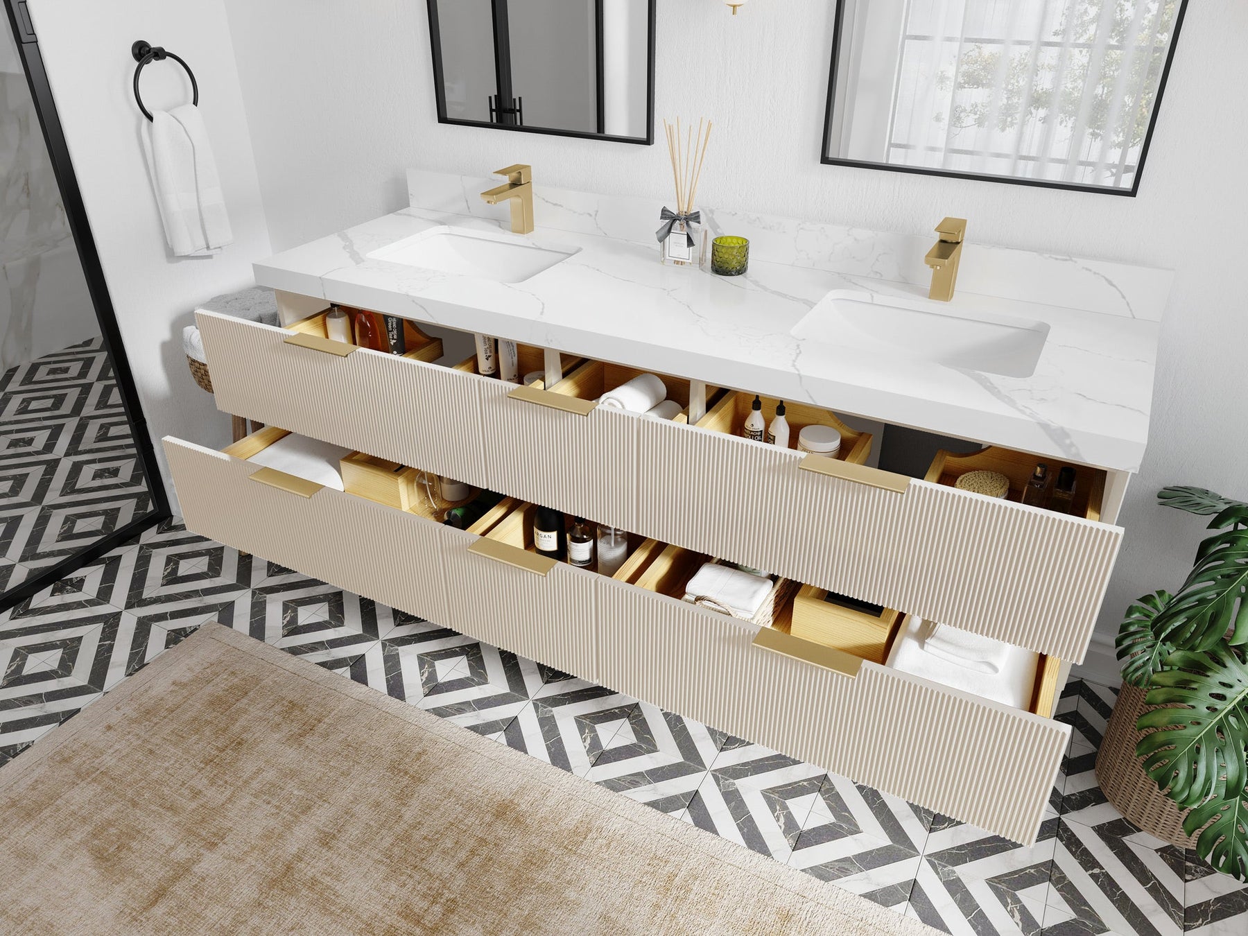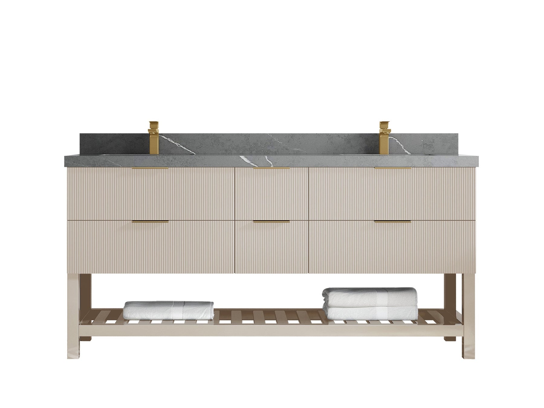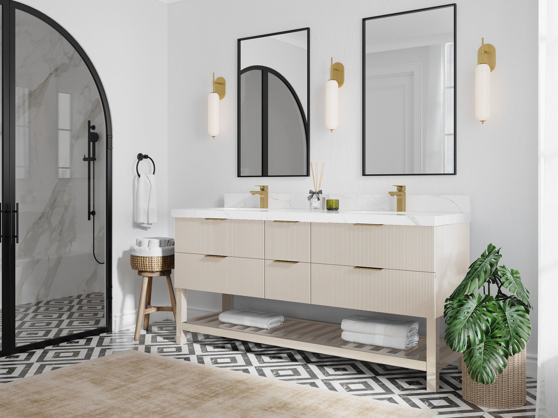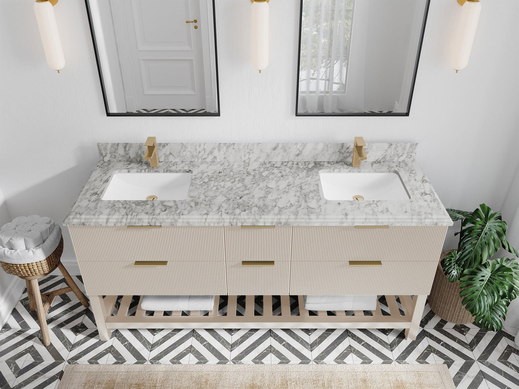 Vanity Countertops options: For Calacatta Laza Quartz, Empira White Quartz, Pure White Quartz we have 2 options Straight-Mitered Edge & Double Cove Edge, For Calacatta Black Quartz, Calacatta Gold Quartz, Calacatta Nuvo Quartz, Carrara Marble, Carrara Quartz, Pearl Light Gray Quartz, Piatra Gray Quartz, Venatino Quartz, and Light Concrete Gray Quartz we only have Straight - Mitered Edge option.