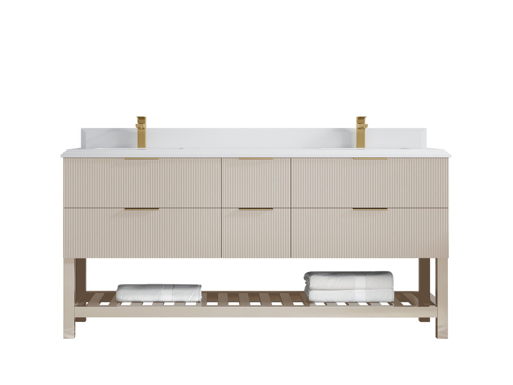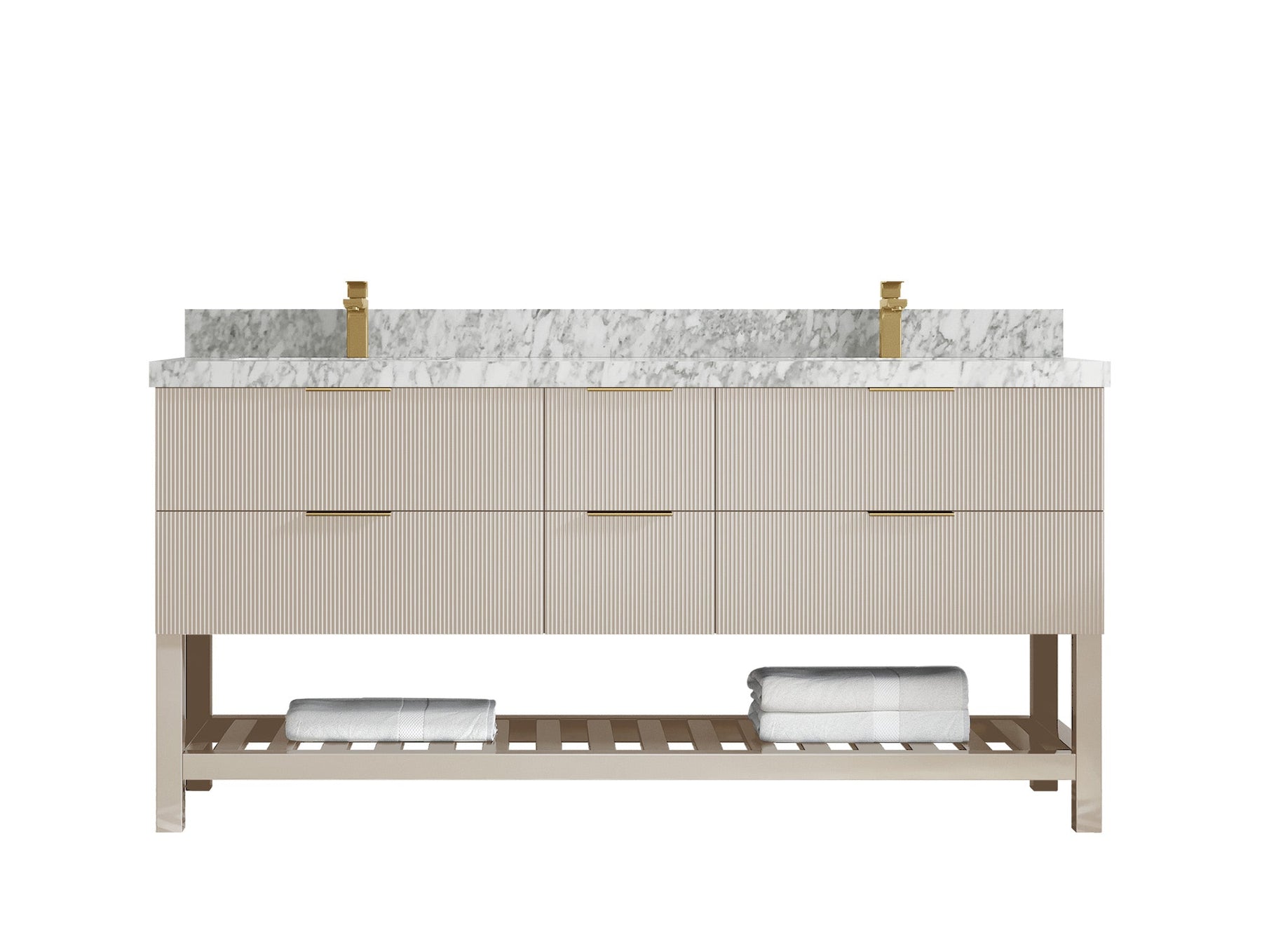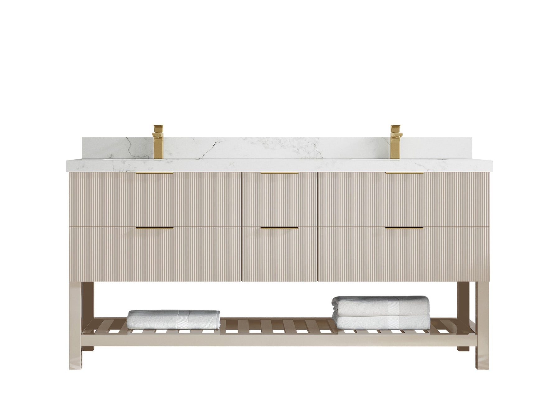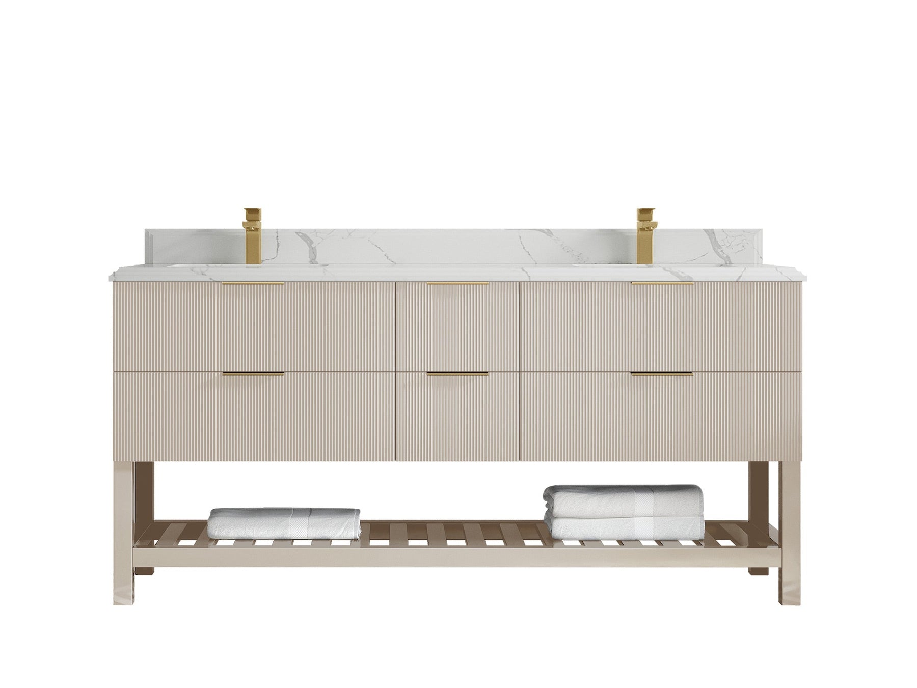 Vanity Countertops options: For Calacatta Laza Quartz, Empira White Quartz, Pure White Quartz we have 2 options Straight-Mitered Edge & Double Cove Edge, For Calacatta Black Quartz, Calacatta Gold Quartz, Calacatta Nuvo Quartz, Carrara Marble, Carrara Quartz, Pearl Light Gray Quartz, Piatra Gray Quartz, Venatino Quartz, and Light Concrete Gray Quartz we only have Straight - Mitered Edge option.