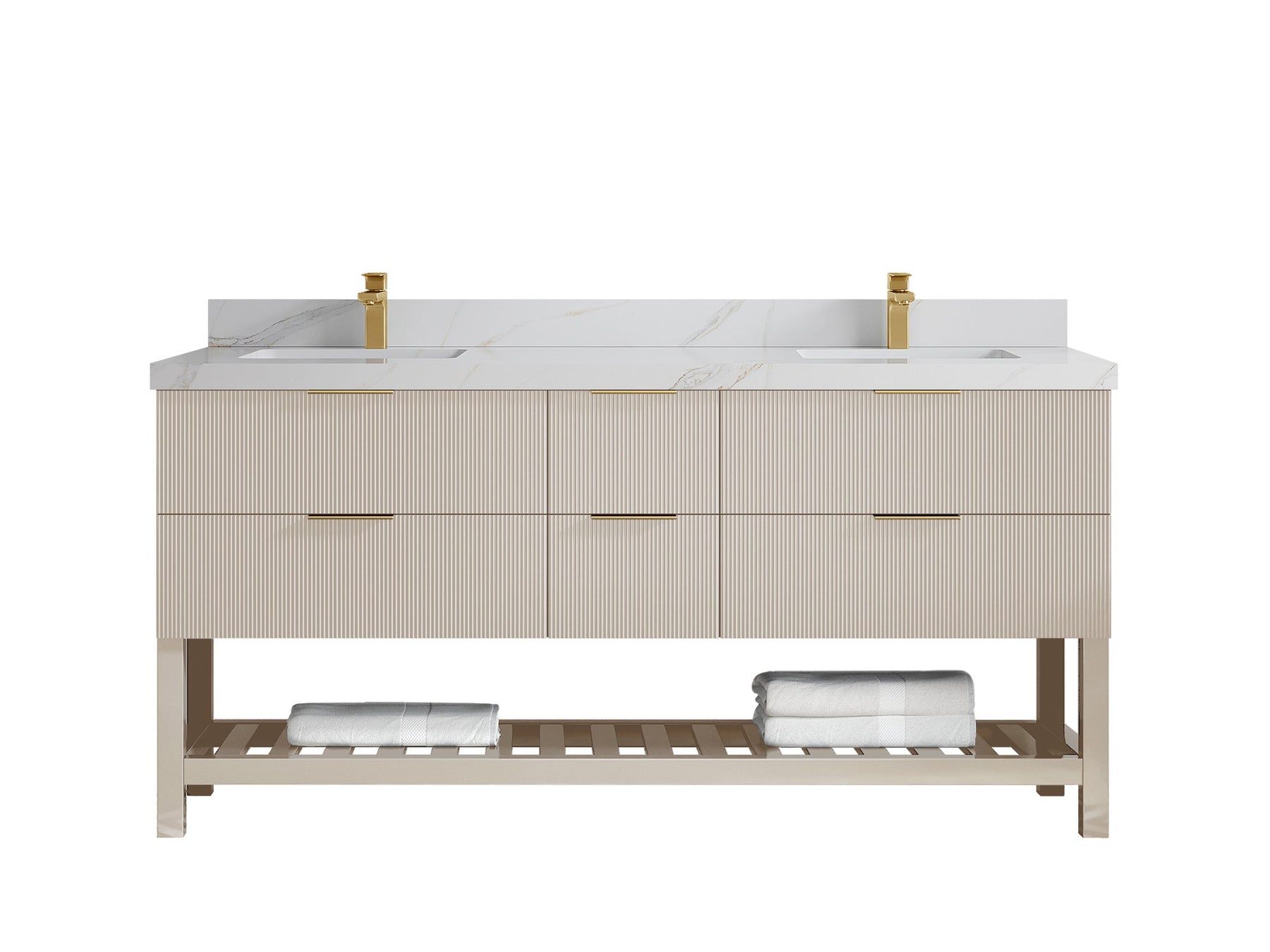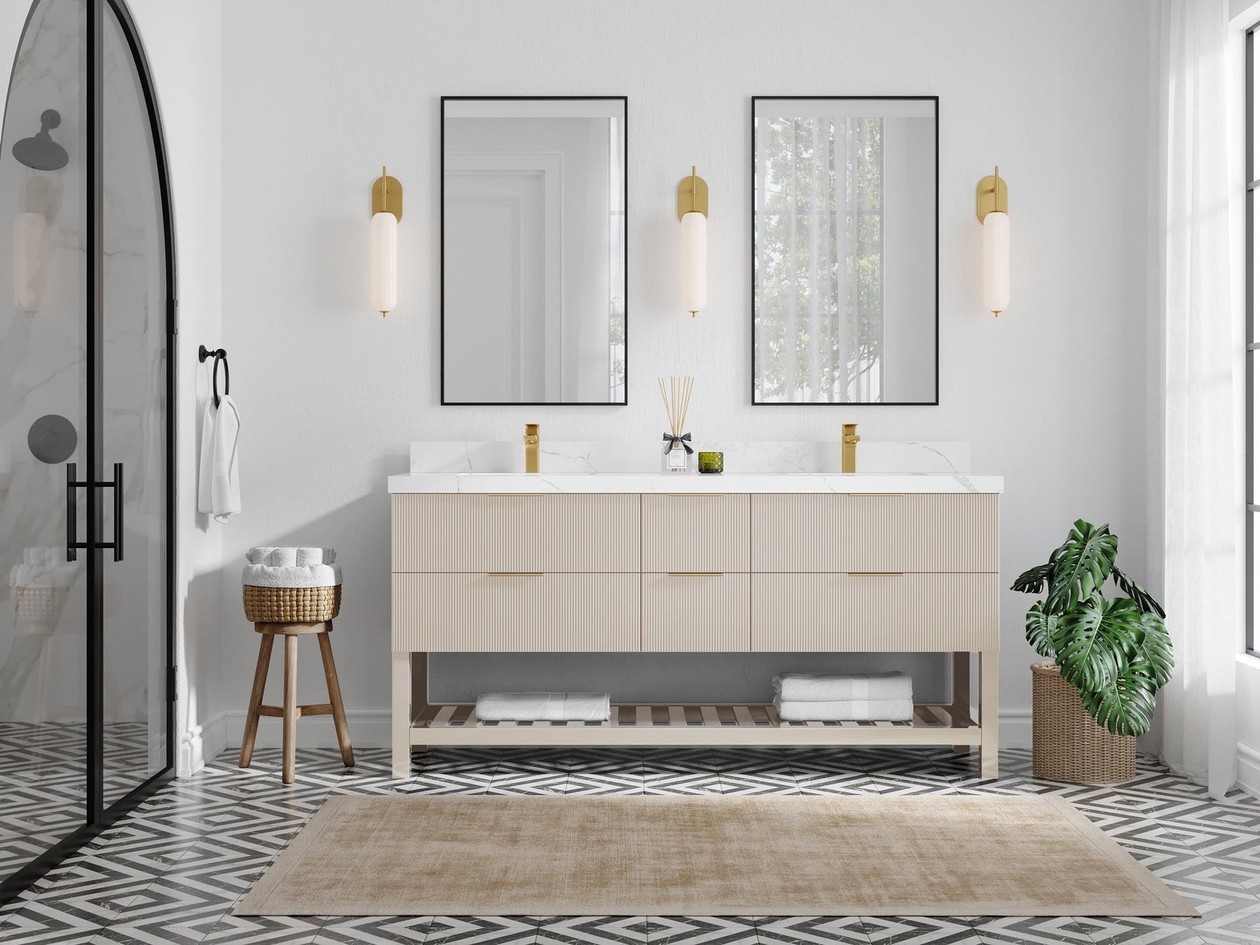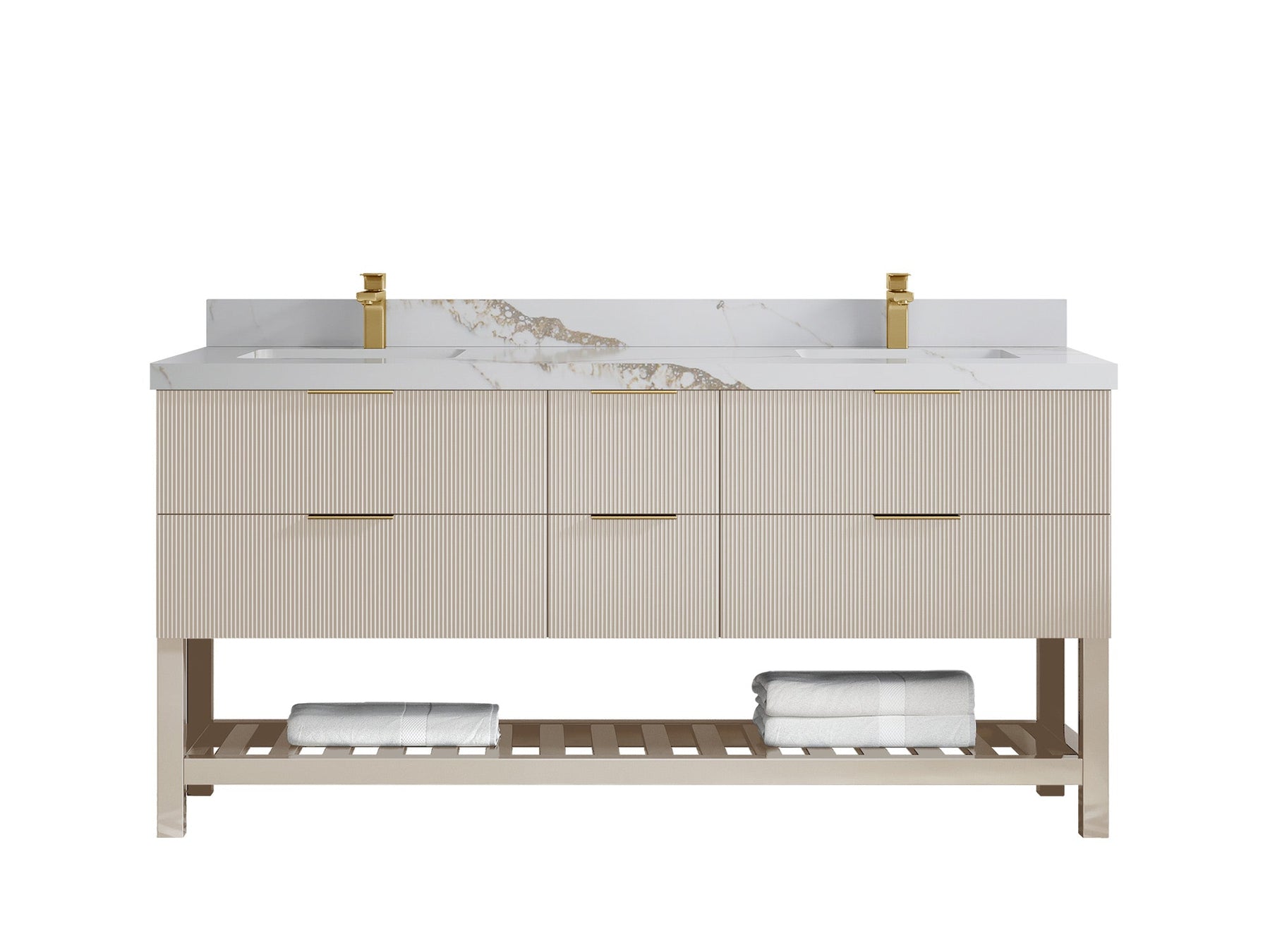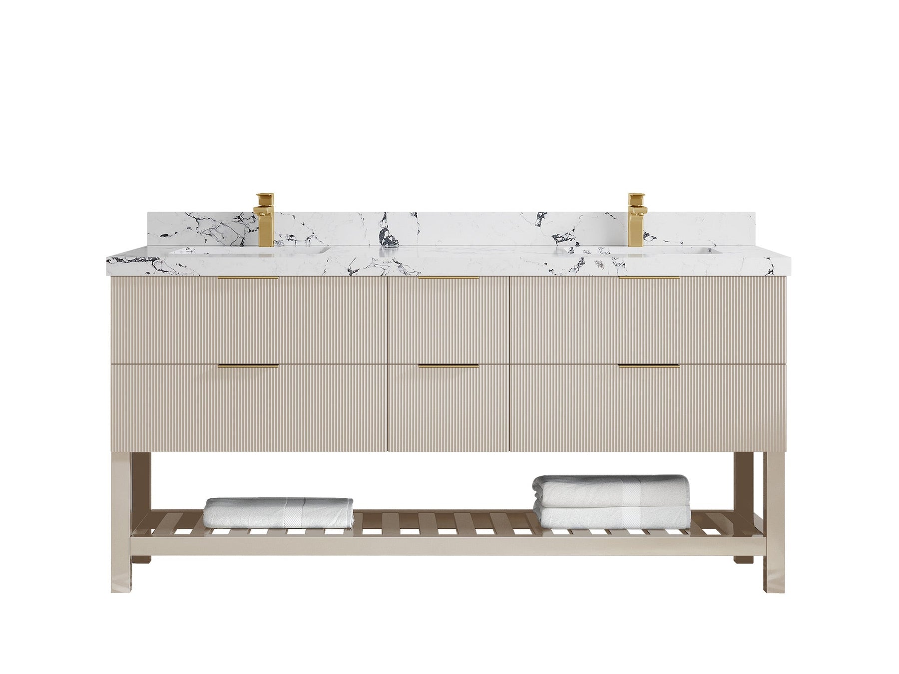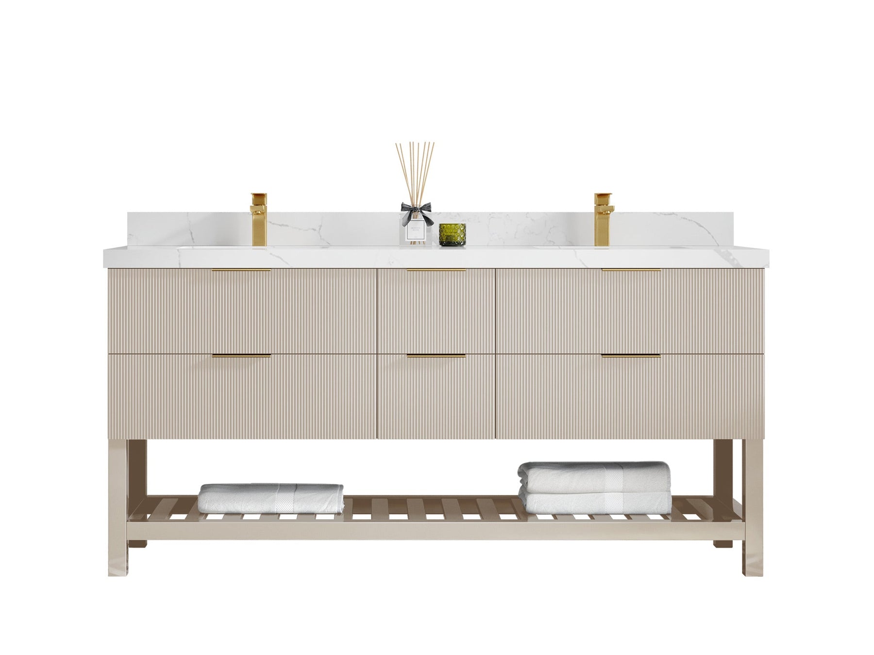 Vanity Countertops options: For Calacatta Laza Quartz, Empira White Quartz, Pure White Quartz we have 2 options Straight-Mitered Edge & Double Cove Edge, For Calacatta Black Quartz, Calacatta Gold Quartz, Calacatta Nuvo Quartz, Carrara Marble, Carrara Quartz, Pearl Light Gray Quartz, Piatra Gray Quartz, Venatino Quartz, and Light Concrete Gray Quartz we only have Straight - Mitered Edge option.