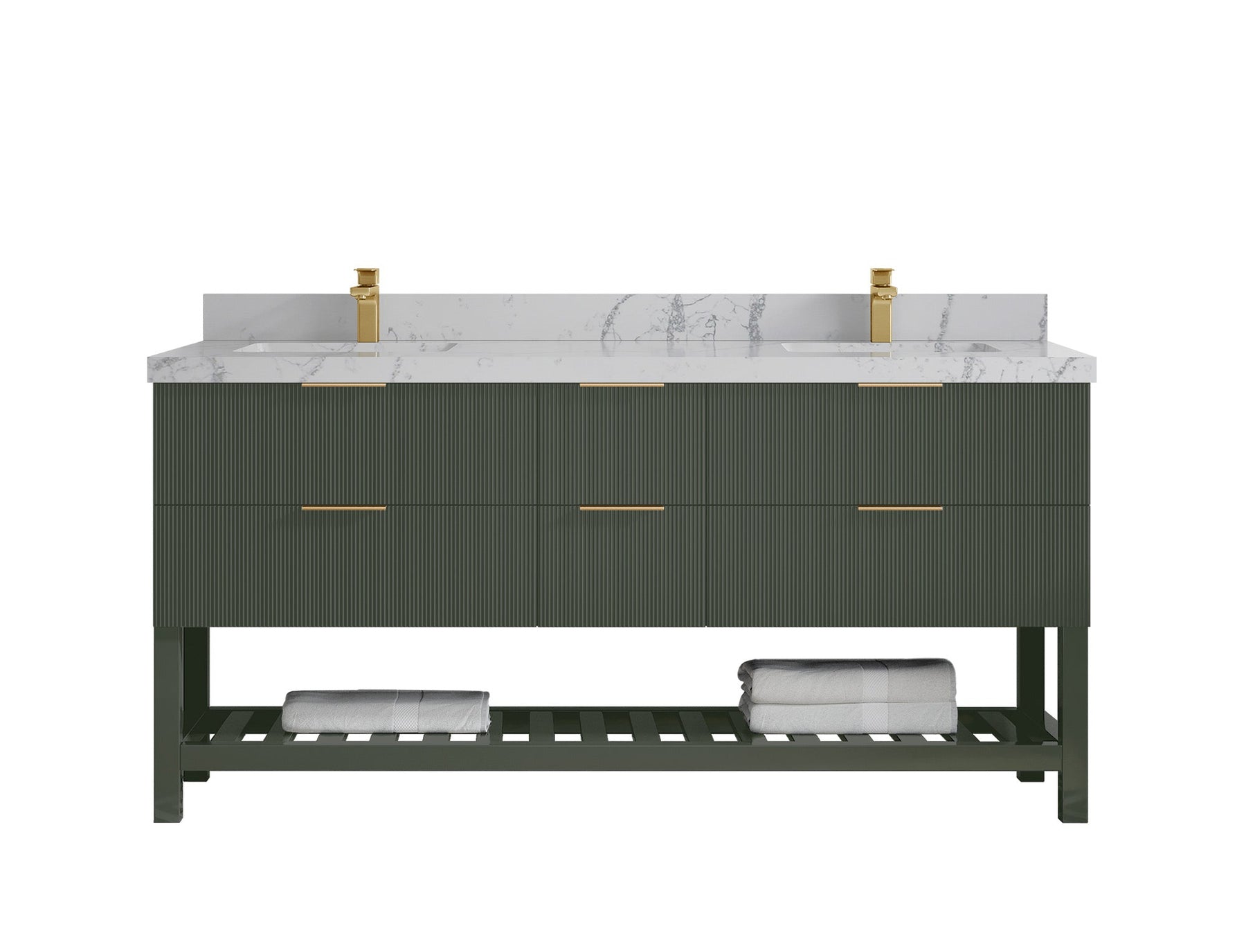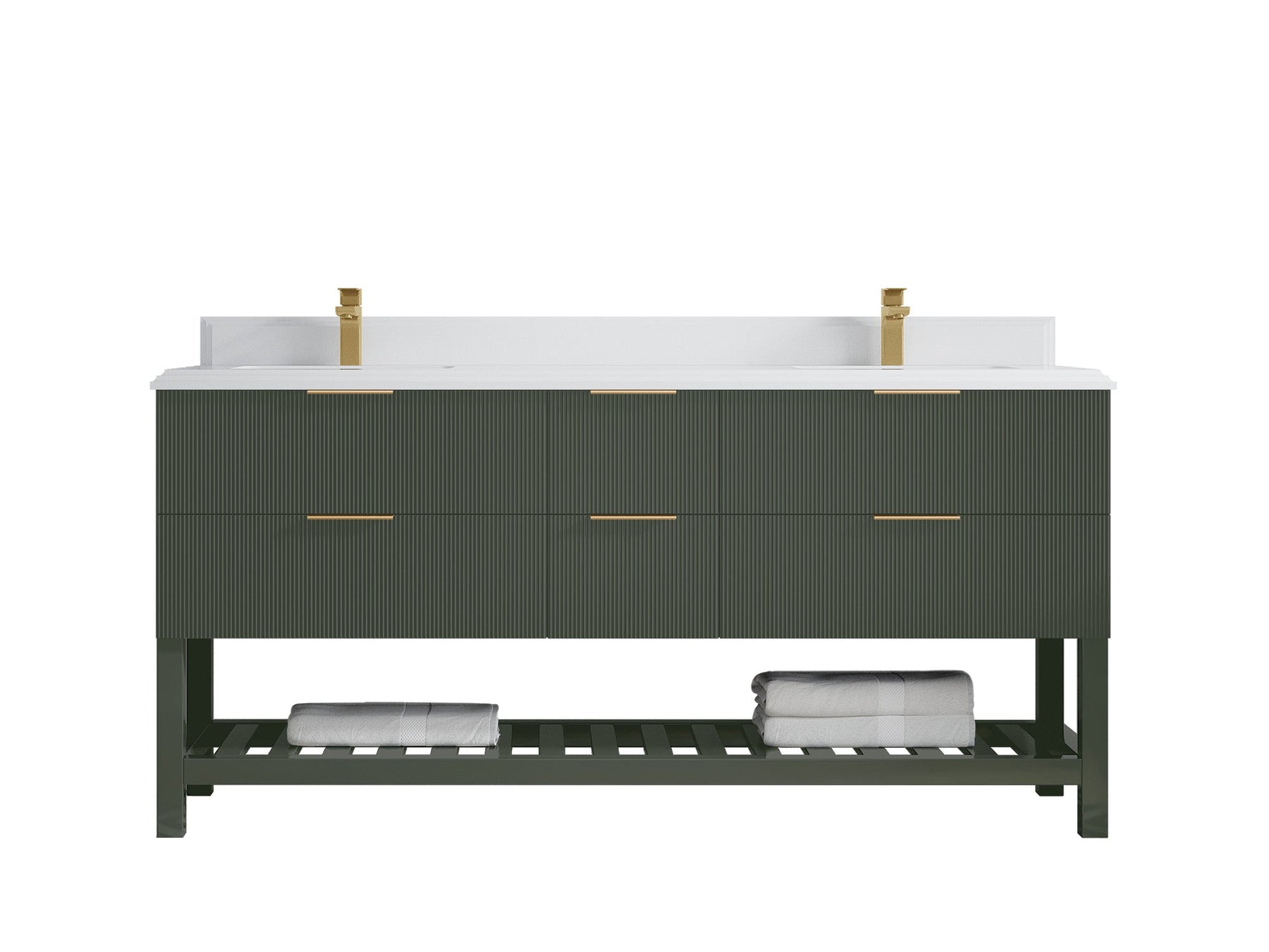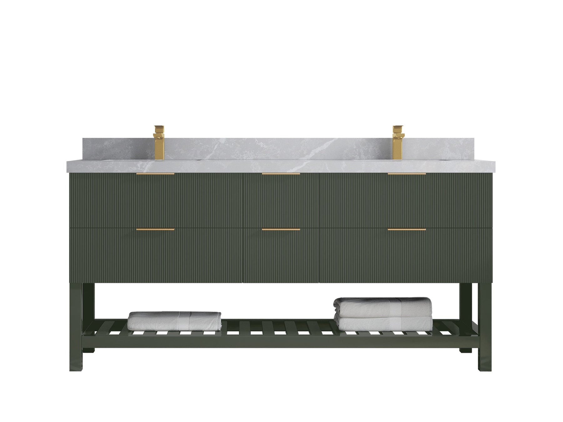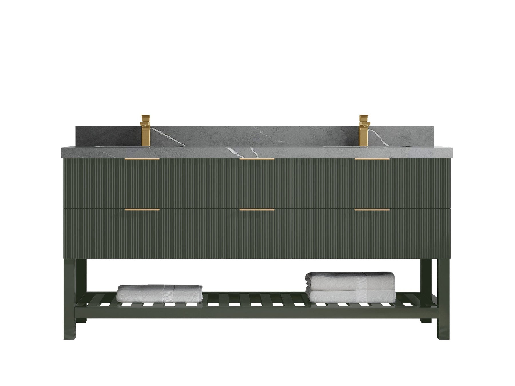 Catalina 72 in W x 22 in D Free Standing Reeded Double Sink Bathroom Vanity | Pewter Green