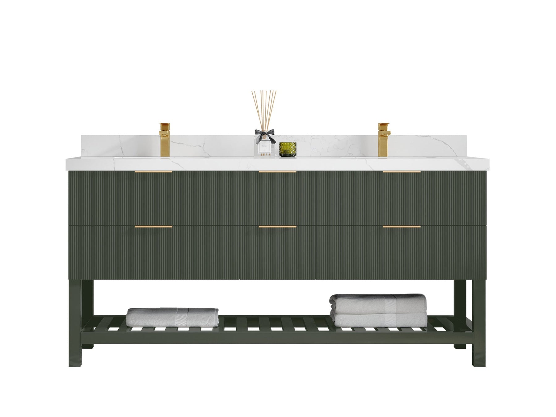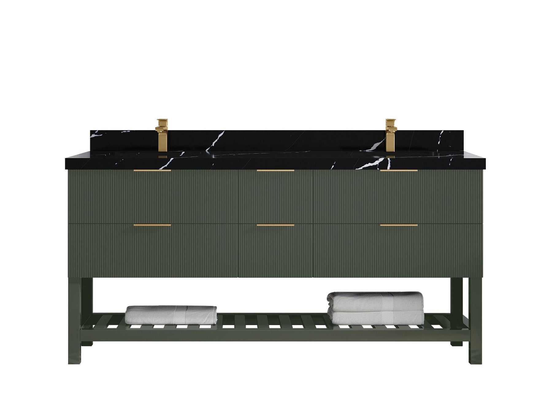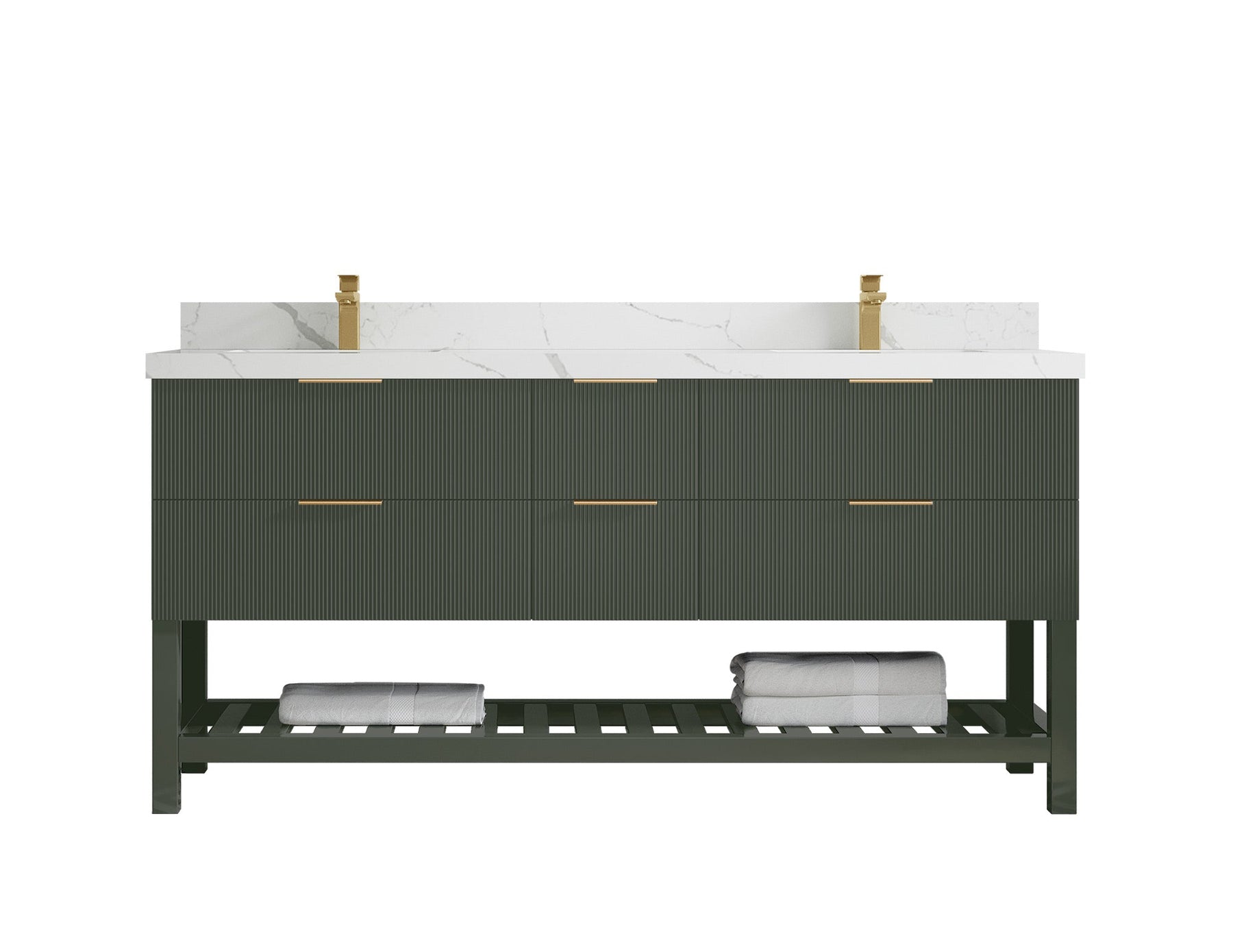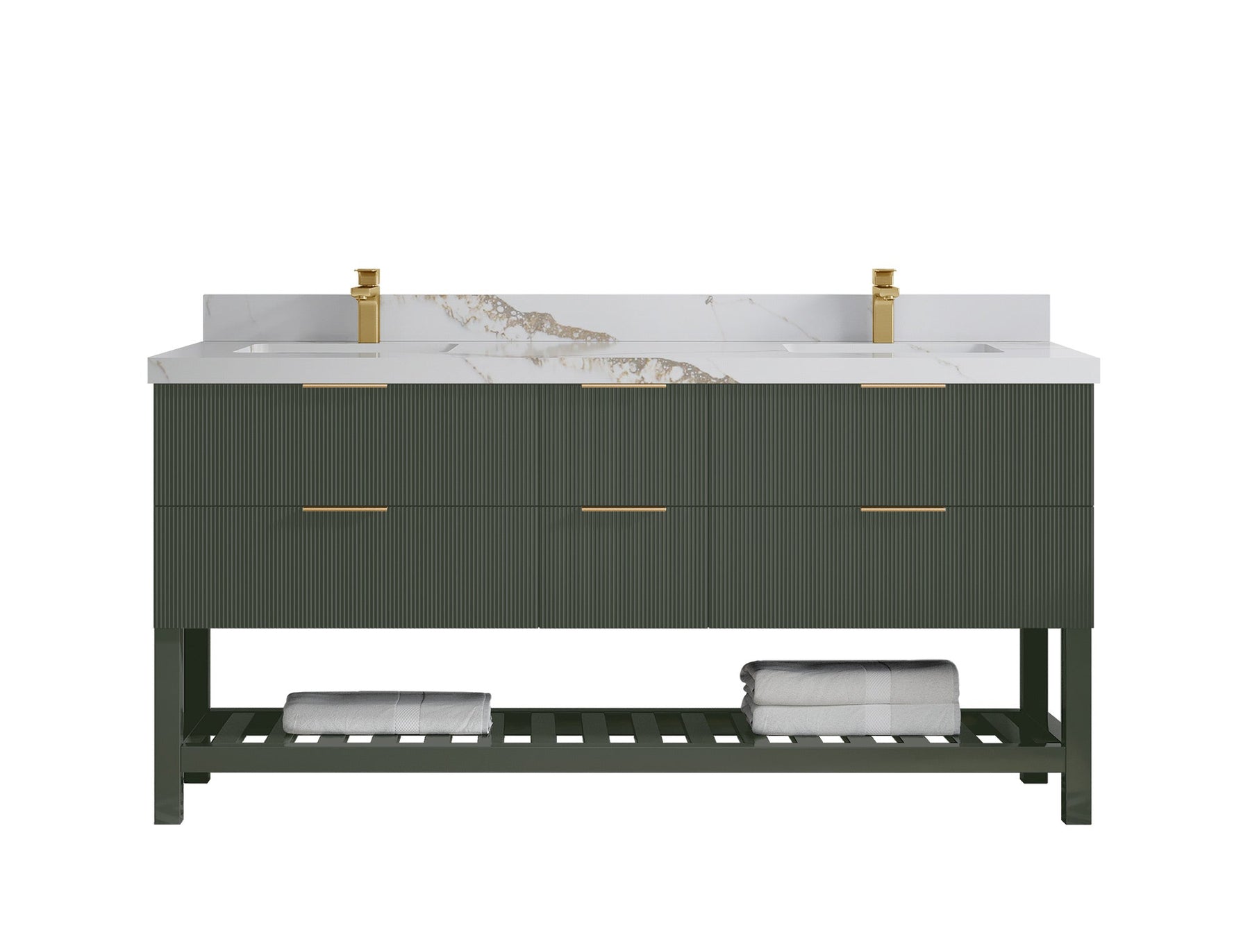 Catalina 72 in W x 22 in D Free Standing Reeded Double Sink Bathroom Vanity | Pewter Green