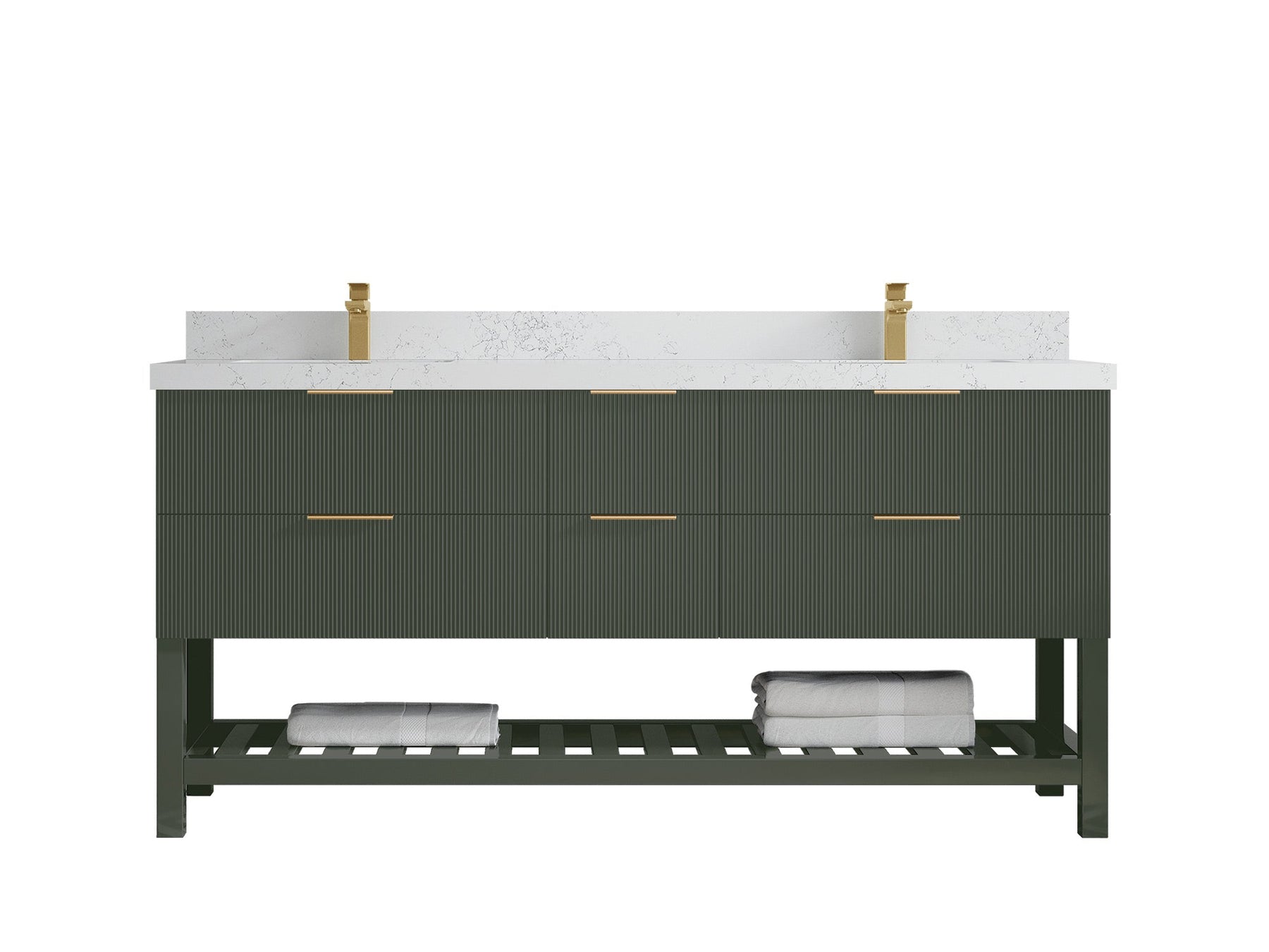 Catalina 72 in. W x 22 in. D Double Sink Bathroom Vanity in Pewter Green with 2 in Calacatta Gold Quartz Countertop - Top View