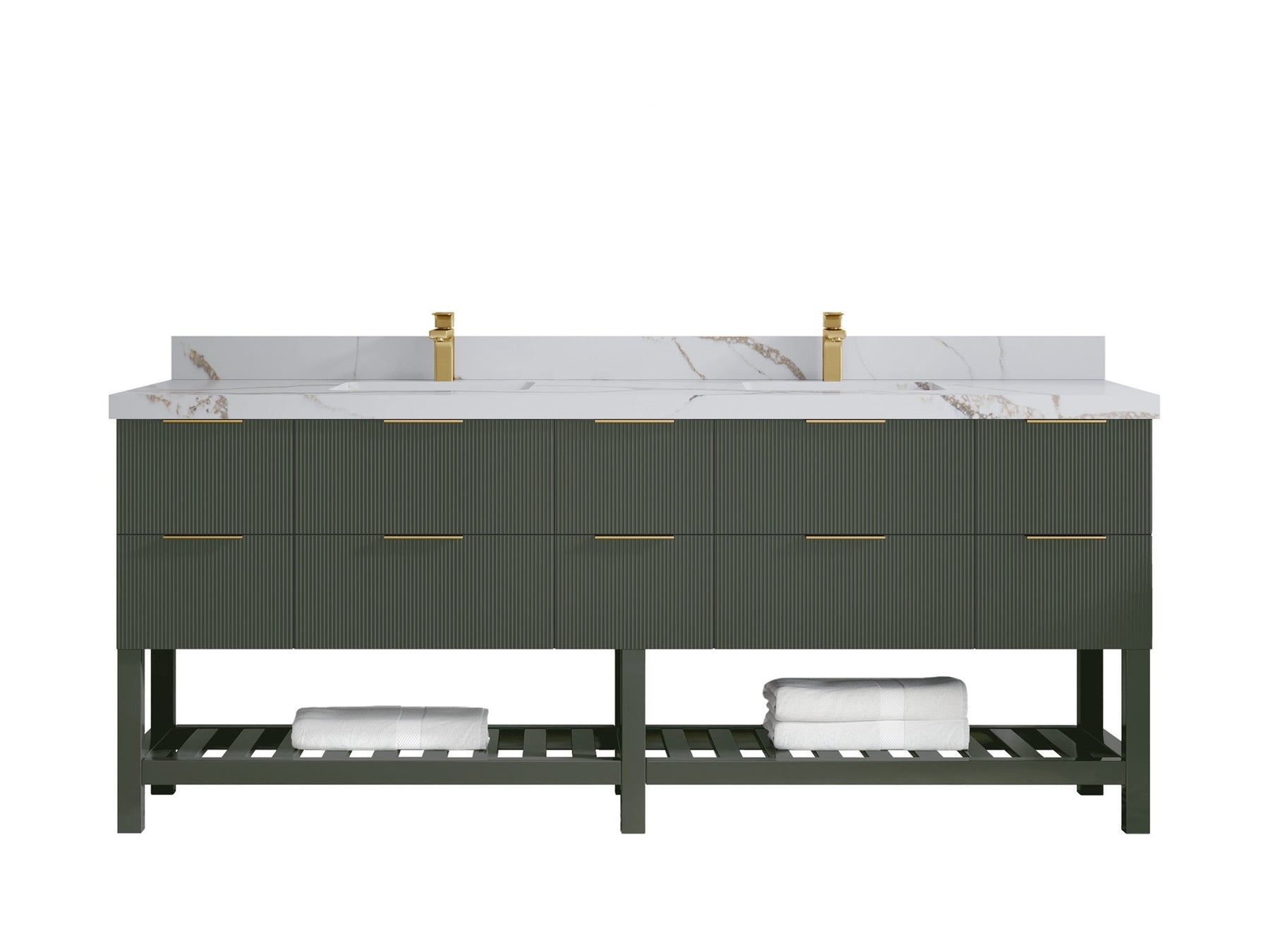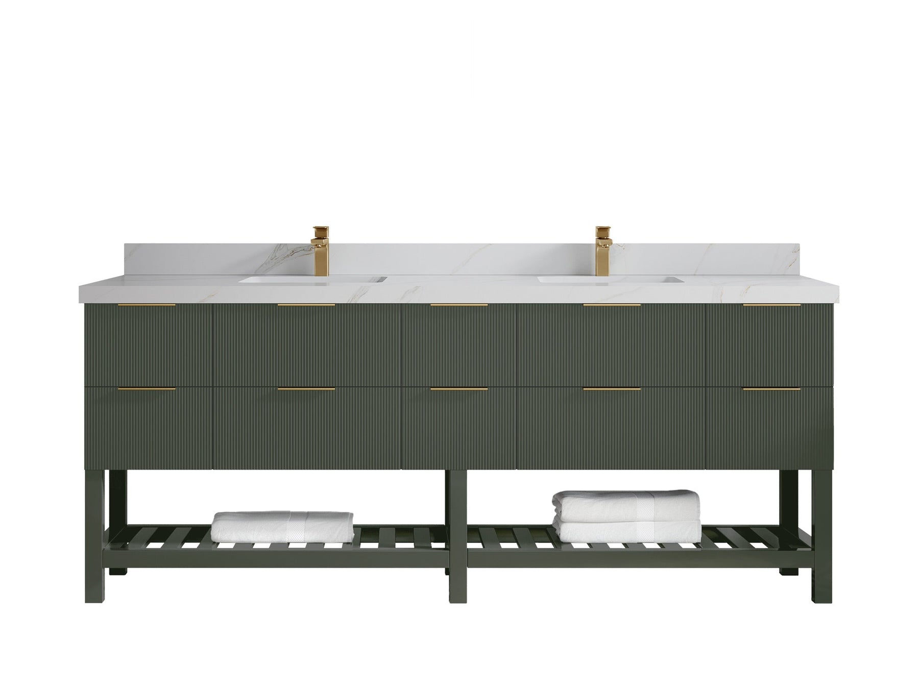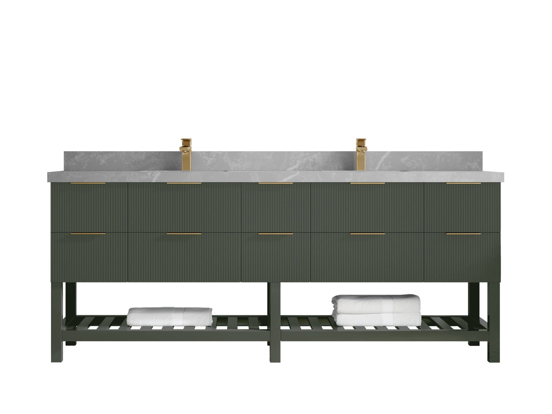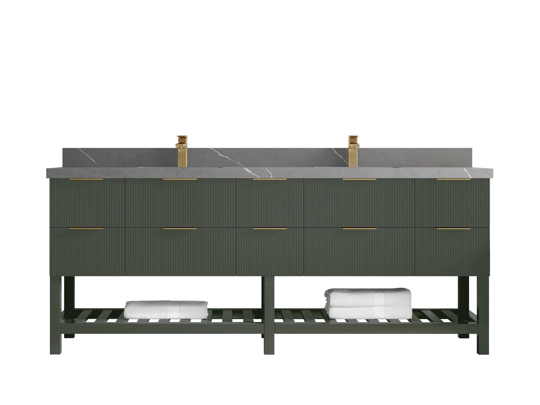 Catalina 84 in W x 22 in D Free Standing Reeded Double Sink Bathroom Vanity | Pewter Green