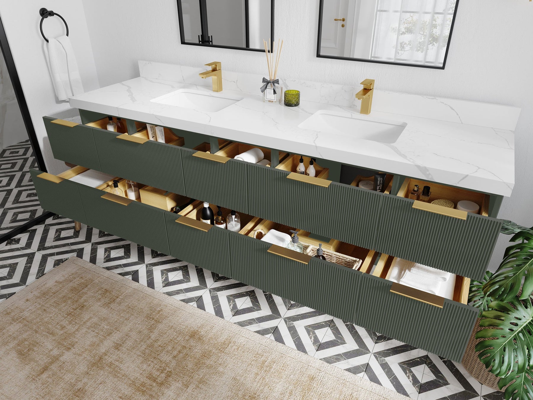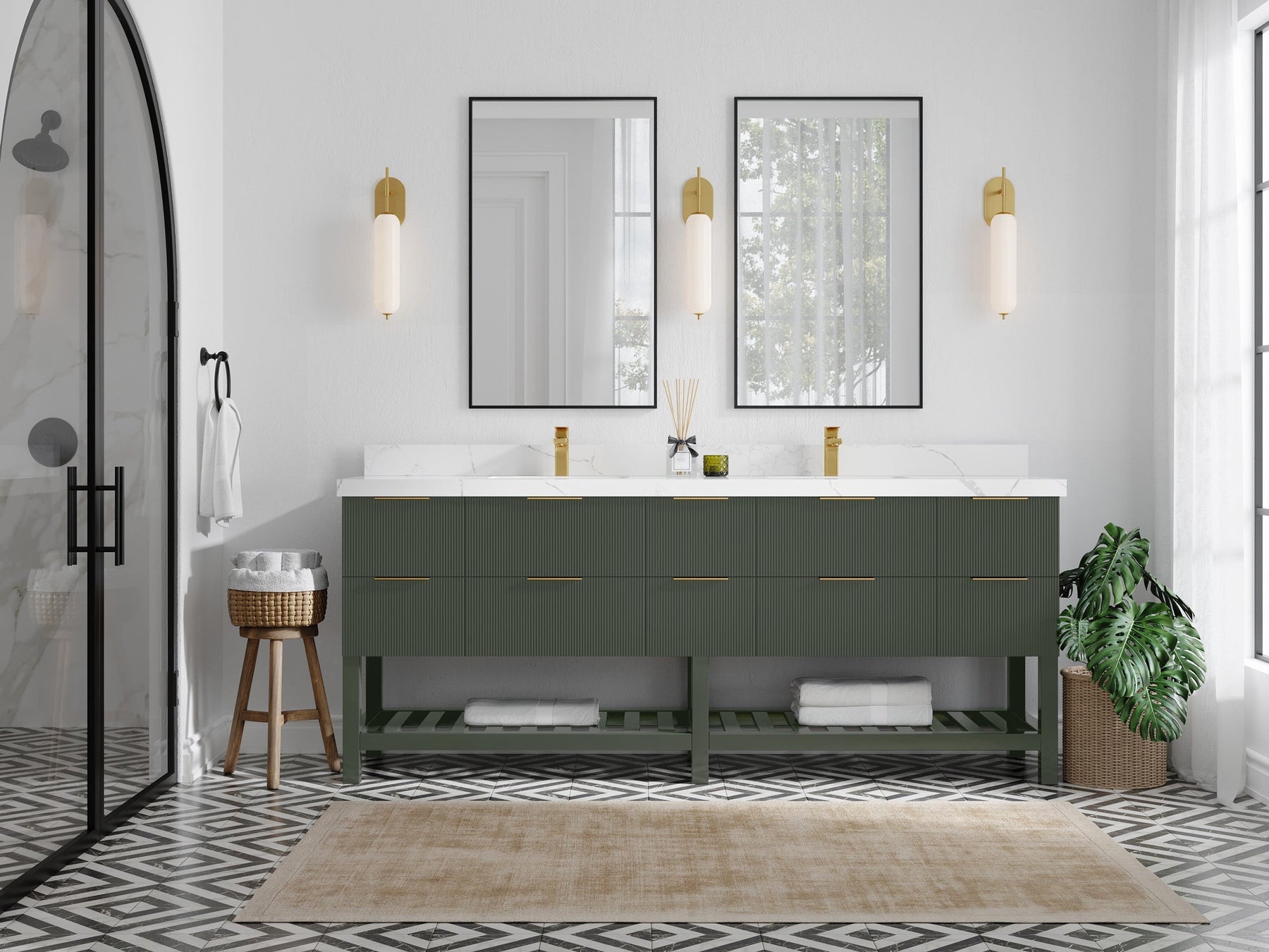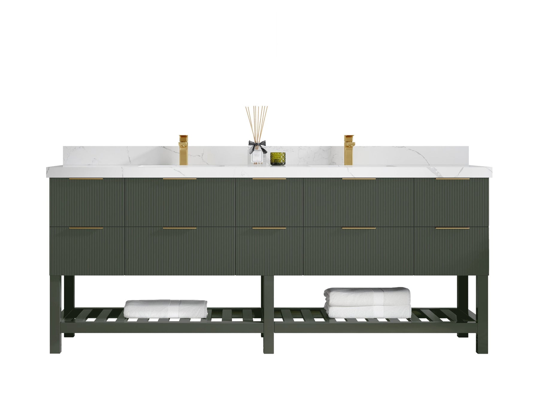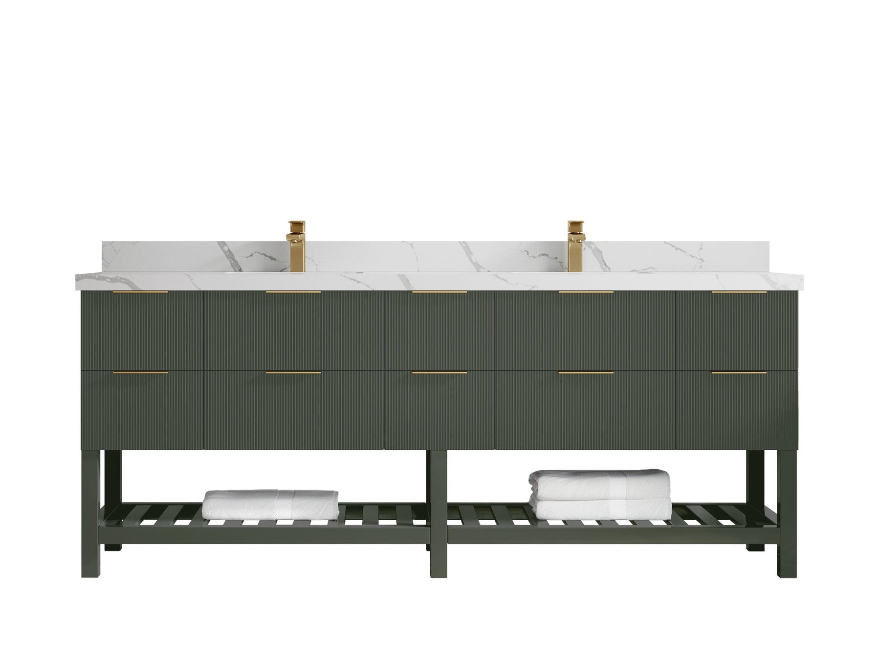 Catalina 84 in W x 22 in D Free Standing Reeded Double Sink Bathroom Vanity | Pewter Green