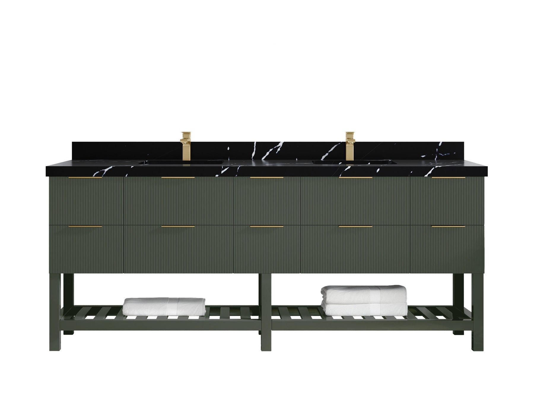 Catalina 84 in. W x 22 in. D Double Sink Bathroom Vanity in Pewter Green with 2 in Calacatta Black Quartz Countertop - Top View