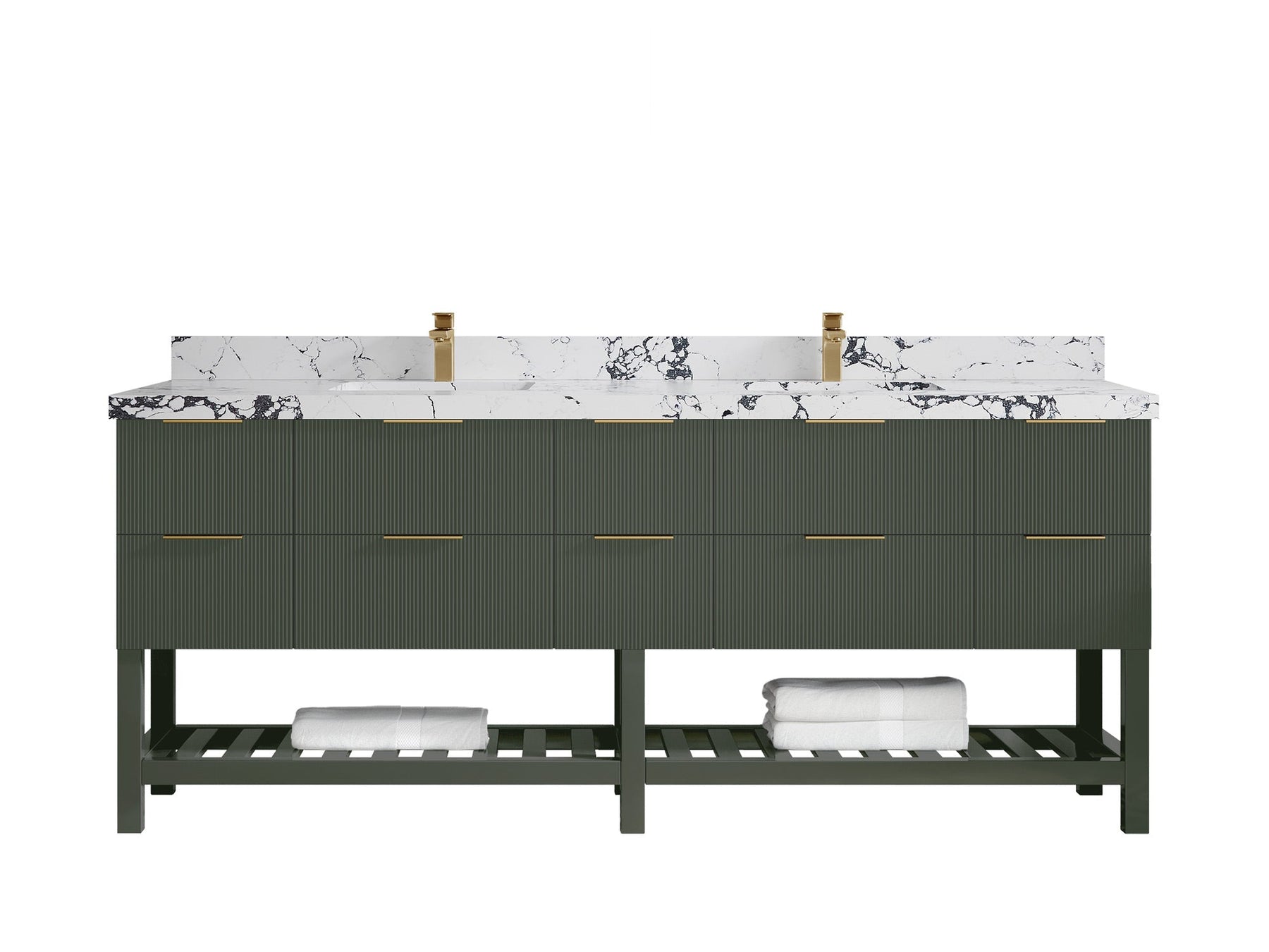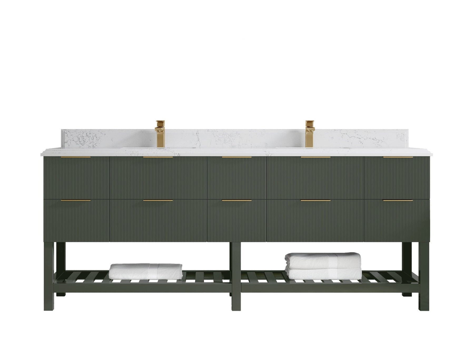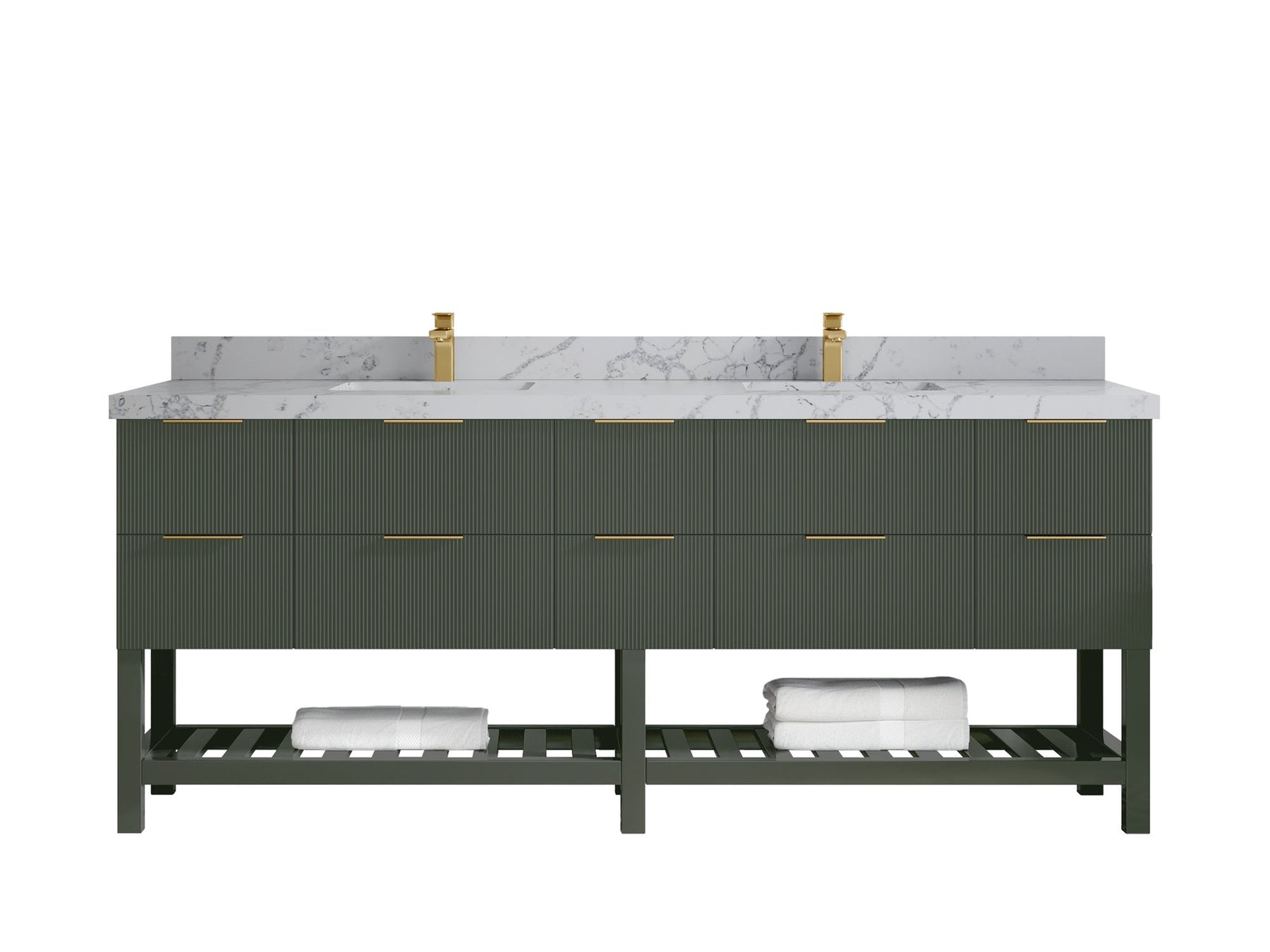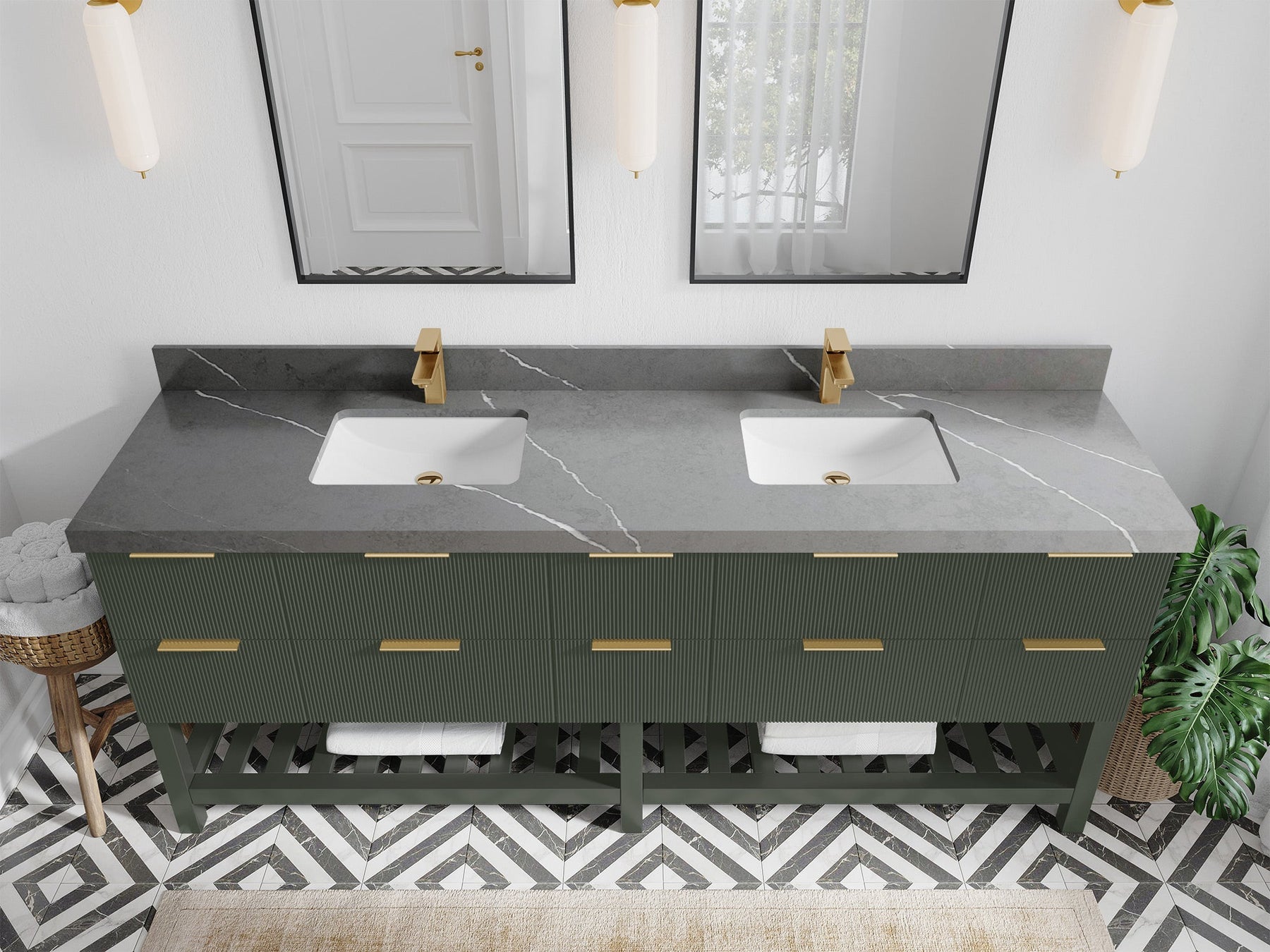 Catalina 84 in. W x 22 in. D Double Sink Bathroom Vanity in Pewter Green with 1.5 in Double Cove Edge Empira Quartz Countertop - Top View