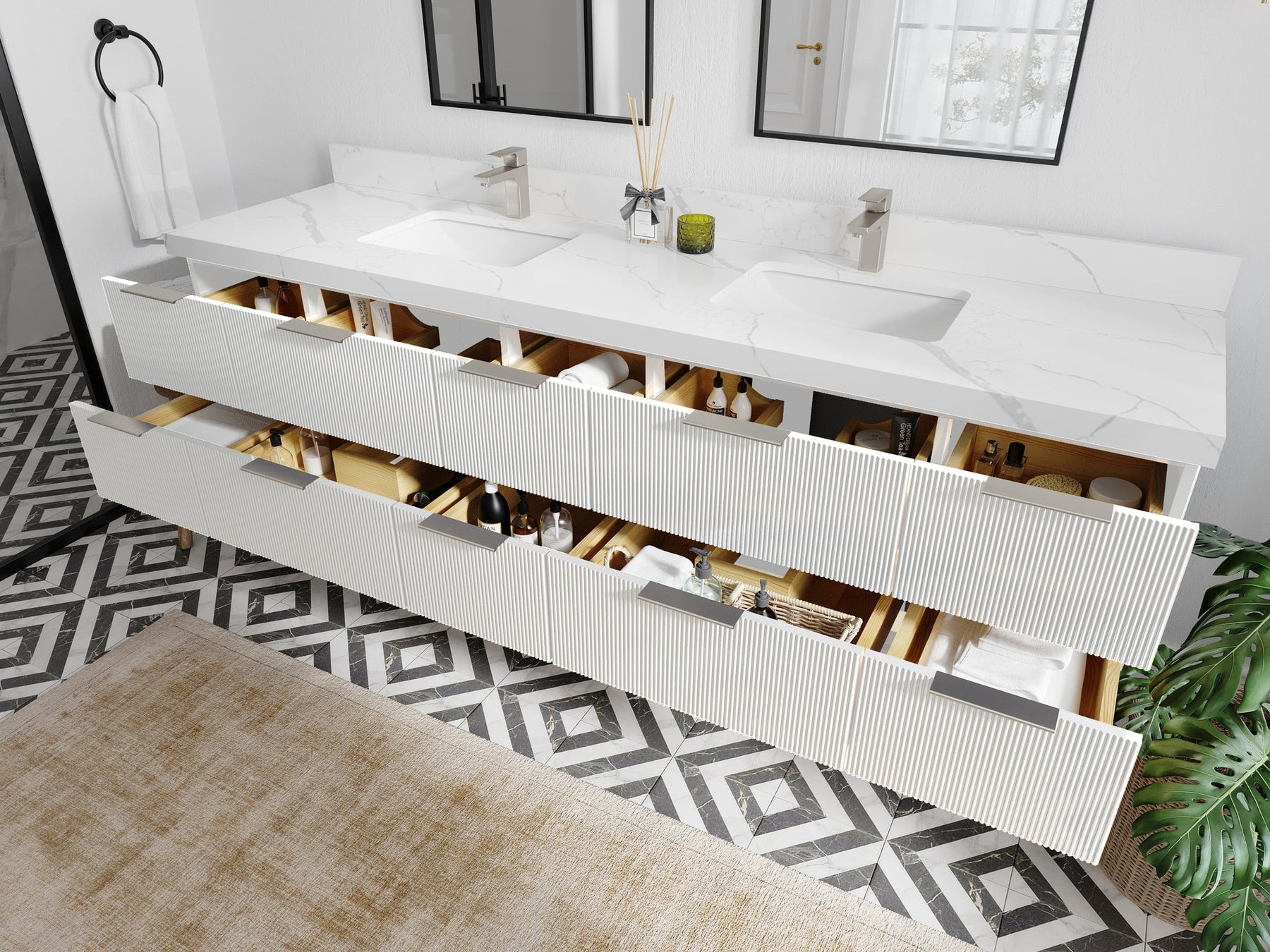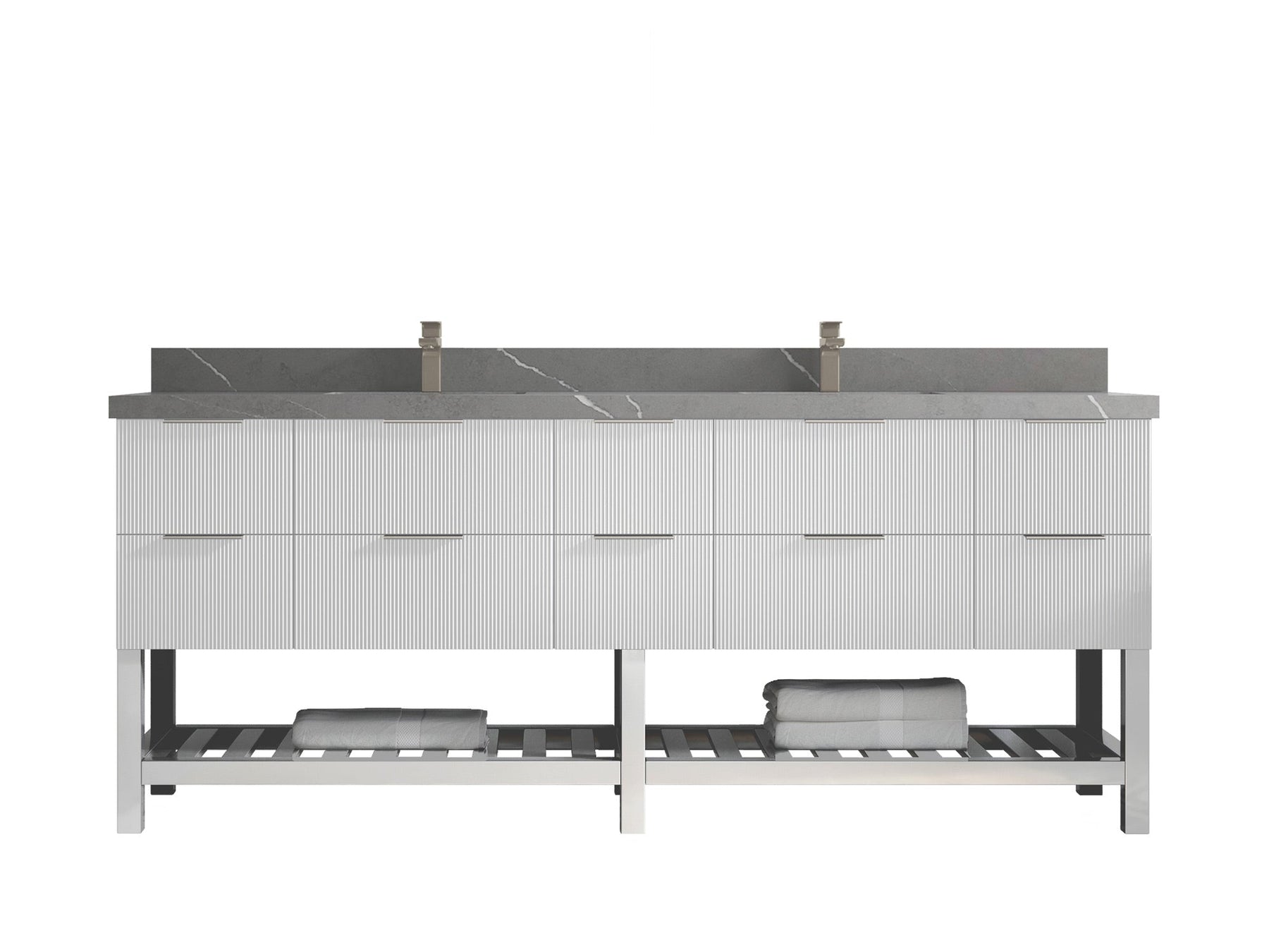 Catalina 84 in W x 22 in D Free Standing Reeded Double Sink Bathroom Vanity - Willow Bath and Vanity