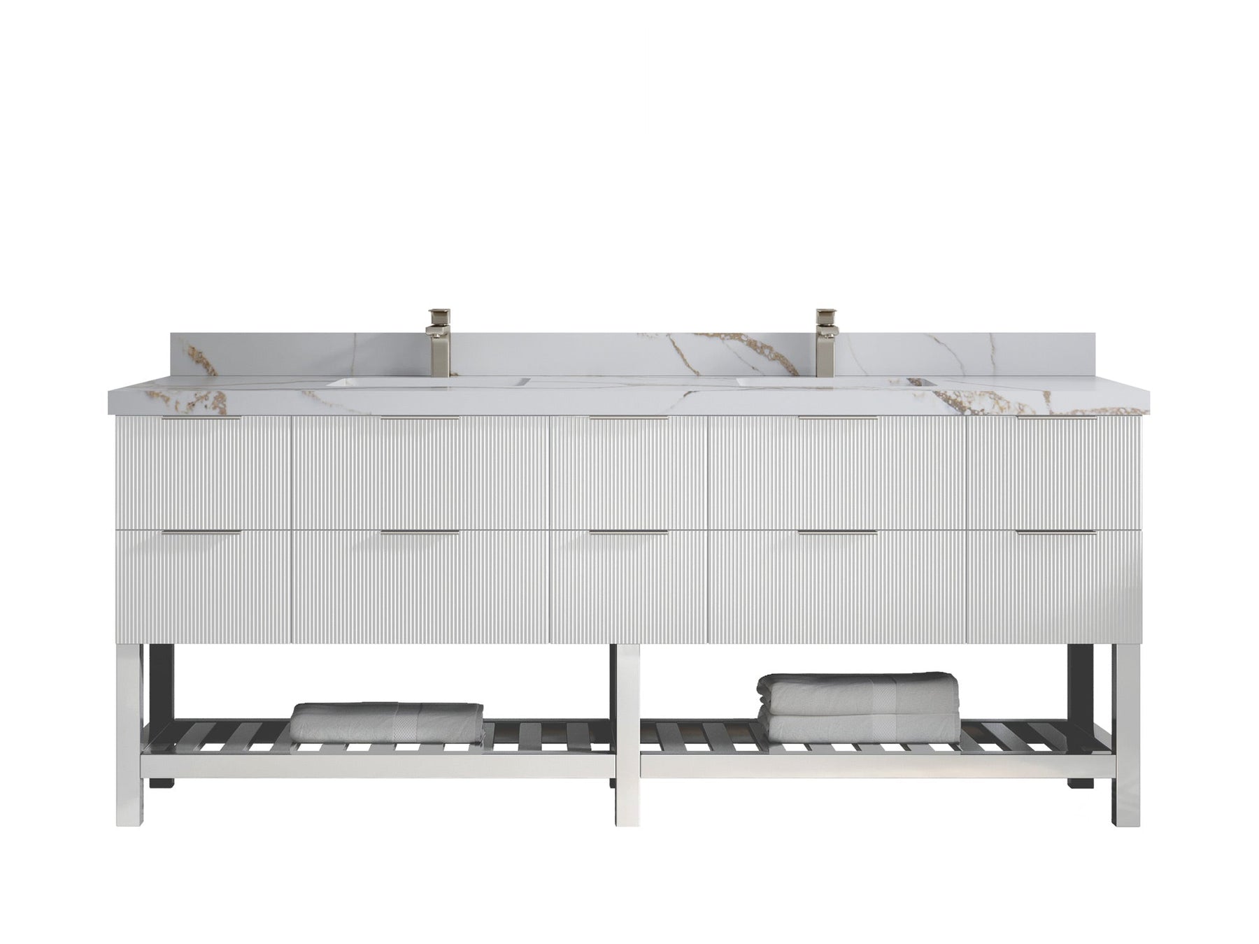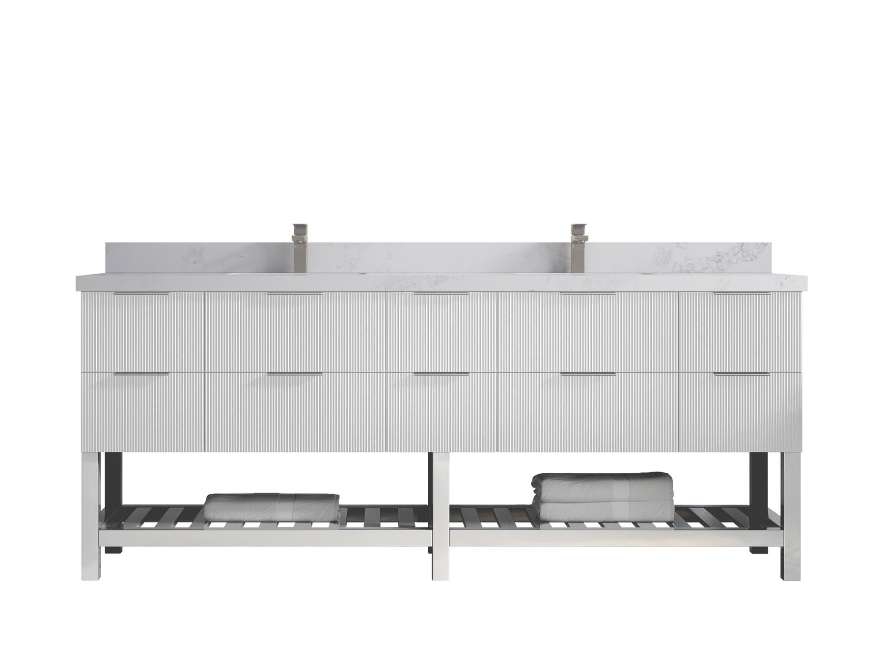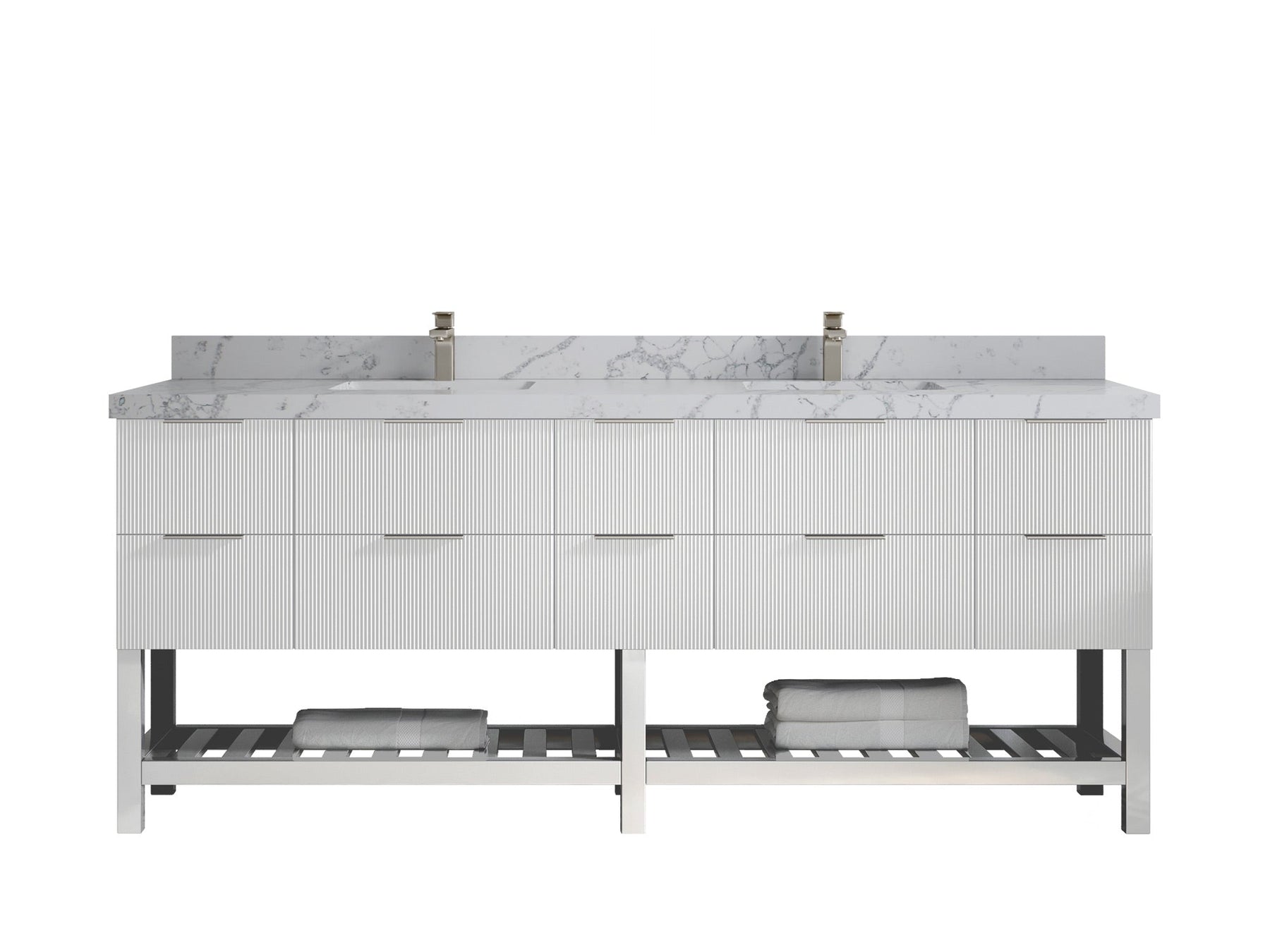Catalina 84 in W x 22 in D Free Standing Reeded Double Sink Bathroom Vanity | White