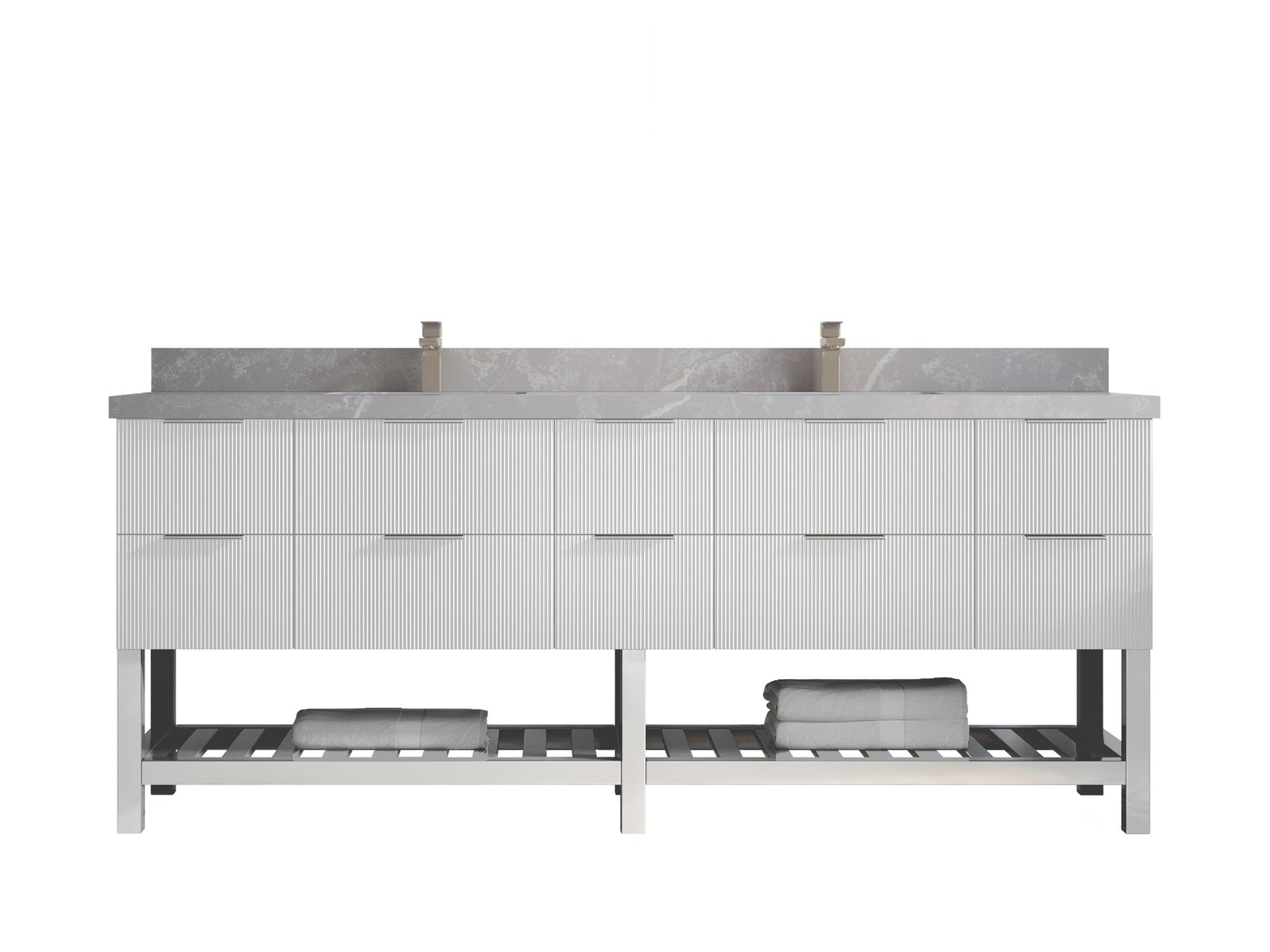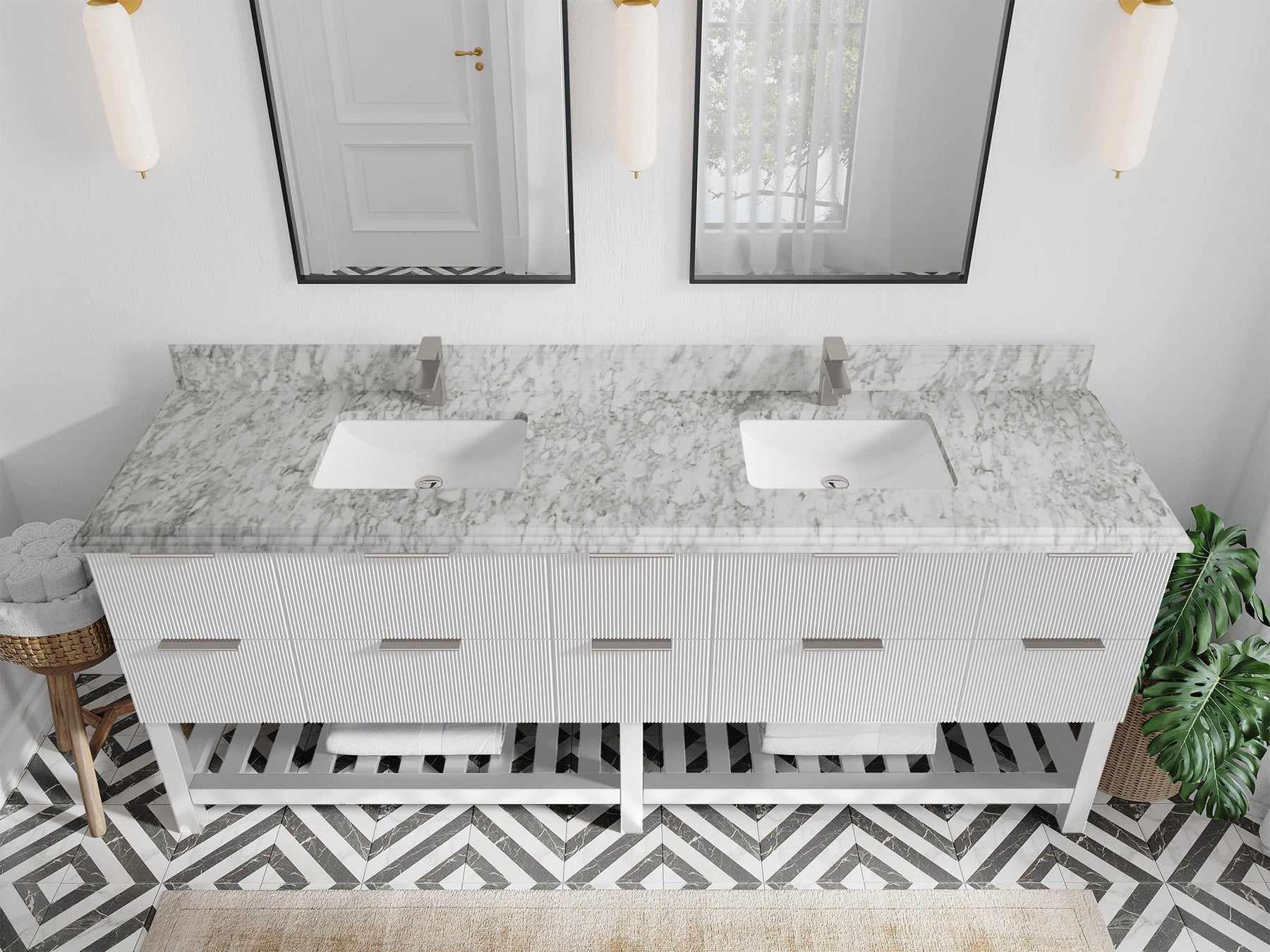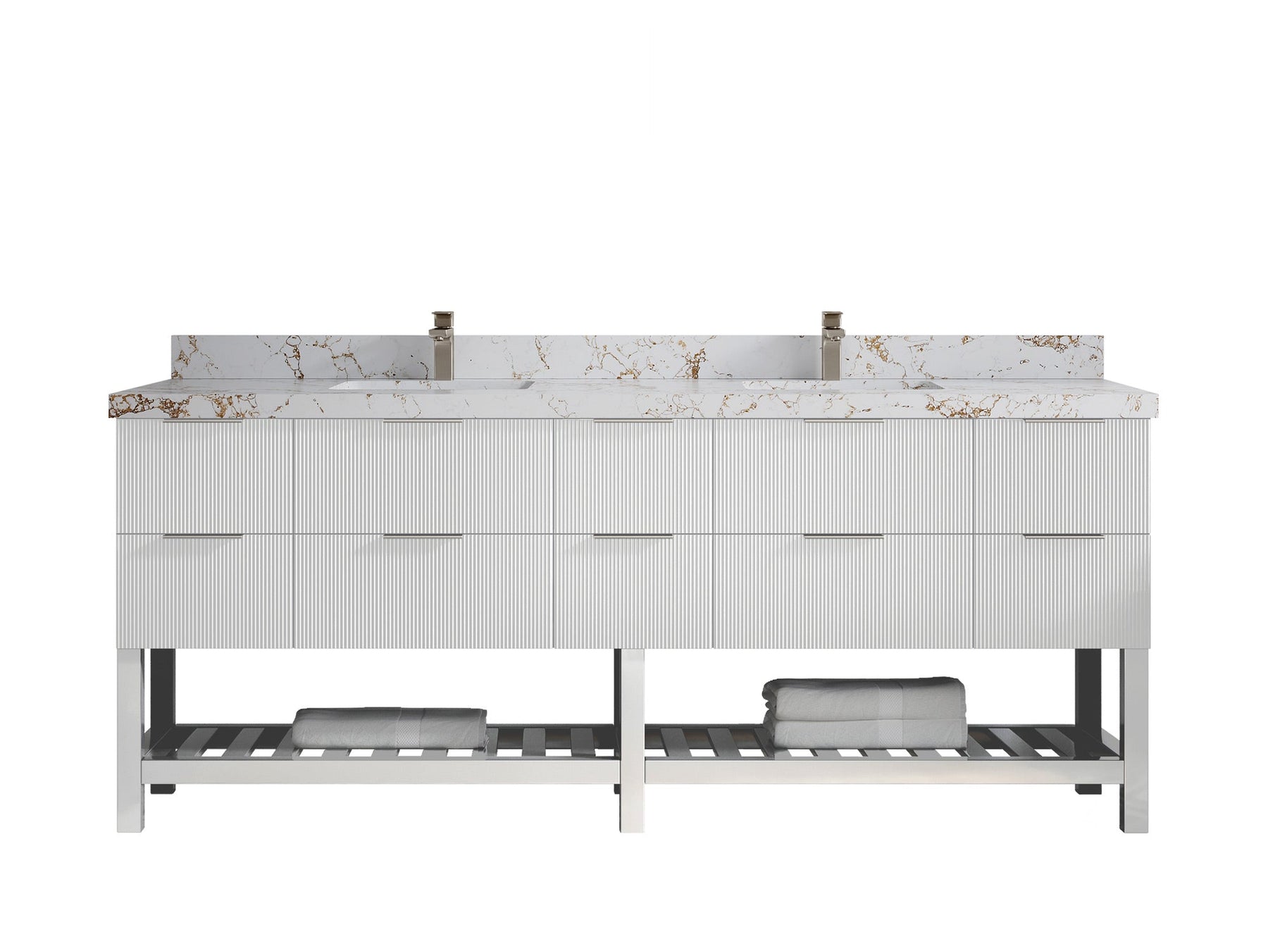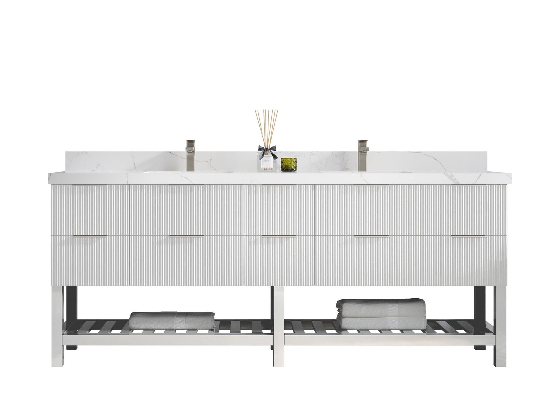 Catalina 84 in W x 22 in D Free Standing Reeded Double Sink Bathroom Vanity | White